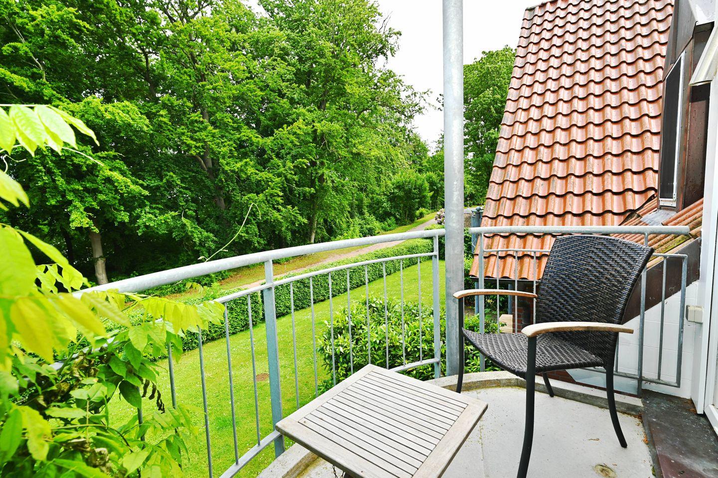 Ein besonderes Highlight der Ferienwohnung Meerzeit ist der Balkon, der Ihnen einen herrlichen Blick in die umliegende Landschaft ermöglicht. Hier können Sie den Morgenkaffee oder abendliche Cocktails in der frischen Luft genießen. Zur weiteren Ausstattung gehören ein modernes Badezimmer mit Dusche und WC, das mit einem Spiegel und einem Kosmetikspiegel ergänzt wird, sowie eine Garderobe für Ihre persönlichen Gegenstände.