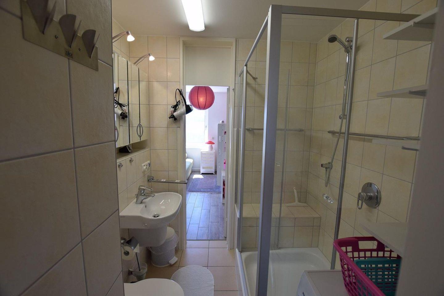 Die Wohnung verfügt über ein großzügiges Wohnzimmer mit angeschlossener offener Küche sowie Essecke für 6 Personen