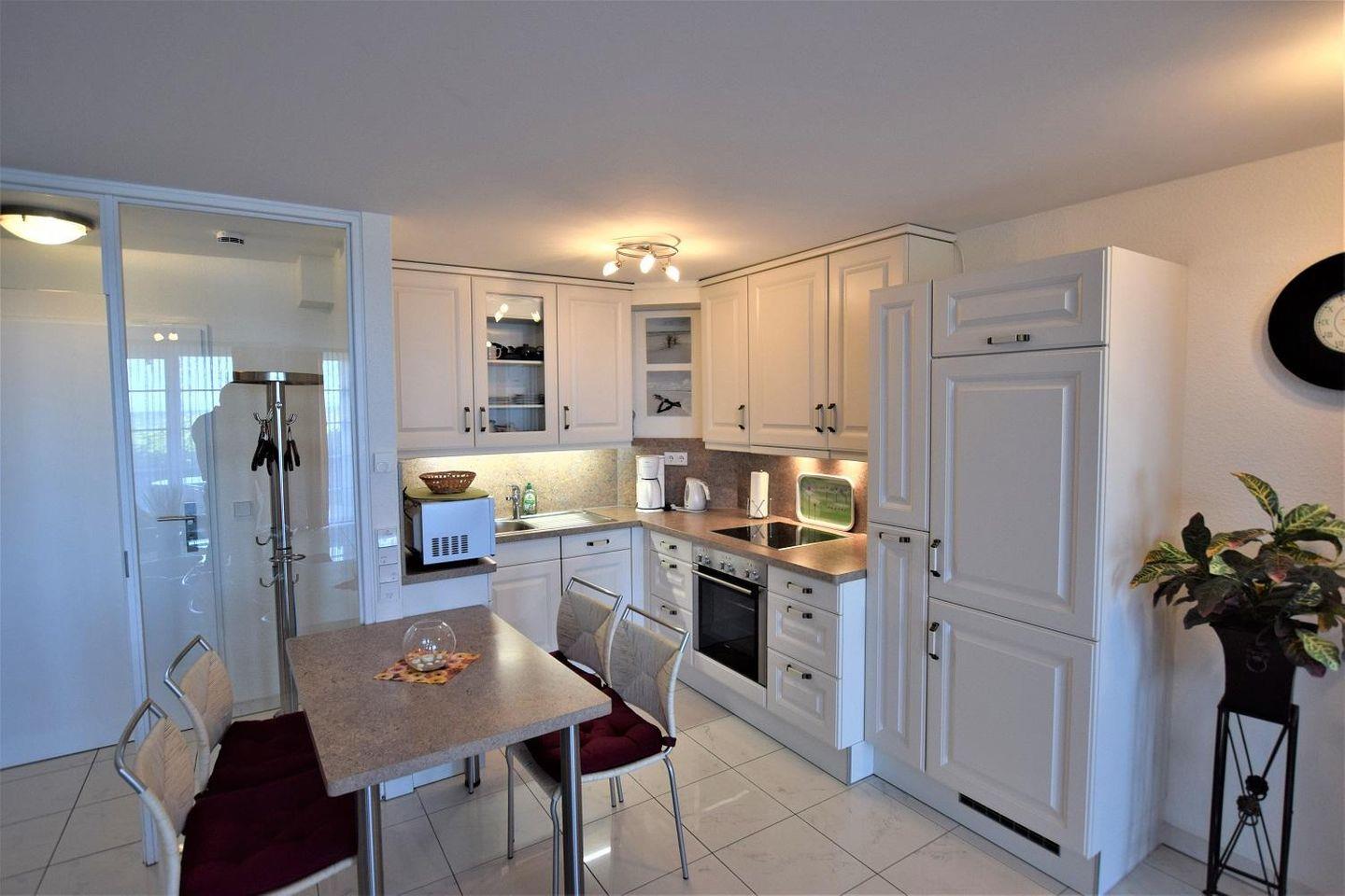 Kühlschrank, Mikrowelle usw... und im geräumigen Wohnzimmer finden Sie