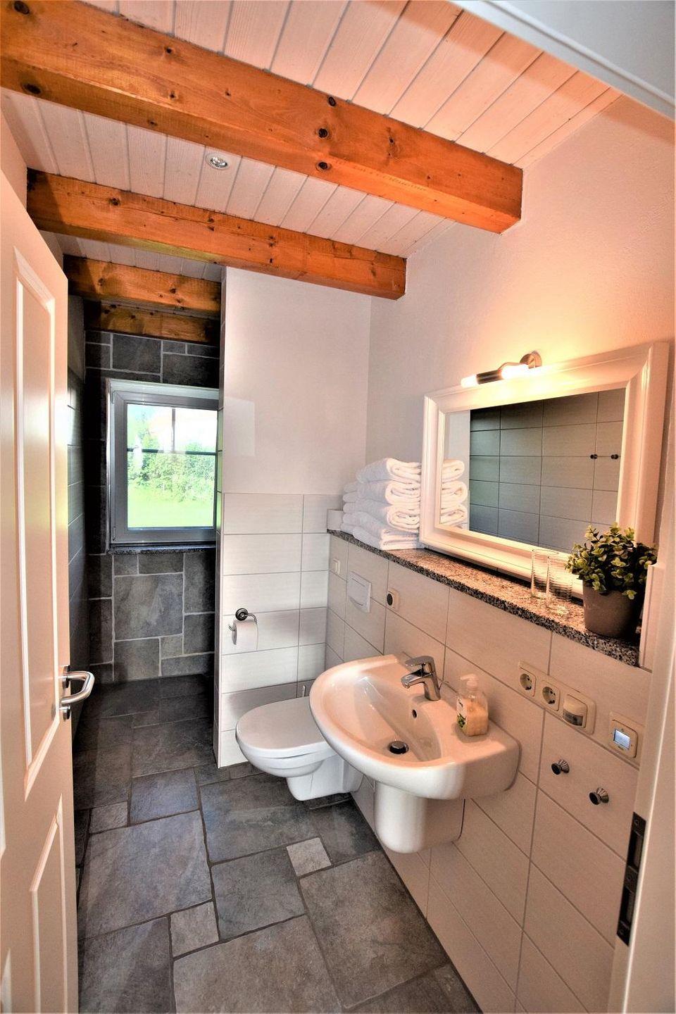 Im EG befindet sich ein Badezimmer mit Dusche und WC.