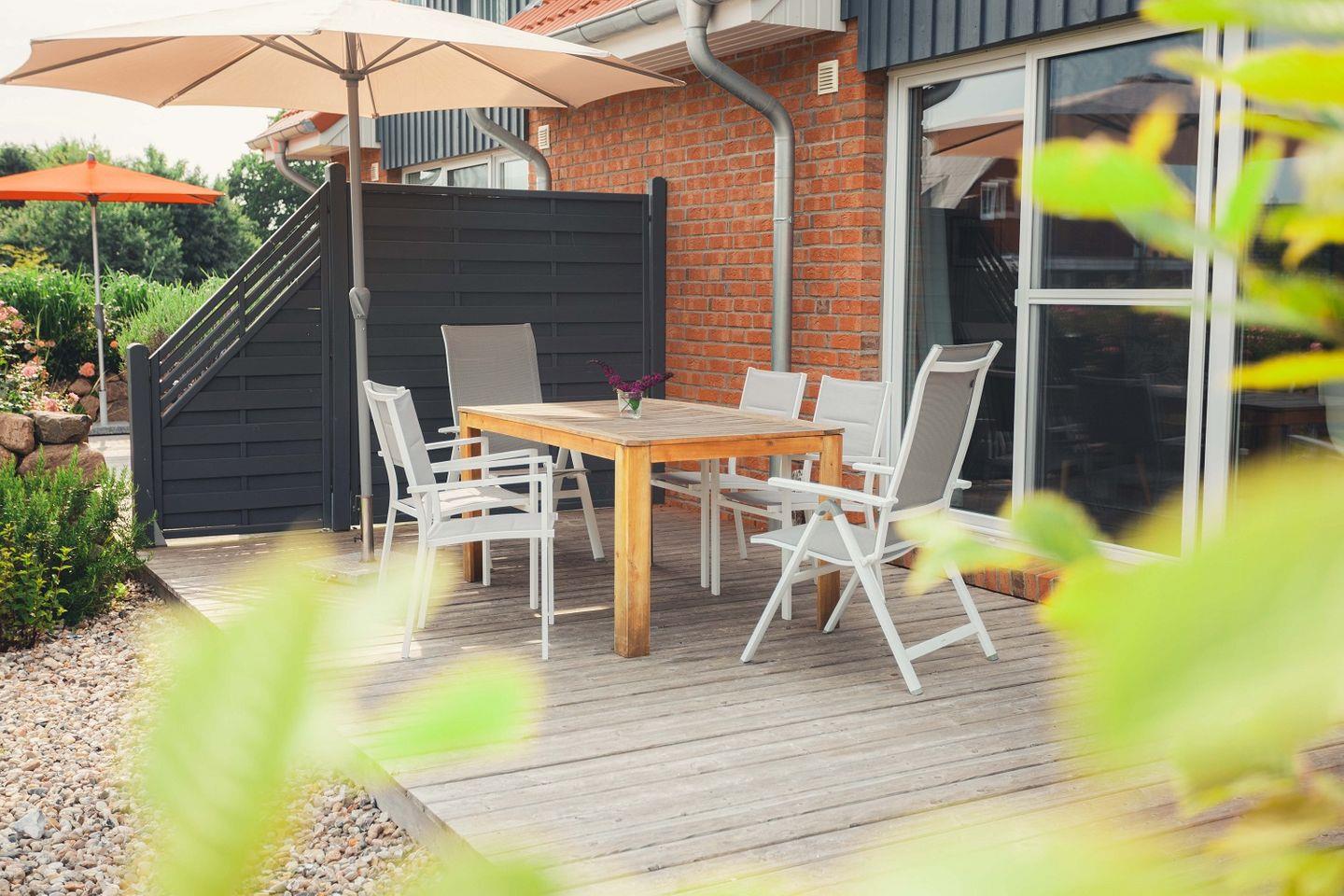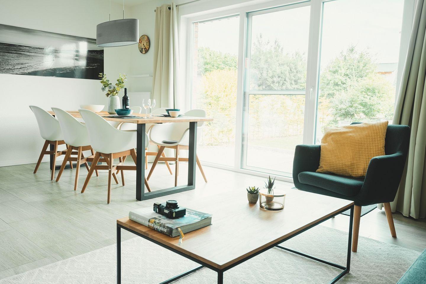 Das 2019 fertiggestellte Ferienhaus "Ostseehus Hohwacht" bietet auf ca. 90 qm Platz für bis zu 7 Gäste. In dem großen Wohnbereich mit Zugang zur Terrasse fällt viel Tageslicht. Sowohl der Wohnbereich mit Sitzgarnitur und großem Flachbildfernseher als auch der Essbereich sind besonders großzügig angelegt.