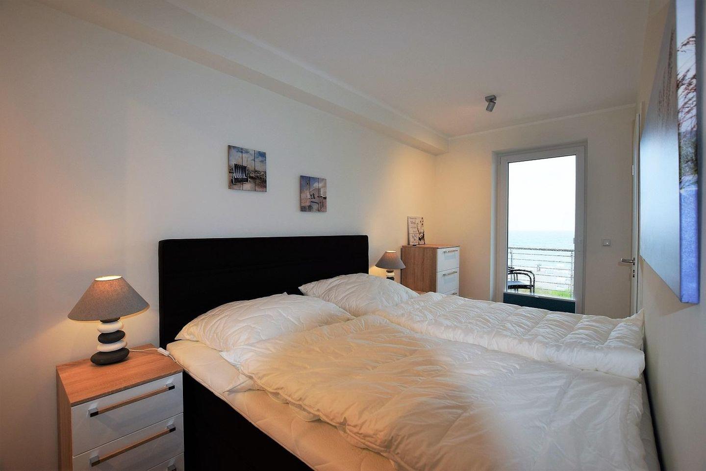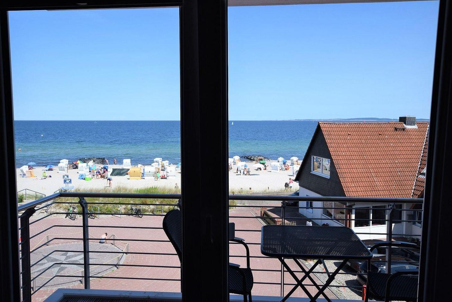 Direkt vom Wohnzimmer aus kann hier der große Balkon betreten werden. Zur Möblierung der Außenfläche finde Sie ein Tisch mit Stühlen. Dem gemütlichen Verweilen im Freien oder gemeinsamen Mahlzeiten an der frischen Luft steht also nichts im Wege. Der Blick fällt dabei direkt auf die wunderschöne Ostsee.