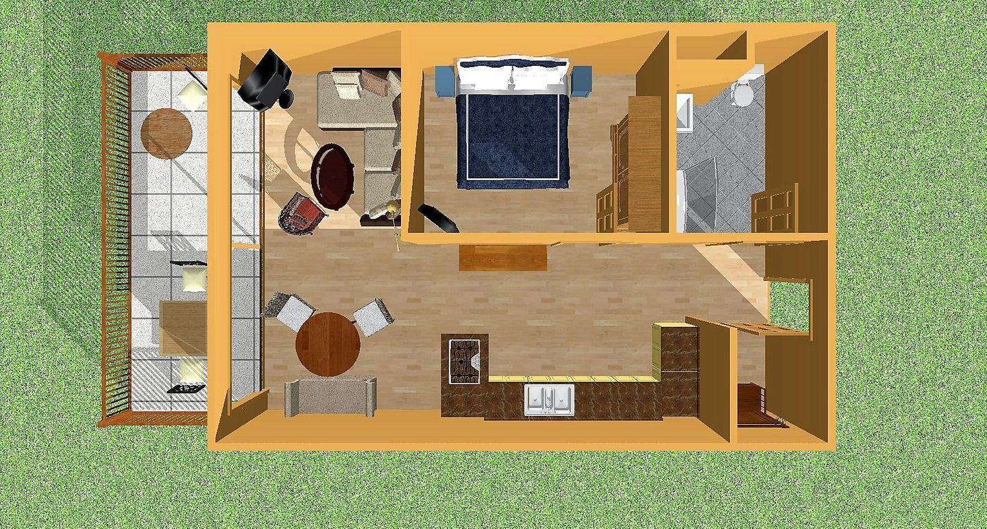 Das Wohnzimmer der Unterkunft wird von einem Balkon umschlossen. Hier kann der Ausblick den ganzen Tag über genossen werden - Tisch und Stühle stehen auf dem Balkon bereit und können gerne genutzt werden. Das Wohnzimmer kann mittels eines Sonnen- und Sichtschutz abgedunkelt werden.