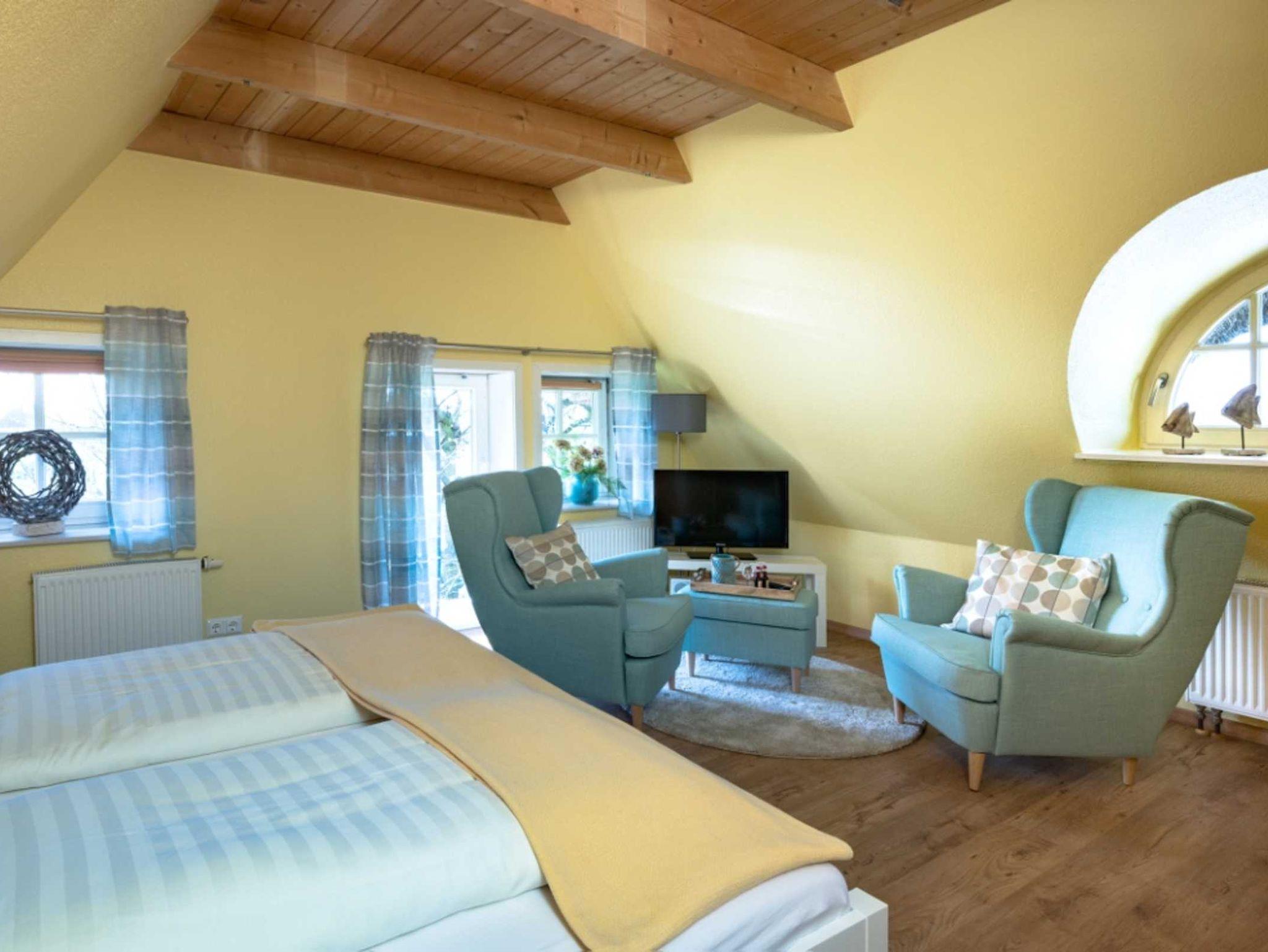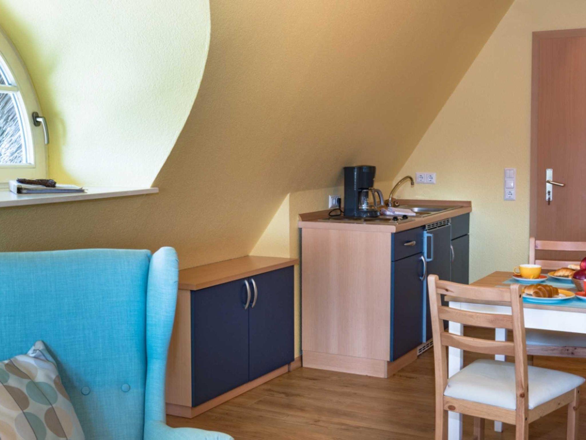 Wohnen Sie in einer gemütlichen 40qm Ferienwohnung (geeignet für 2 Personen) unter dem Reetdach des des 300 Jahre alten Fachwerkbauernhauses. Die Ferienwohnung verfügt über ein Wohn-Schlafzimmer mit Doppelbett, einer Sitzecke mit Sessel und TV, einer Kochnische und einem separaten Bad mit Dusche und WC. Hunde auf Anfrage. Hinweis: Die Ferienwohnung wurde im März/April 2018 frisch renoviert.