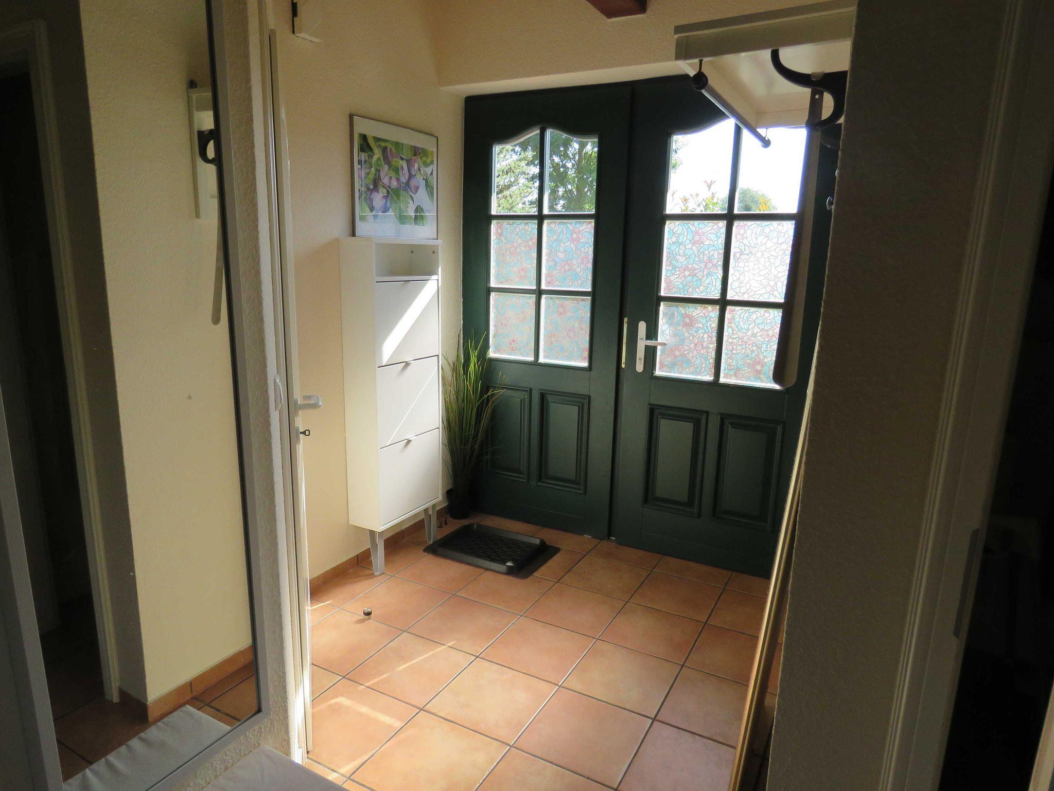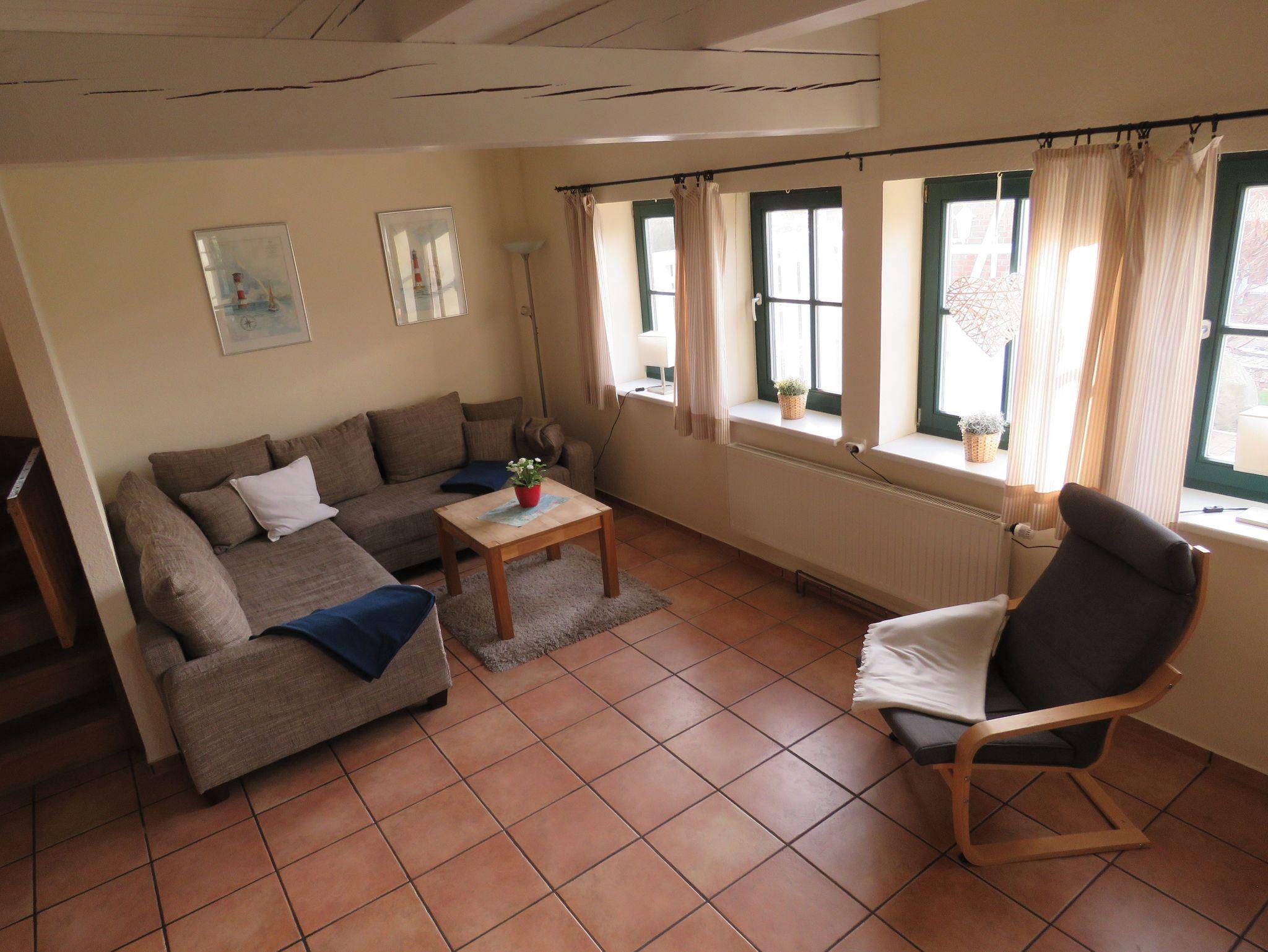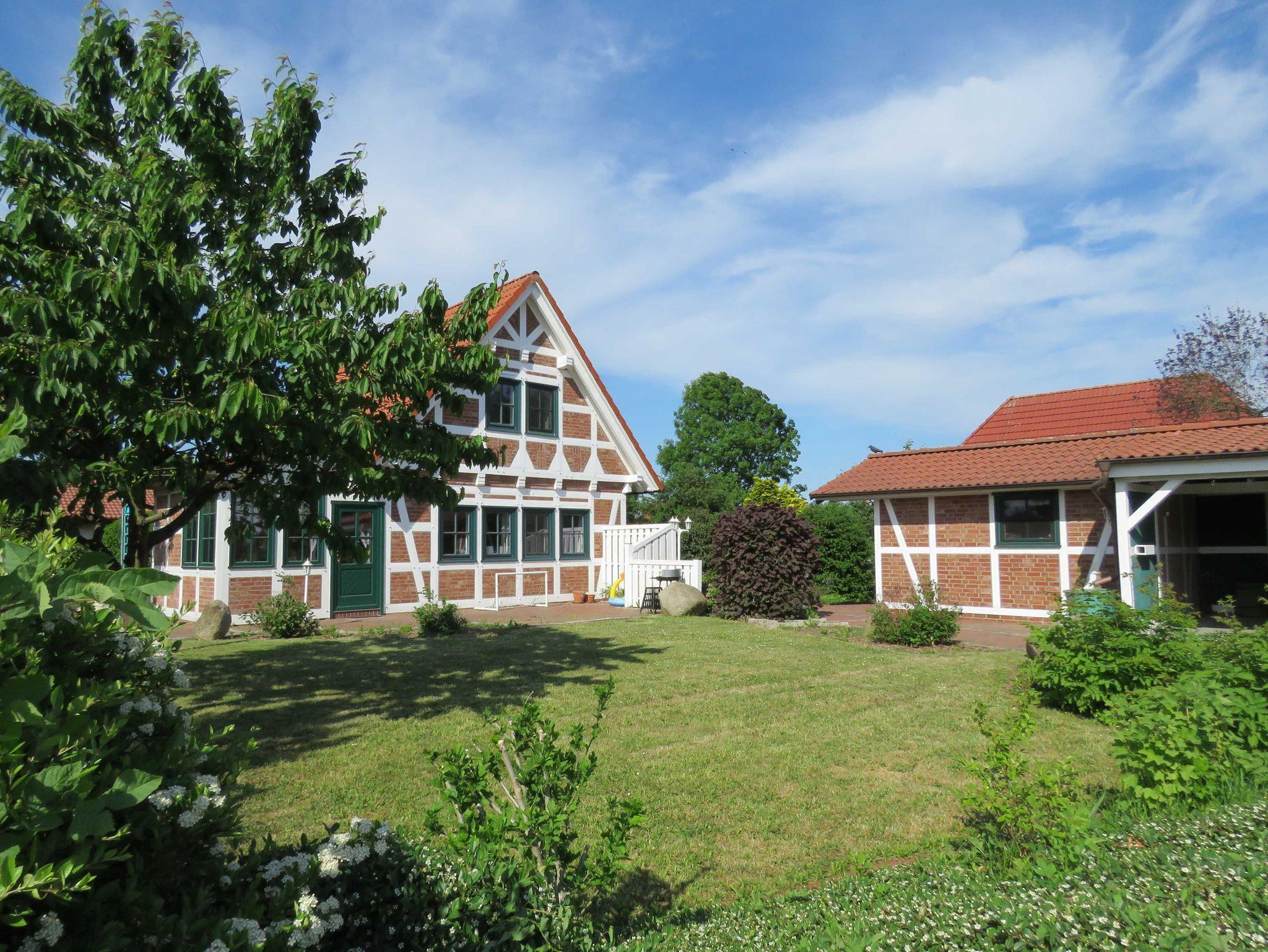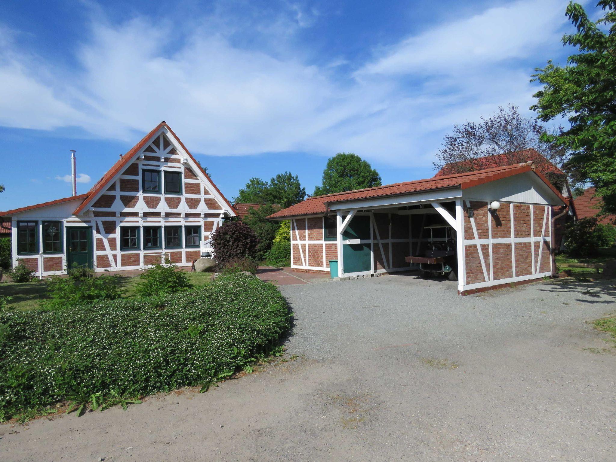Das nur einmal im Feriendorf in ruhiger Randlage errichtete Fachwerk-Ferienhaus Elbstar 301 hat eine Wohn-/Nutzfläche von ca. 85 m² und kann mit bis zu 6 Personen (+1 Kleinkind im Kinderreisebett) belegt werden. Im Ferienhaus Elbstar befinden sich im Erdgeschoss (komplett gefliest) der großzügige Wohnraum mit Kaminofen, ein Gäste-WC, die offene Küche (Ceran-Kochfeld/Backofen, Kühl-/Gefrierkombination, Mikrowelle und Spülmaschine) mit Bistrotisch für 3 Personen, ein separates Esszimmer und ein kleiner Abstellraum unter der Treppe, die mit einem Treppenschutzgitter (unten) versehen ist. Im Obergeschoss gelangt man von einer kleinen Empore sowohl in das Badezimmer (Dusche/WC), als auch in die Schlafräume (jeweils mit einem TV ausgestattet). Ein Schlafraum verfügt über ein Doppelbett und der andere Schlafraum verfügt über zwei ausziehbare Einzelbetten (Kojenbetten) und ein Kinderbettchen. Ein großzügiger Abstellraum zur Unterbringung von z. B. Fahrrädern, grenzt an das Carport, an das sich ein weiterer Parkplatz anschließt. Eine möblierte Sonnenterrasse steht zur Verfügung. Erreicht wird dieses schöne Ferienhaus über eine eigene Zufahrt. Nichtraucherhaus - kostenloses WLAN - Haustiere erlaubt - Brötchenservice von Ostern bis Oktober!