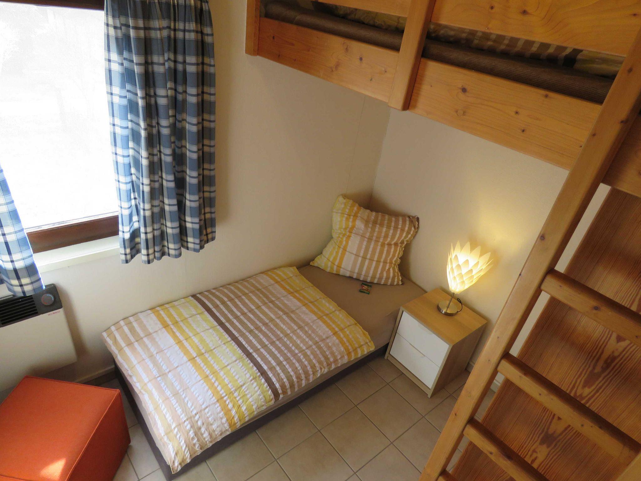 Unser gemütliches, ebenerdiges Ferienhaus 38, vom Typ Scout 48, mit eingezäuntem Grundstück, bietet Ihnen eine Wohn-/Nutzfläche von ca. 48 m² und kann mit bis zu 4 Personen (+ 1 Kleinkind im Kinderreisebett) belegt werden. Das Haus verfügt über einen Schlafraum mit zwei Einzelbetten, einen Schlafraum mit einem Einzelbett und einem eingebauten Hochbett, ein Badezimmer (Dusche / WC), einen außenliegenden Abstellraum und ein Wohnzimmer mit angrenzender Küche (Ceran-Kochfeld/Backofen, Kühlschrank/Gefrierfach, Mikrowelle und Spülmaschine) mit Essplatz. Zugang zur möblierten Terrasse vom Wohnzimmer. Nichtraucherhaus - kostenloses WLAN - Haustiere erlaubt - Brötchenservice von Ostern bis Oktober!