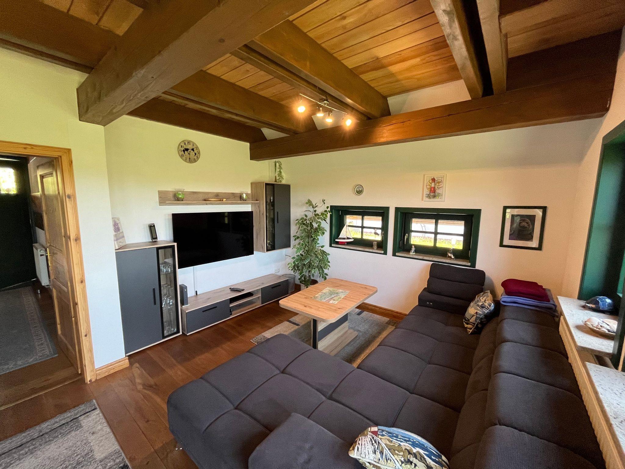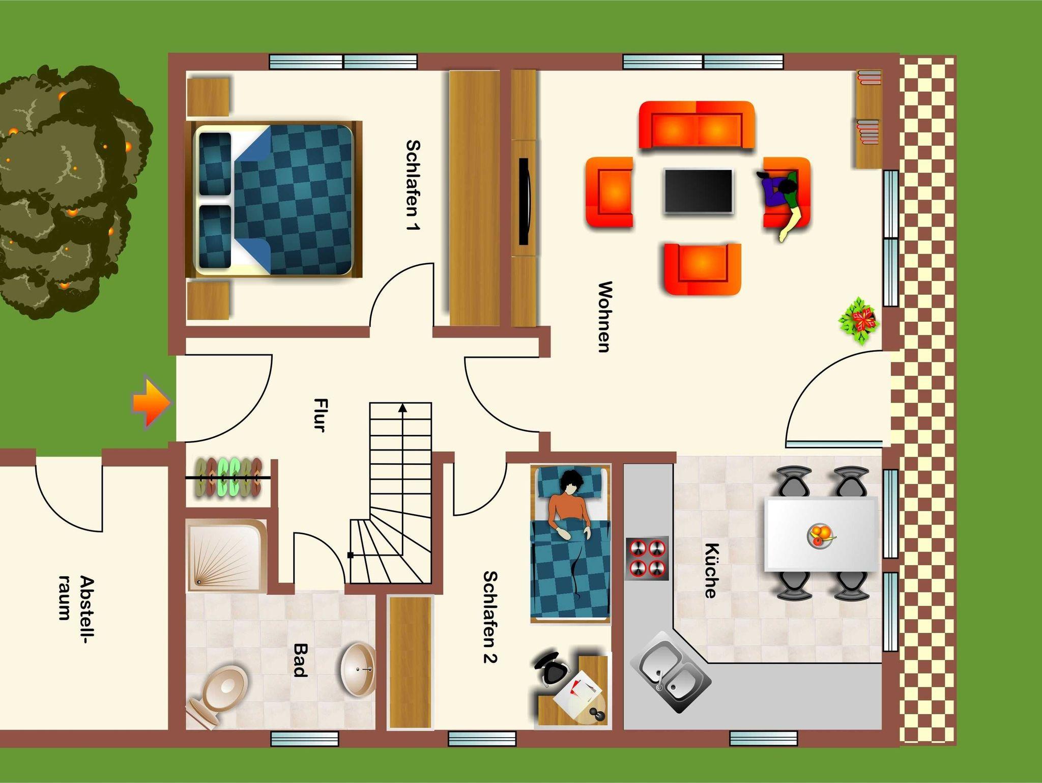 Das Ferienhaus Nr. 327 vom Typ Hanse verfügt über ca. 80 m² Wohn-/Nutzfläche und liegt in idyllischer Randlage (autofreier Bereich) mit Blick auf die Wettern. Das Haus kann mit bis zu 7 Personen (+1 Kleinkind im Kinderreisebett) belegt werden. Im Erdgeschoss befinden sich das Badezimmer (Dusche/WC), ein Schlafraum mit einem Doppelbett, 1 Schlafraum mit einem Etagenbett und das Wohnzimmer mit offener Küche (Cerankochfeld/Backofen, Kühl-schrank/Gefrierfach, Mikrowelle, Spülmaschine) und Essplatz. Zugang zur möblierten Terrasse vom Wohnzimmer. Zum Obergeschoß führt eine relativ steile, offene Treppe. Dort befinden sich ein weiterer Schlafraum mit 2 Einzelbetten, das 2. Badezimmer (Wanne / WC) sowie die Empore (Flur Bereich) mit zusätzlicher Schlafcouch. Im außenliegenden Abstellraum oder dem zum Haus gehörenden Gartenhaus befindet sich ein Kofferwagen für den Gepäcktransport. Nichtraucherhaus - kostenloses WLAN - Haustiere erlaubt - Brötchenservice von Ostern bis Oktober!