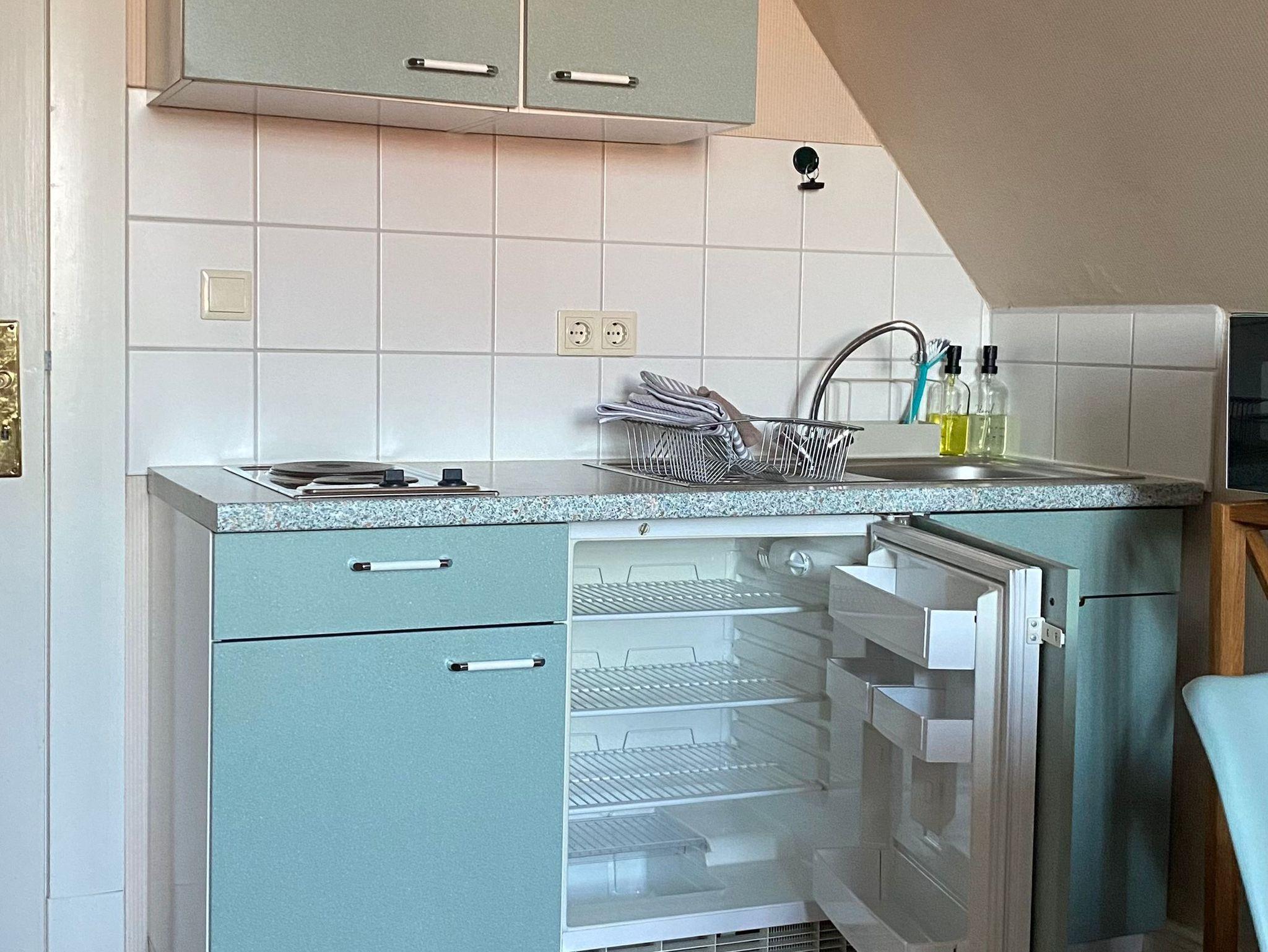 Durch das angrenzende kleine Gästezimmer kann sie mit weiteren 2 Personen belegt werden. Es ist ein kleines Zimmer mit Dachschräge, in dem die Betten hintereinander stehen.