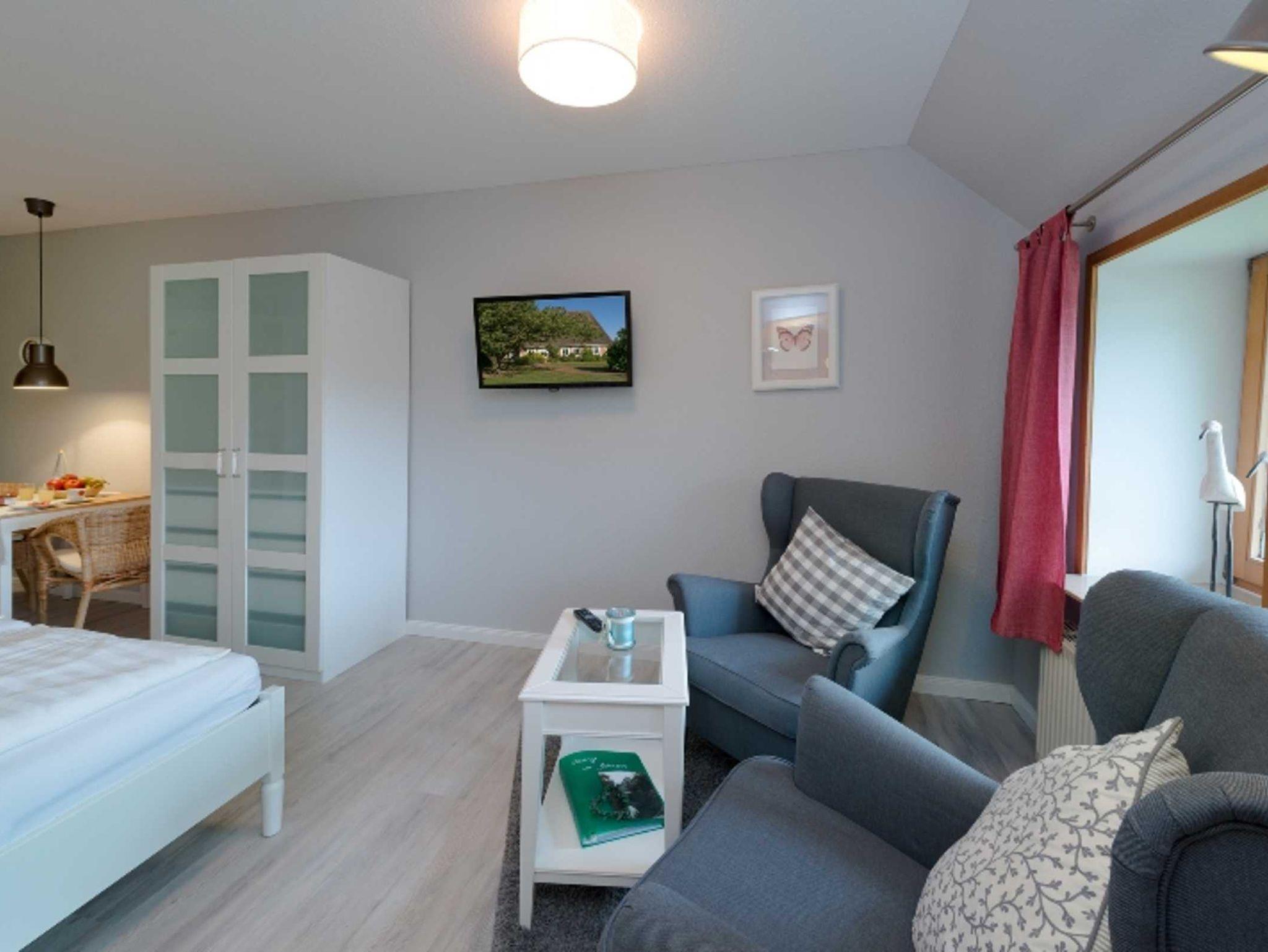 Das 25qm große Appartements (geeignet für 2 Personen) wurde im April 2016 renoviert und liegt im Parterre des 300 Jahre alten Fachwerkbauernhauses. Es verfügt über ein Wohn-Schlafzimmer mit Doppelbett, einer Sitzecke mit Sessel und TV, einer Kochnische und einem separaten Bad mit Dusche und WC. Hunde auf Anfrage.