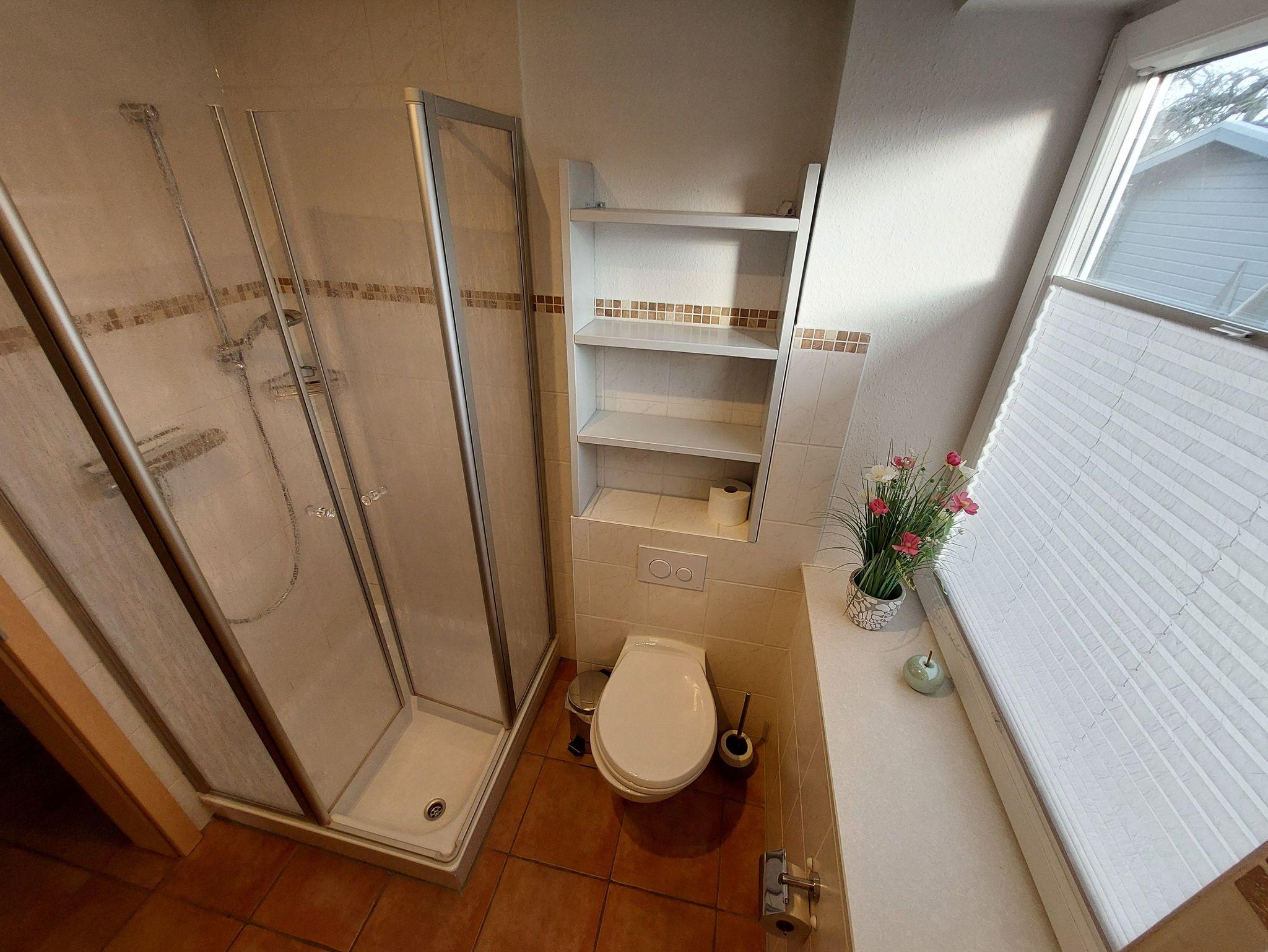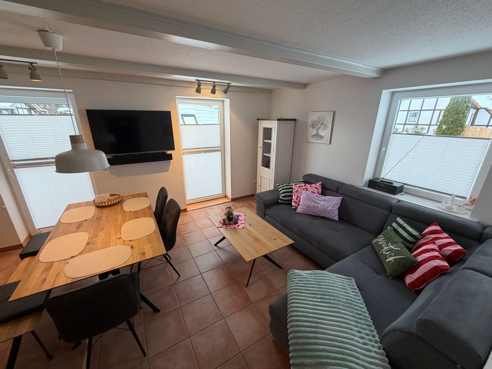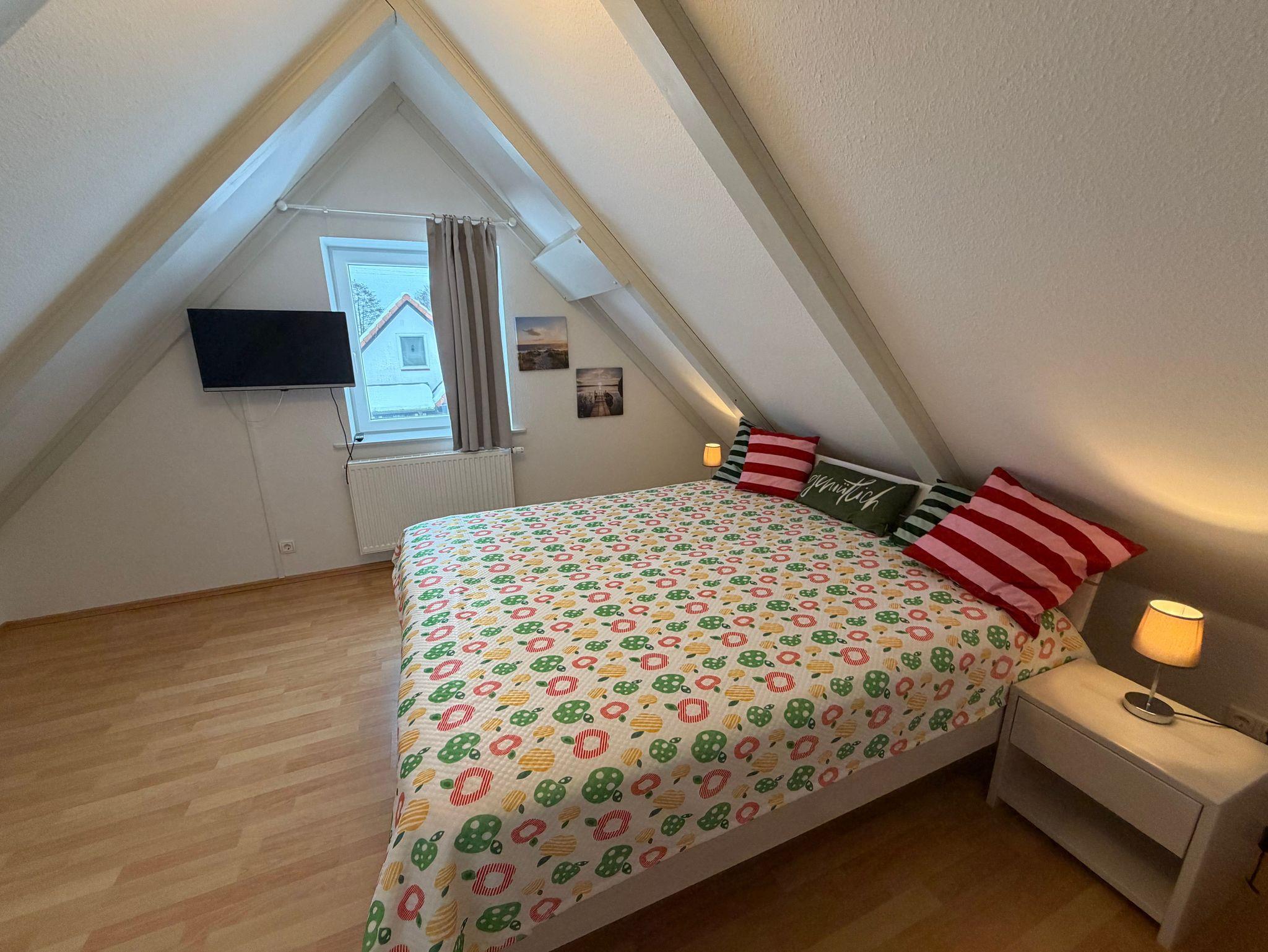 Das Fachwerk-Ferienhaus 110, ?Ingrid Marie?, gibt es nur einmal im Feriendorf. Es hat eine Wohn-/Nutzfläche von ca. 60 m² und kann mit bis zu 5 Personen (+1 Kleinkind im Kinderreisebett) belegt werden. Im Erdgeschoss befinden sich ein Schlafraum mit einem Doppelbett, mit Zugang zu einer gemütlichen Frühstücksterrasse, ein Abstellraum, das Badezimmer (Dusche/WC) und der Wohn/-Essraum mit Sitzecke und Essplatz sowie offener Küche (Ceran-Kochfeld, Backofen, Kühlschrank mit Gefrierfach, Spülmaschine, Mikrowelle). Zugang zur möblierten Terrasse vom Wohnzimmer. Im Obergeschoss befinden sich ein Schlafraum mit einem französischen Bett, 1 Schlafraum mit einem Einzelbett, ein zusätzliches WC und eine kleine Empore. Ein weiterer, außenliegender Abstellraum bietet genügend Platz für Fahrräder, Kinderwagen etc.. Das Haus verfügt über einen SAT-Fernsehanschluss (abweichend von den übrigen Ferienhäusern im Feriendorf). Nichtraucherhaus - kostenloses WLAN - Haustiere erlaubt - Brötchenservice von Ostern bis Oktober!