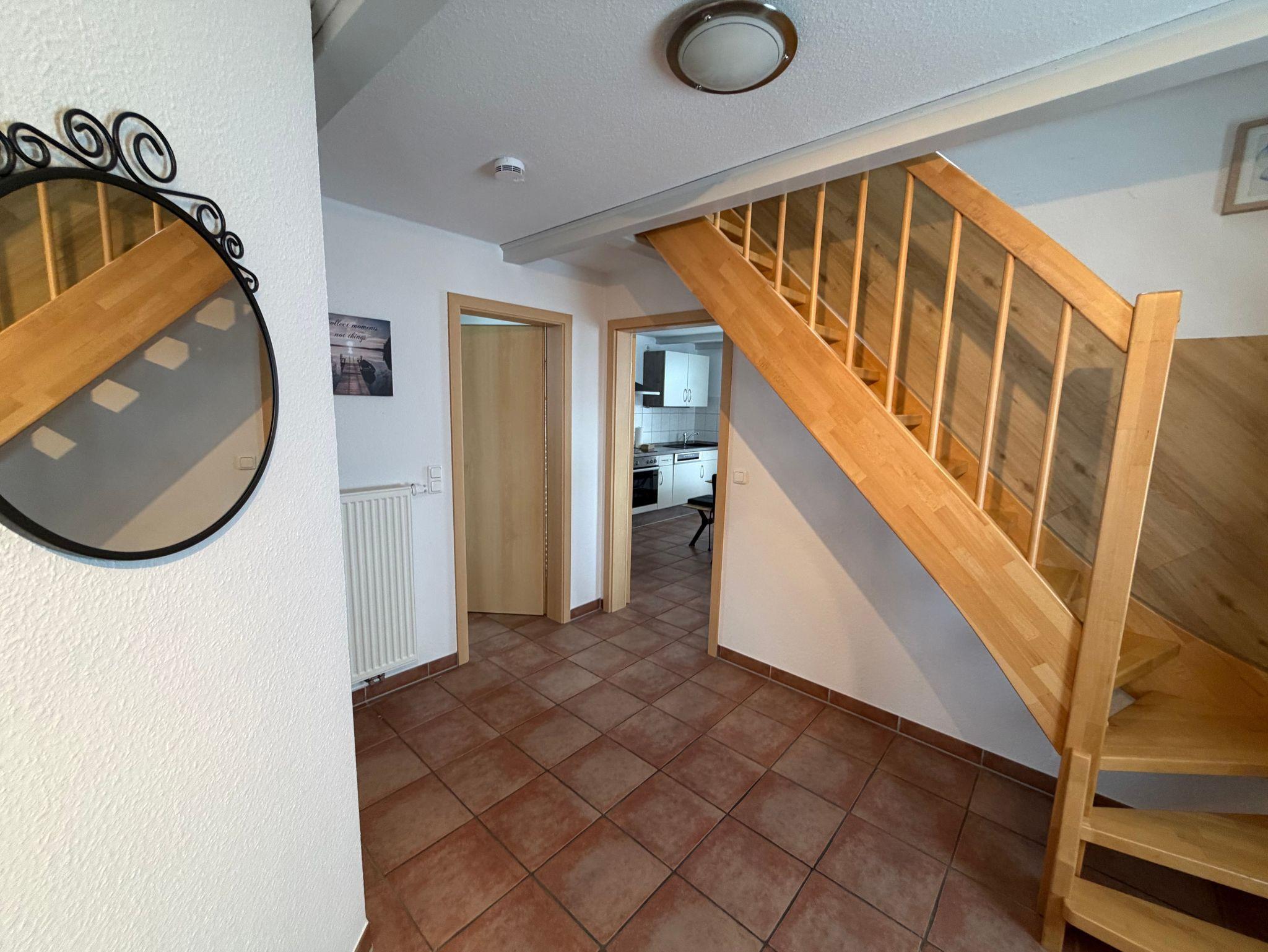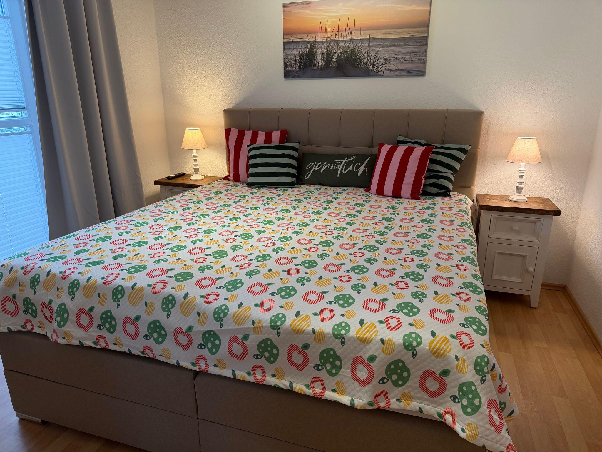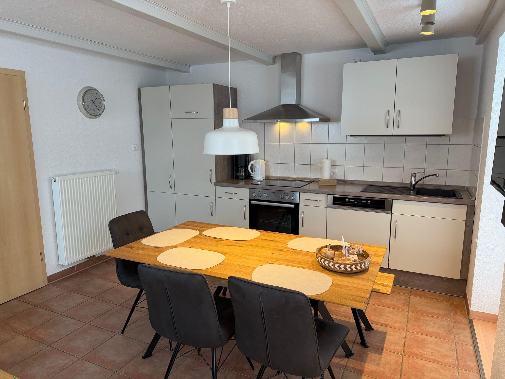 Das Fachwerk-Ferienhaus 110, ?Ingrid Marie?, gibt es nur einmal im Feriendorf. Es hat eine Wohn-/Nutzfläche von ca. 60 m² und kann mit bis zu 5 Personen (+1 Kleinkind im Kinderreisebett) belegt werden. Im Erdgeschoss befinden sich ein Schlafraum mit einem Doppelbett, mit Zugang zu einer gemütlichen Frühstücksterrasse, ein Abstellraum, das Badezimmer (Dusche/WC) und der Wohn/-Essraum mit Sitzecke und Essplatz sowie offener Küche (Ceran-Kochfeld, Backofen, Kühlschrank mit Gefrierfach, Spülmaschine, Mikrowelle). Zugang zur möblierten Terrasse vom Wohnzimmer. Im Obergeschoss befinden sich ein Schlafraum mit einem französischen Bett, 1 Schlafraum mit einem Einzelbett, ein zusätzliches WC und eine kleine Empore. Ein weiterer, außenliegender Abstellraum bietet genügend Platz für Fahrräder, Kinderwagen etc.. Das Haus verfügt über einen SAT-Fernsehanschluss (abweichend von den übrigen Ferienhäusern im Feriendorf). Nichtraucherhaus - kostenloses WLAN - Haustiere erlaubt - Brötchenservice von Ostern bis Oktober!