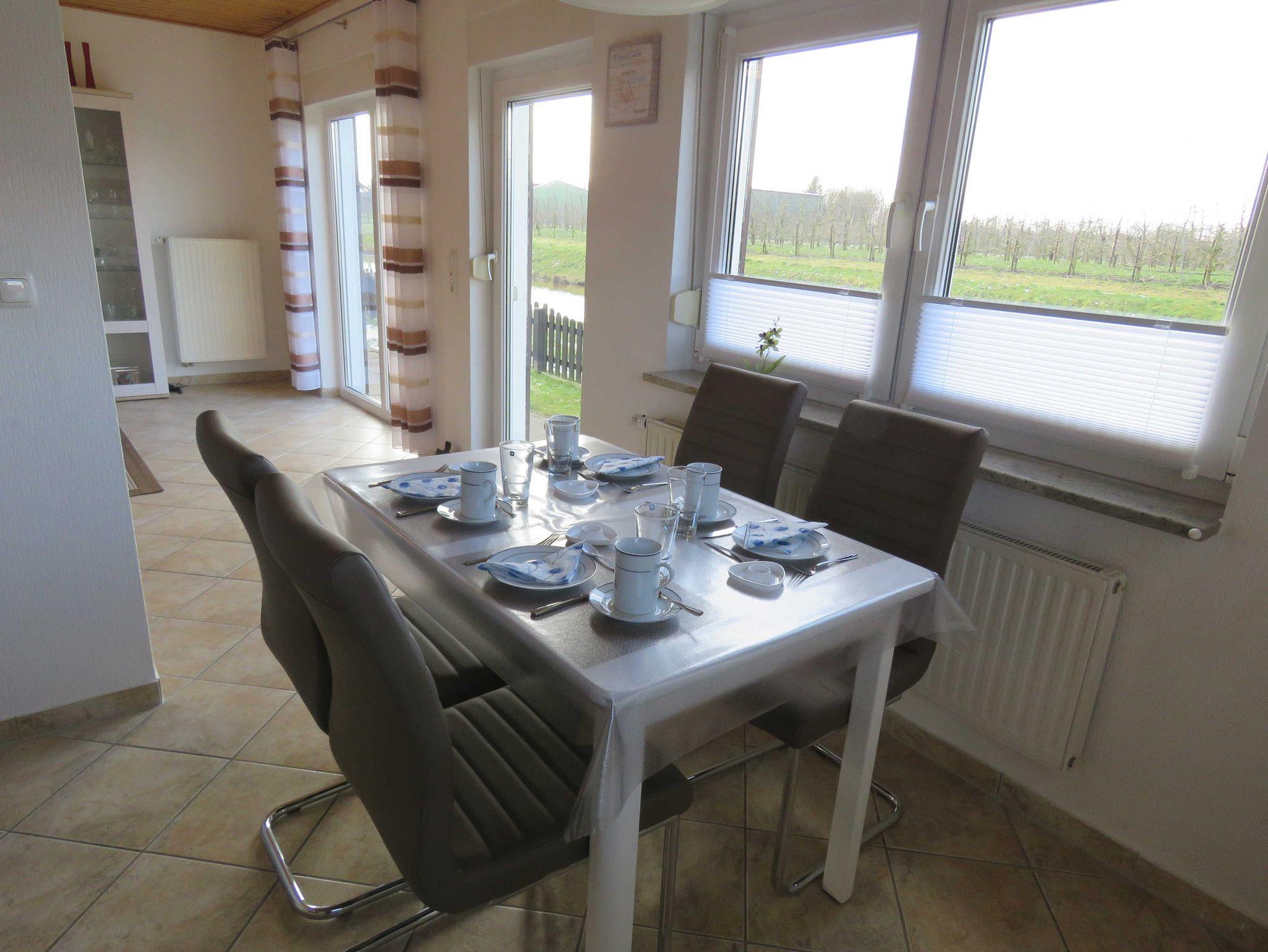 Das massiv errichtete, ebenerdige Ferienhaus 321, vom Typ Kogge, befindet sich im absolut autofreien Teil unseres schönen Feriendorfes - ruhige Randlage mit Blick auf die Wettern und einen alten Obsthof. Das Haus verfügt über ca. 60 m² Wohn-/Nutzfläche und kann mit bis zu 4 Personen (+1 Kleinkind im Kinderreisebett) belegt werden, das Grundstück ist eingezäunt. Das Ferienhaus bietet Ihnen neben einem Schlafraum mit einem Doppelbett, einem Schlafraum mit 2 Einzelbetten, einem Badezimmer (Dusche / WC) und einem Abstellraum (mit Waschmaschine und Trockner) ein geräumiges Wohnzimmer mit offener Küche (Ceran-Kochfeld/Backofen, Kühlschrank/Gefrierfach, Mikrowelle, Spülmaschine) und Essplatz. Zugang zur möblierten Terrasse vom Wohnzimmer. Für den Gepäcktransport steht im Abstellraum oder dem zum Haus gehörenden Gartenhäuschen, in dem man seine Fahrräder unterstellen kann, ein Kofferwagen zur Verfügung. Das Haus verfügt über 2 fest zugewiesene Parkplätze (der 2. Parkplatz ist kostenpflichtig), wovon sich einer unter einem Carport befindet. Nichtraucherhaus - kostenloses WLAN - Haustiere erlaubt - Brötchenservice von Ostern bis Oktober!