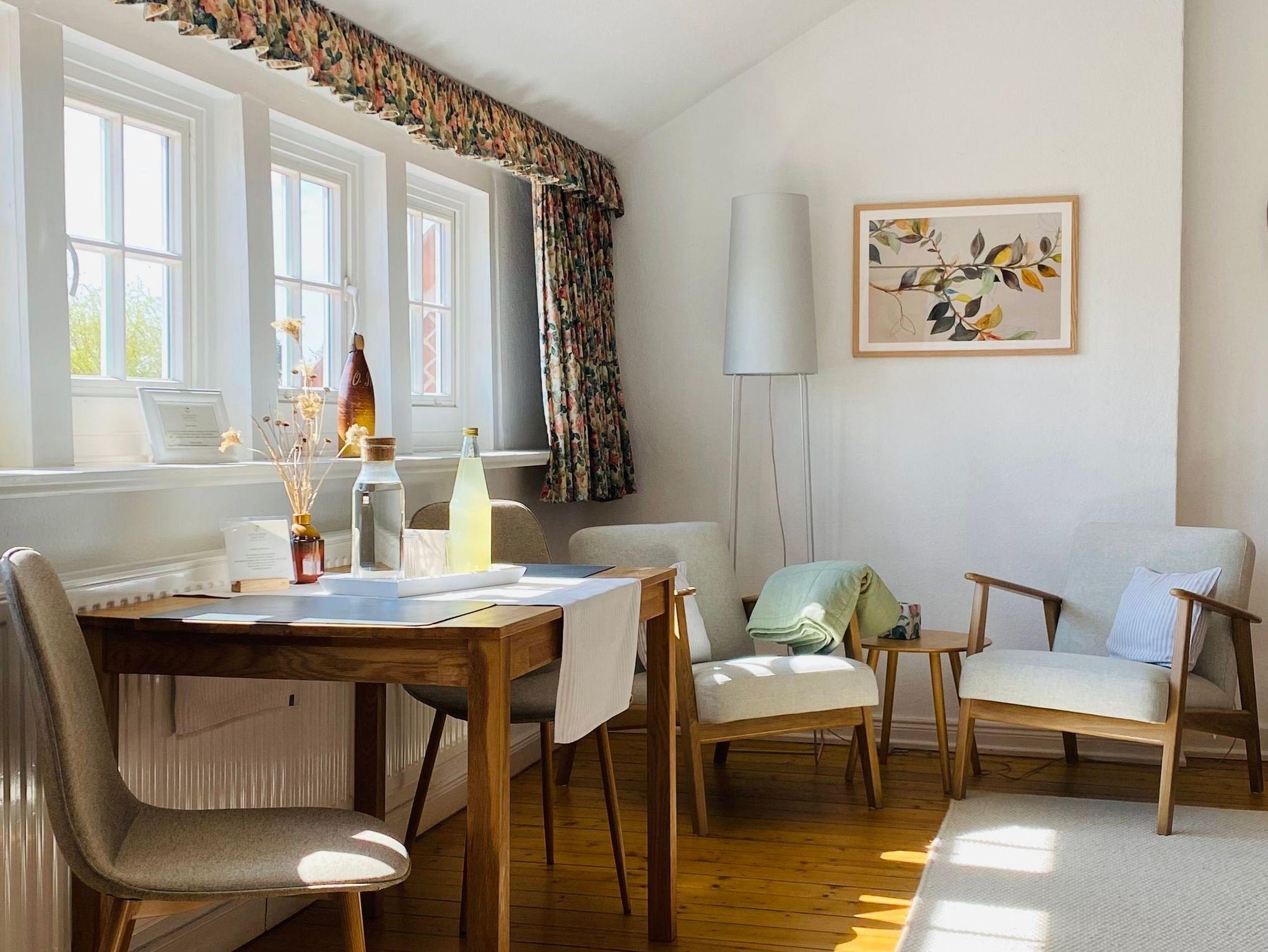 Unser Doppelzimmer Heimatliebe liegt im Obergeschoss des Altländer Bauernhauses. Unser Kuschelnest schaut nach Osten, Sie erleben den Sonnenaufgang pur. Ganz gemütlich eingerichtet mit zwei bequemen Sesseln und ebenfalls einem Tisch, auf dem Sie Ihre Zeitung oder kleinen Snack zu sich nehmen können!