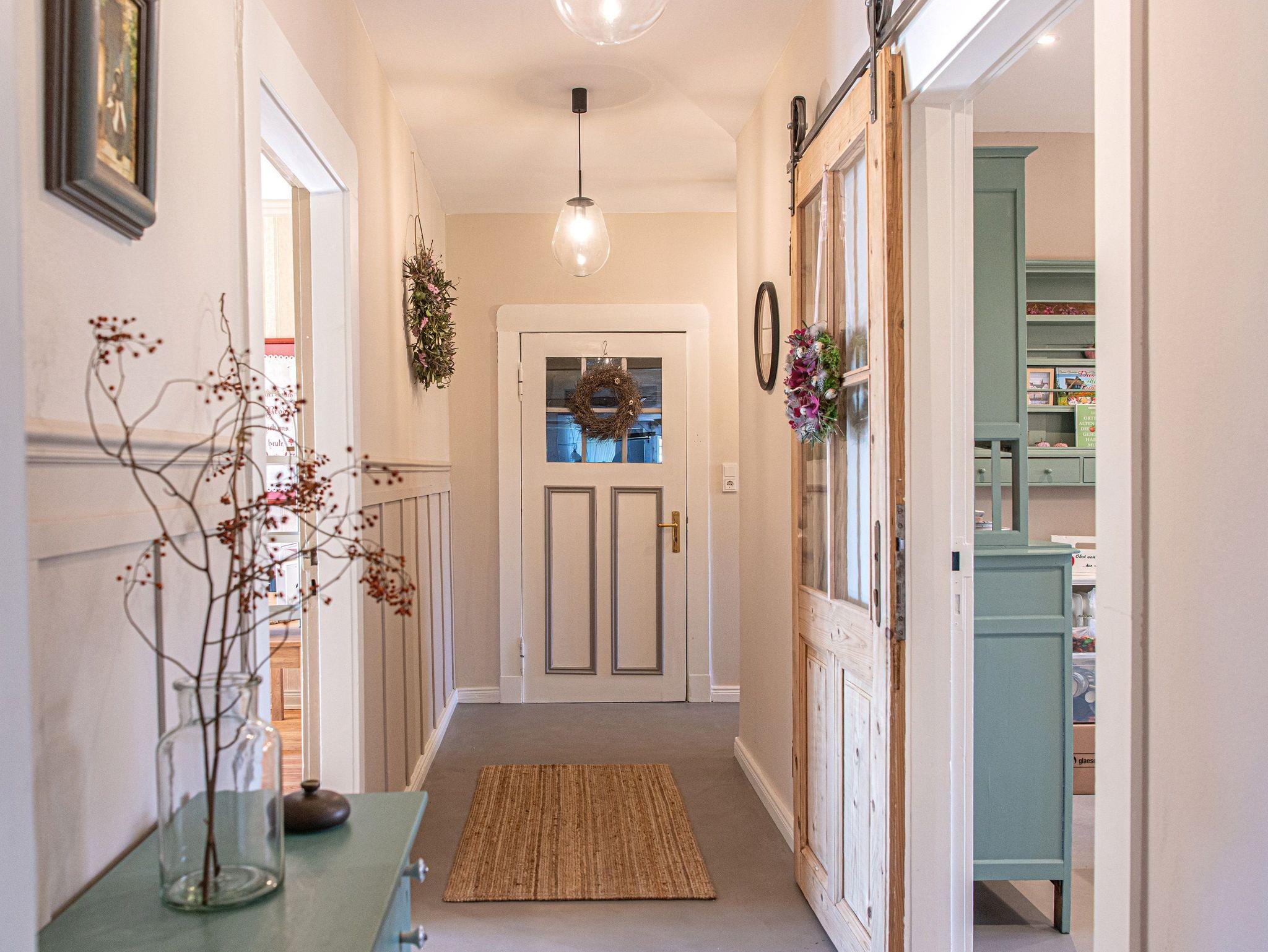 Wir laden Sie zu entspannten Urlaubstagen in unseren liebevoll eingerichteten Ferienwohnungen und Doppelzimmern ein in unserem wunderschönem Altländer Bauernhaus. Das Haus wurde 1908 von zwei Architekten aus Bremen entworfen, nachdem das alte Bauernhaus abgebrannt war. Das neue Gebäude sollte zur Region passen, aber auch ein paar Besonderheiten haben. Man entschied sich damals für eine Veranda mit Haupteingang an der Seite und dahinter eine großzügige Empfangshalle mit einer Galerie. Die sogenannte Brauttür im Giebel ist nur ein Schmuckstück und war nie begehbar.