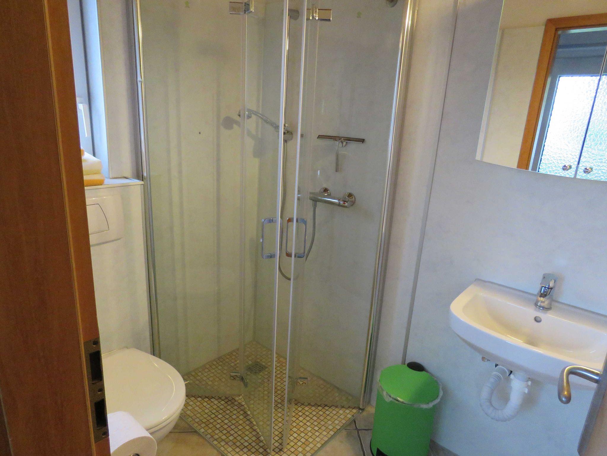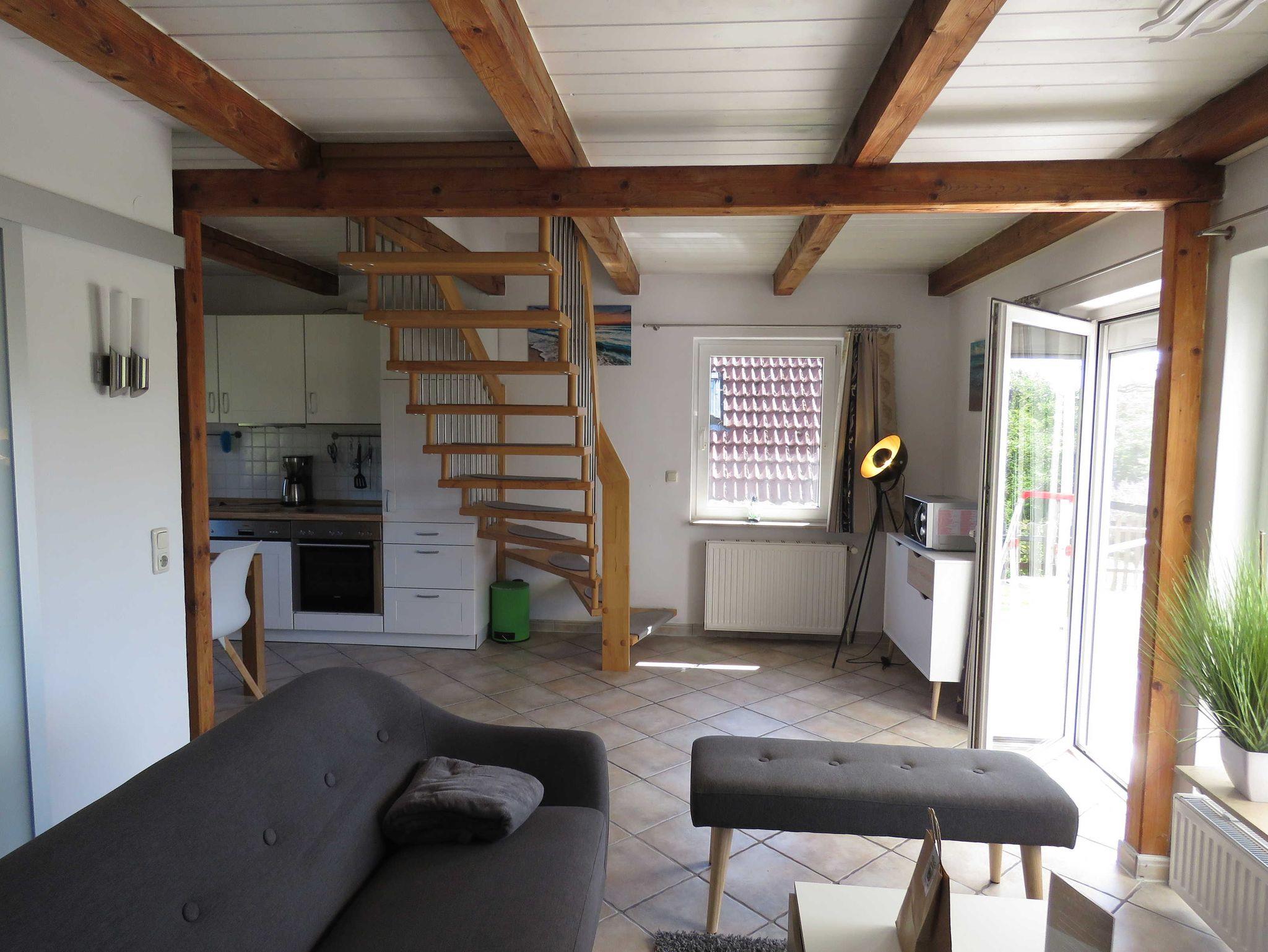 Die massiv errichteten Ferienhäuser vom Typ Scout 60 verfügen über ca. 60 m² Wohn-/Nutzfläche auf 2 Etagen und können mit bis zu 5 Personen (+ 1 Kleinkind im Kinderreisebett) belegt werden. Im Erdgeschoss befindet sich das Badezimmer (Dusche/WC), das Wohnzimmer (mit Schlafgelegenheit) mit angrenzender offener Küche mit Essplatz (Ceran-Kochfeld/Backofen - Kühlschrank/Gefrierfach, Mikrowelle und Spülmaschine). Zugang zur möblierten Terrasse vom Wohnzimmer. Über die offene Treppe im Wohnbereich gelangt man zu den beiden Schlafräumen im Obergeschoss (ein Schlafraum mit einem Doppelbett und ein Schafraum mit zwei Einzelbetten). Als Abstellmöglichkeit stehen entweder ein außenliegender Abstellraum oder ein Gartenhäuschen zur Verfügung. Nichtraucherhäuser - kostenloses WLAN - Haustiere erlaubt - Brötchenservice von Ostern bis Oktober!