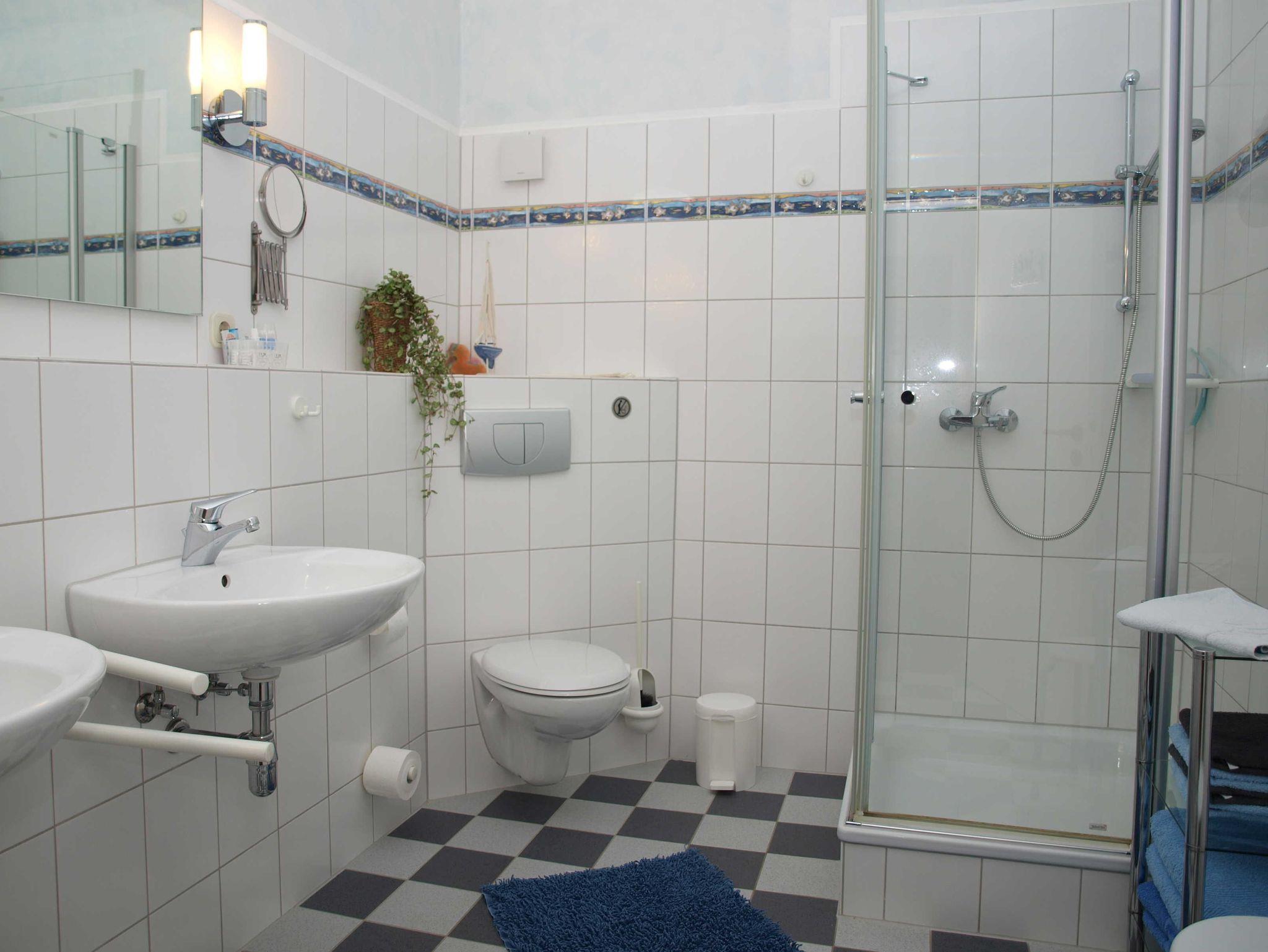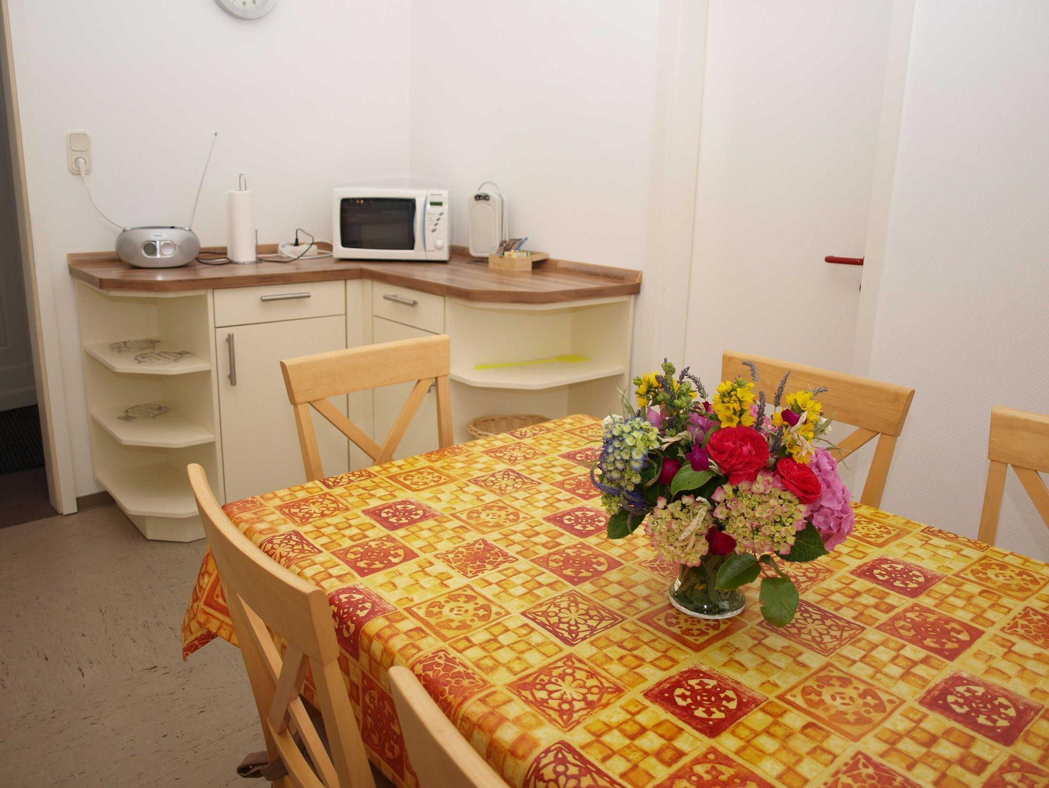 Ehemalige Direktionswohnung im 1. Obergeschoss in der alten Dorfschule unweit von der Dorfkirche. Sie haben 2 Schlafzimmer mit je einem Doppelbett. Ein Büro mit Schreibtisch, Küche mit allem Erdenklichen an Ausstattung sowie Wohnzimmer und Bad stehen Ihnen zur Verfügung.