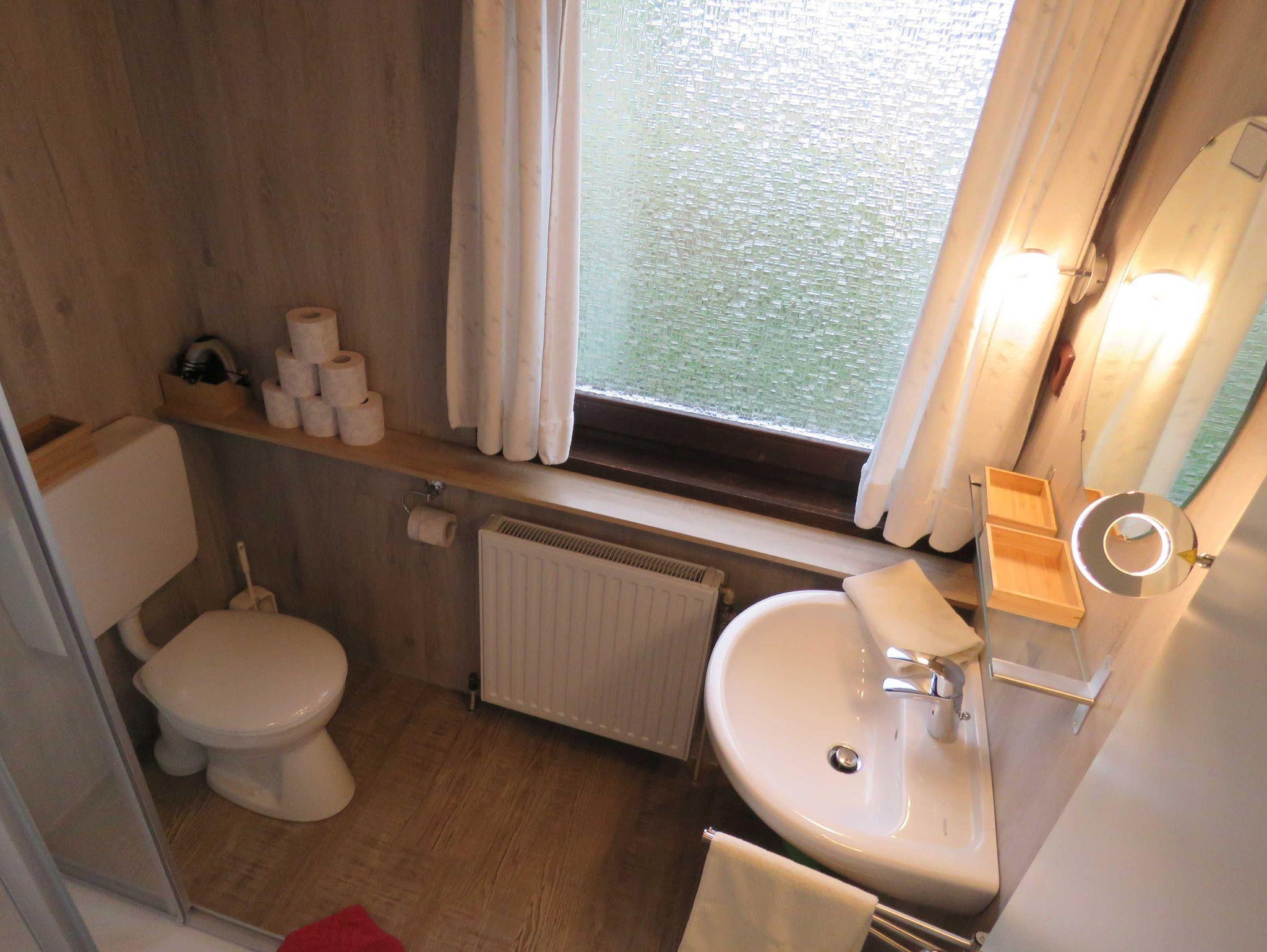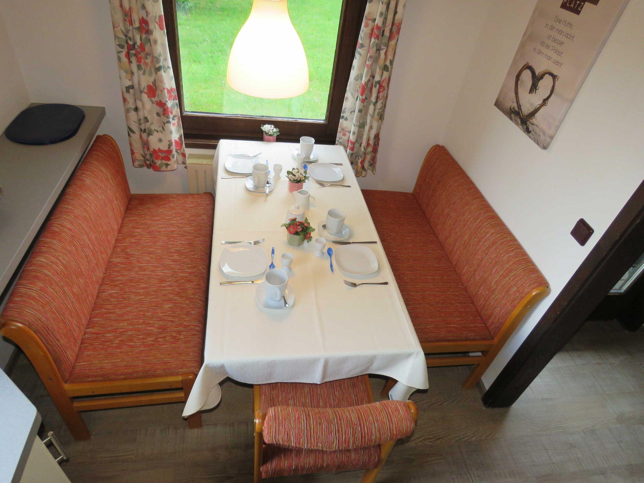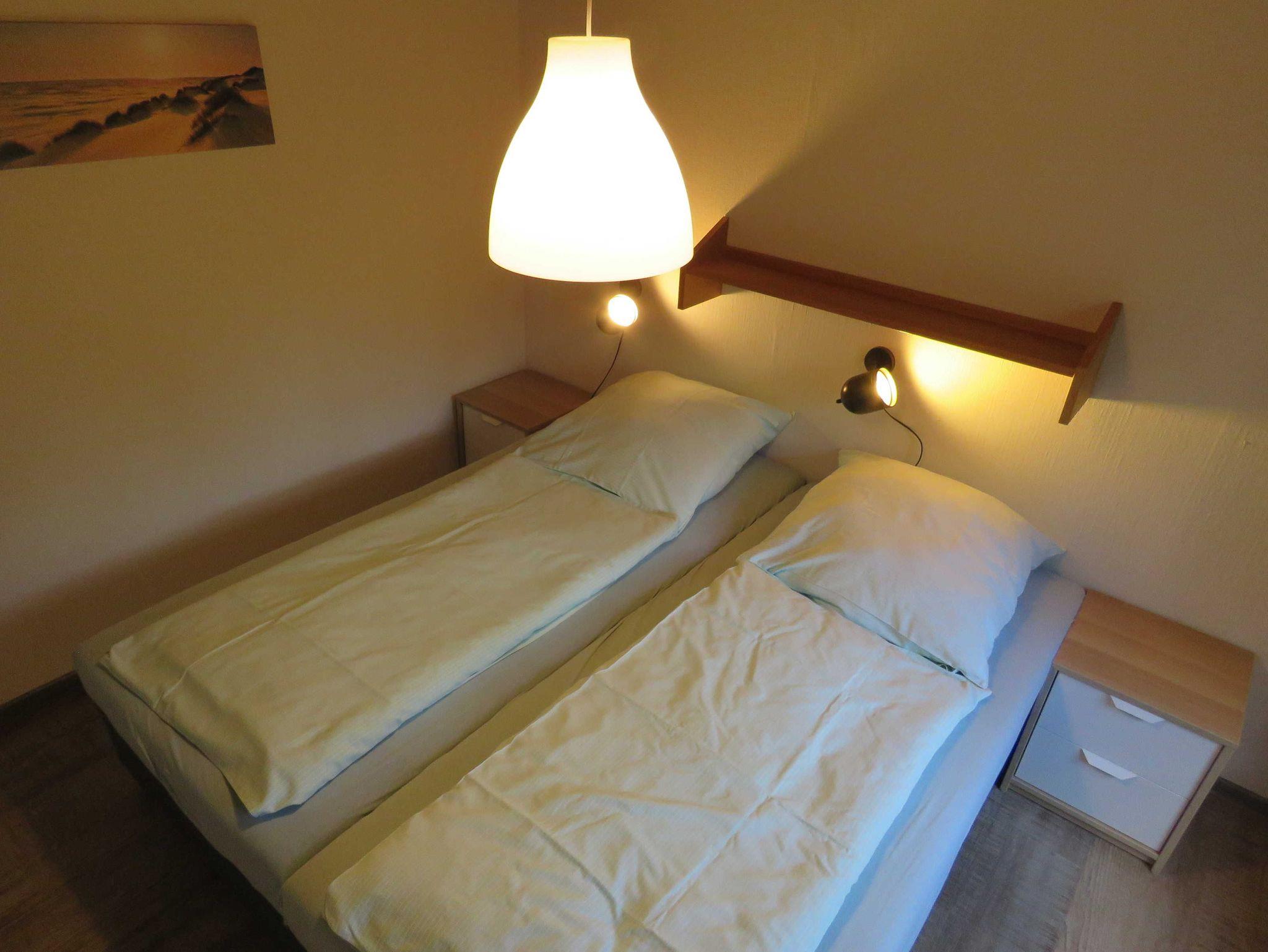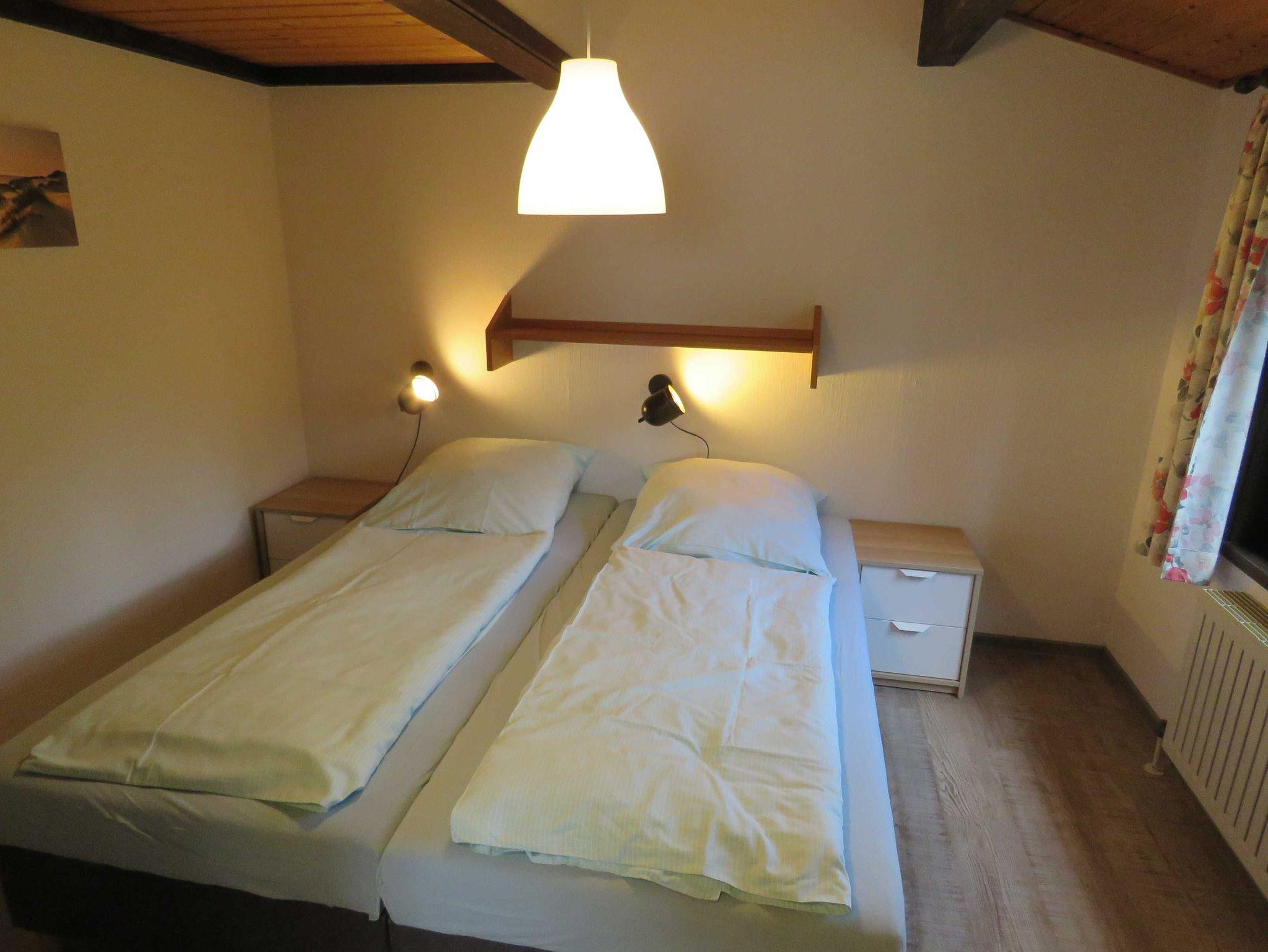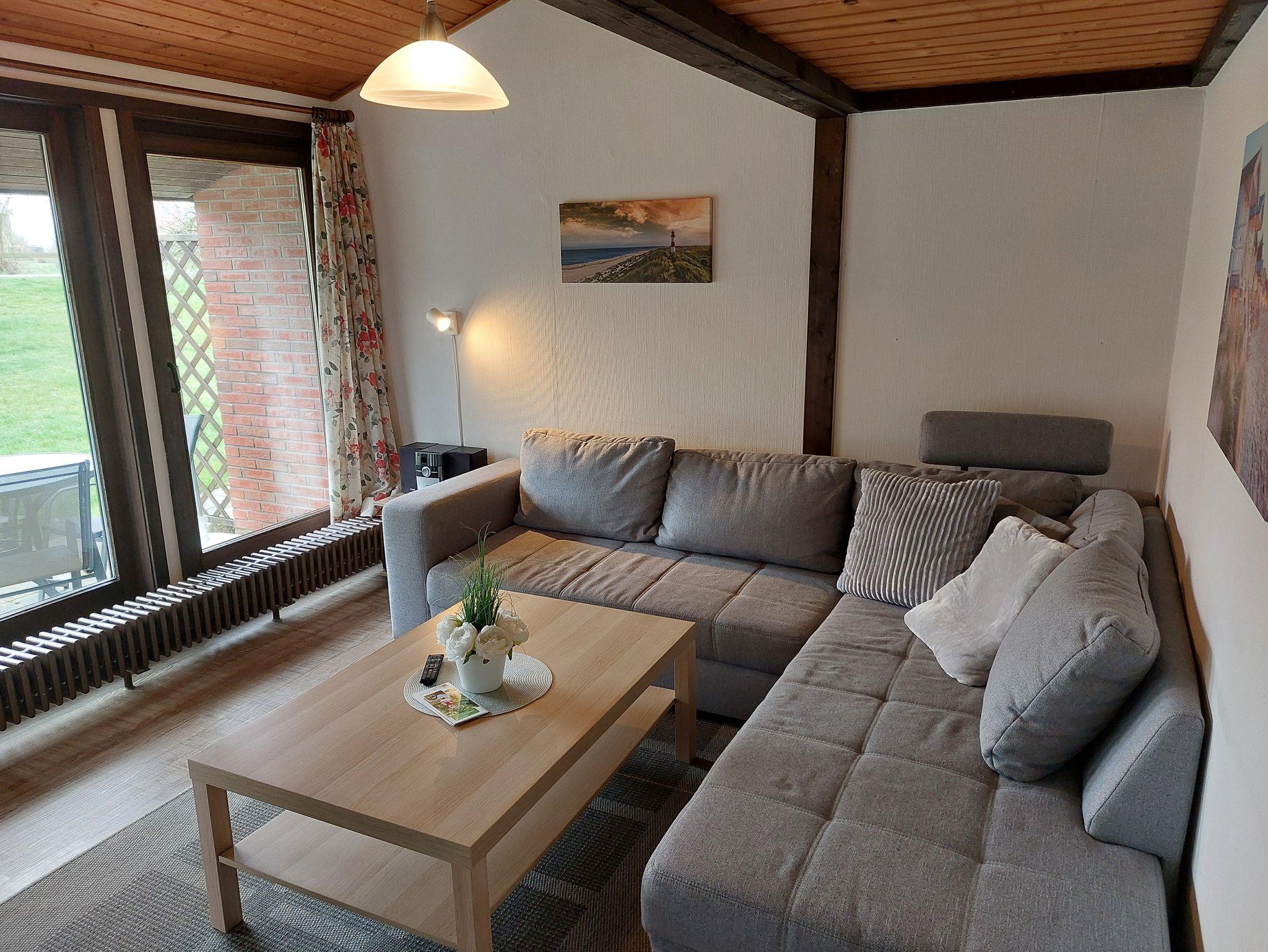 Unsere gemütliche, ebenerdige Doppelhaushälfte Nr. 85, Typ Scout 42, bietet Ihnen eine Wohn-/Nutzfläche von ca. 42 m² und kann mit 2 Personen (ebenerdig) oder bis zu 4 Personen bei Nutzung der Koje unterm Dach, belegt werden. Zusätzlich kann im Schlafraum ein Kinderreisebett für ein Kleinkind aufgestellt werden. Das Haus bietet Ihnen ein Badezimmer (Dusche/WC), einen innenliegenden Abstellraum, einen Schlafraum mit zwei Einzelbetten und ein Wohnzimmer mit angrenzender Küche (Cerankochfeld/Backofen, Kühlschrank/Gefrierfach, Spülmaschine) mit Essplatz. Zugang zur möblierten Terrasse vom Wohnzimmer. Vom Flur aus führt eine Leiter auf die Koje, in der sich 2 weitere Schlafgelegenheiten (idealerweise für 2 Kinder ab 6 Jahren) befinden. Nichtraucherhaus - kostenloses WLAN - Haustiere erlaubt - Brötchenservice von Ostern bis Oktober!