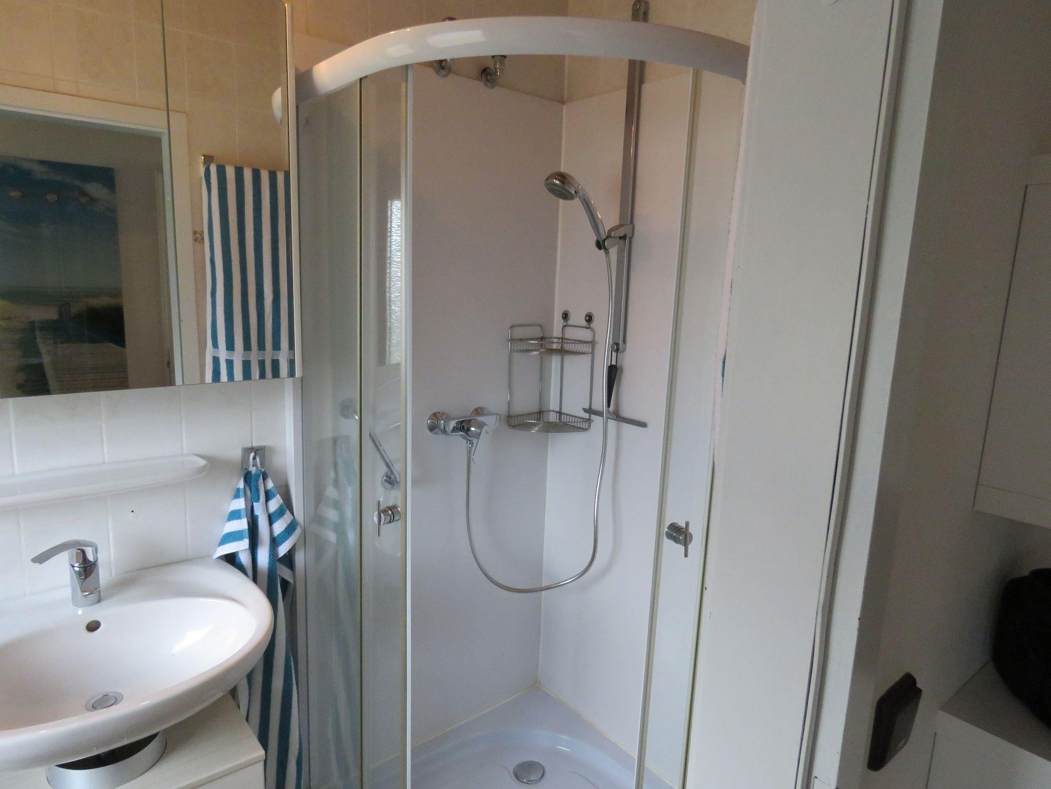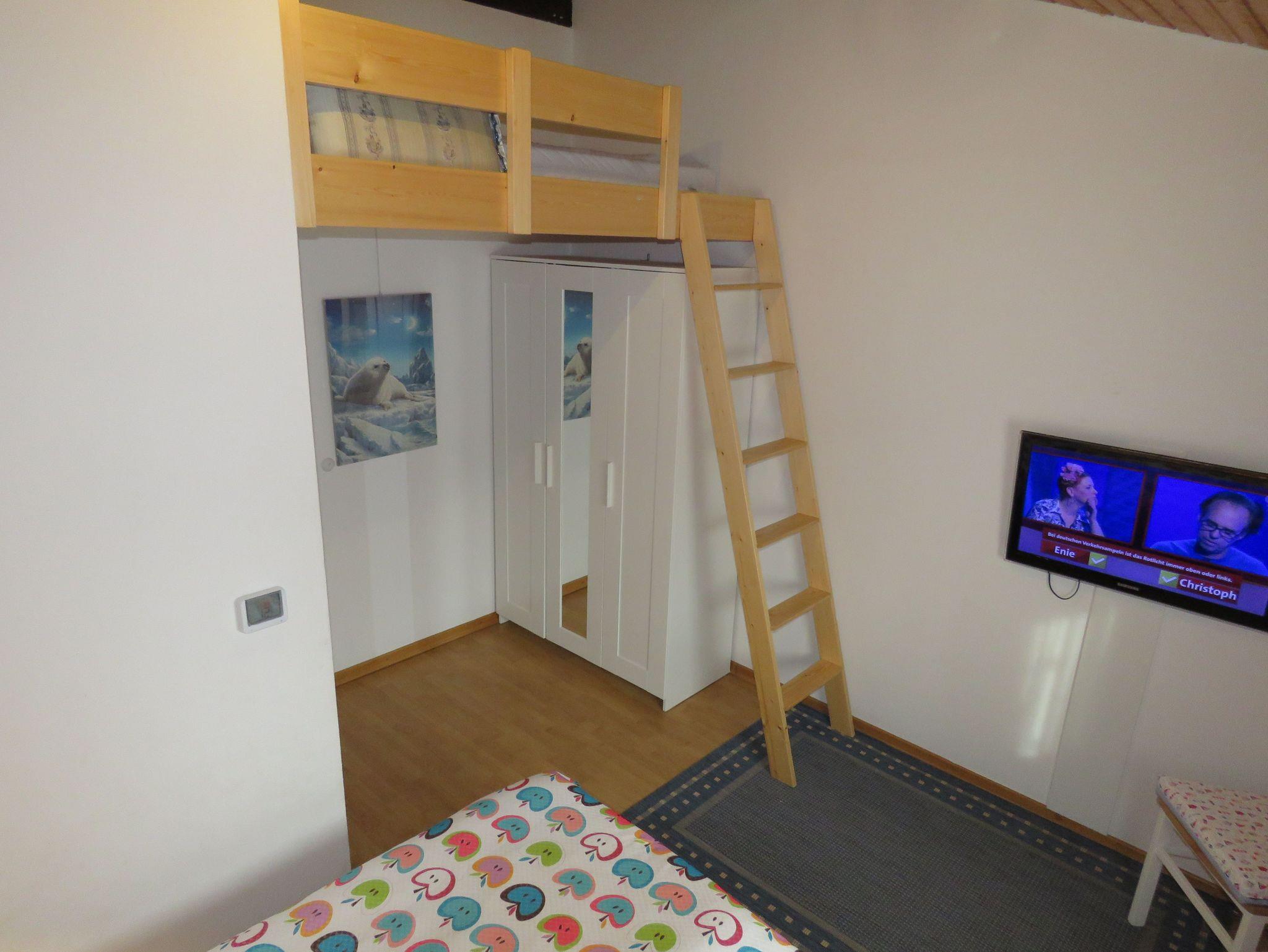 Vom Eingangsbereich (Flur) gelangt man in das Badzimmer (Dusche/WC) und den Wohnraum (Zugang zur möblierten Terrasse und dem außenliegenden Abstellraum. Das Ferienhaus bietet Ihnen einen Schlafraum mit einem Doppelbett, einen Schlafraum mit einem eingebauten Hochbett und 2 Einzelbetten, ein Badezimmer (Dusche/WC), ein geräumiges Wohnzimmer mit offener Küche (4-Plattenherd/ Backofen, Kühlschrank/Gefrierfach) und Essplatz. Zugang zur möblierten Terrasse vom Wohnzimmer. Nichtraucherhaus - kostenloses WLAN - Haustiere nicht erlaubt - Brötchenservice von Ostern bis Oktober!