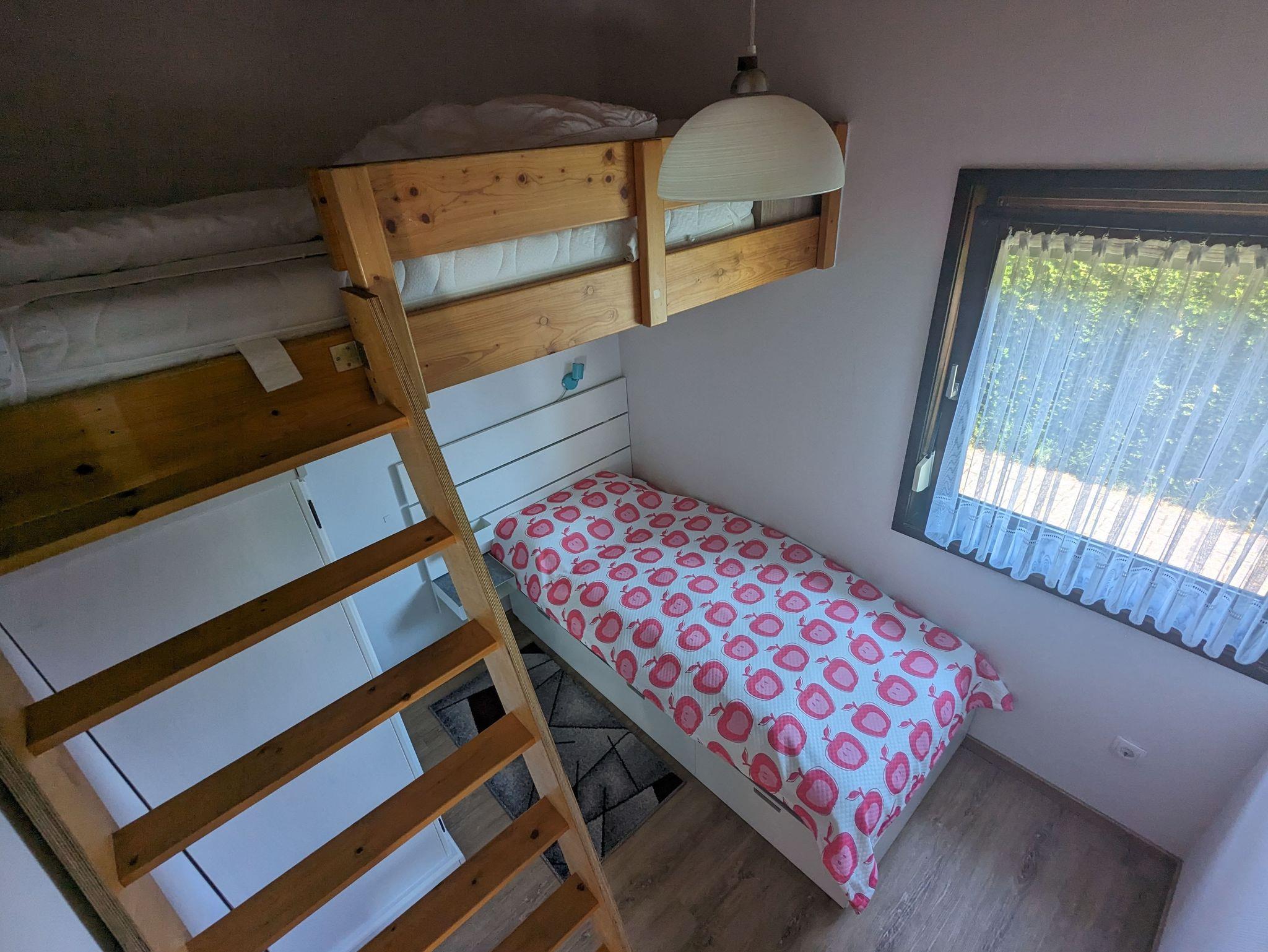 Unser gemütliches, ebenerdiges Ferienhaus 71, vom Typ Scout 48, bietet Ihnen eine Wohn-/Nutzfläche von ca. 48 m² und kann mit bis zu 4 Personen (+ 1 Kleinkind im Kinderreisebett) belegt werden. Das Haus verfügt über einen Schlafraum mit zwei Einzelbetten, einen Schlafraum mit einem Einzelbett und einem eingebauten Hochbett, ein Badezimmer (Dusche/WC), einen außenliegenden Abstellraum und ein Wohnzimmer mit angrenzender Küche (Ceran-Kochfeld/Backofen, Kühlschrank/Gefrierfach und Spülmaschine) mit Essplatz. Zugang zur möblierten Terrasse vom Wohnzimmer. Nichtraucherhaus - kostenloses WLAN - Haustiere erlaubt - Brötchenservice von Ostern bis Oktober!