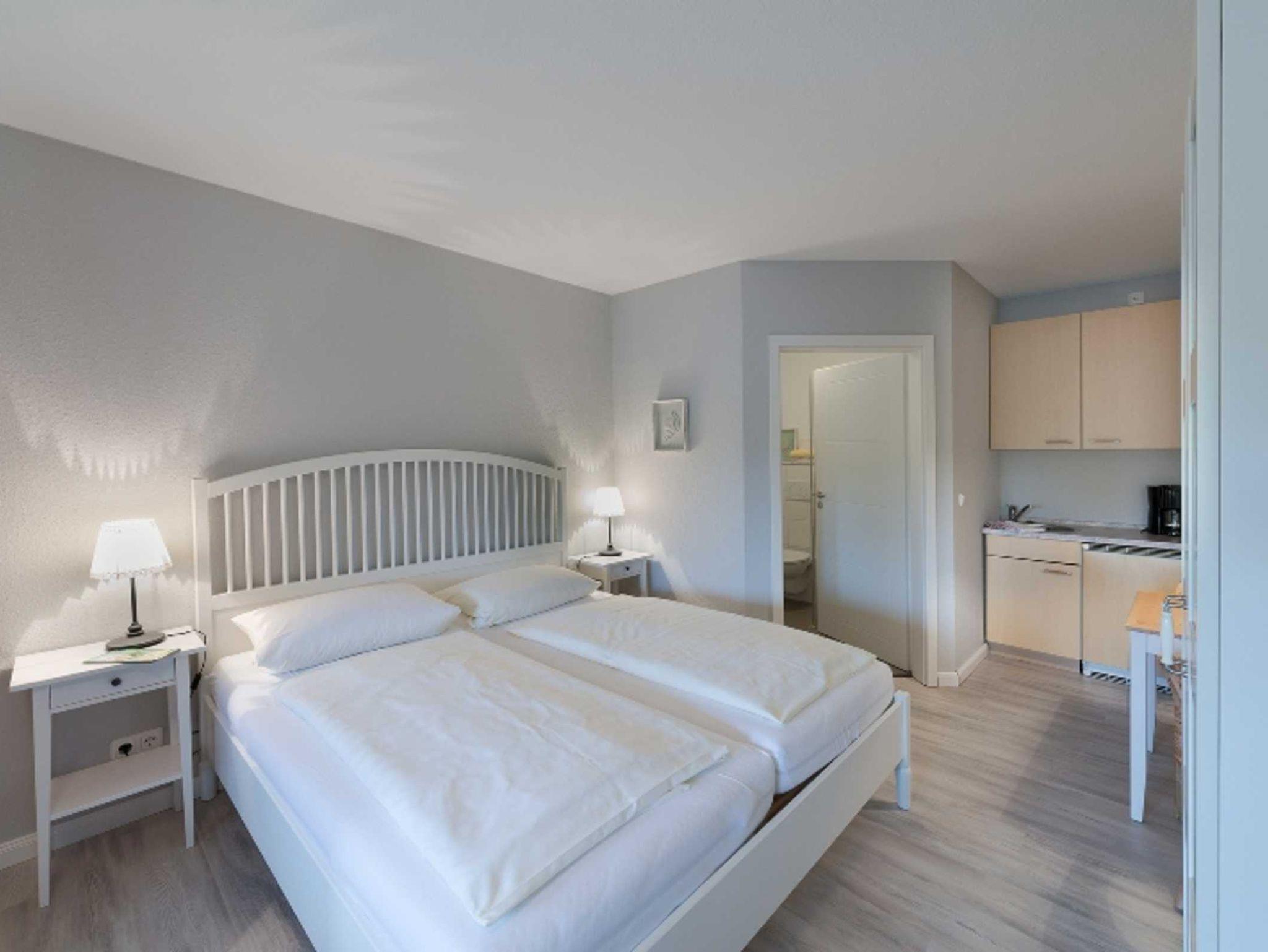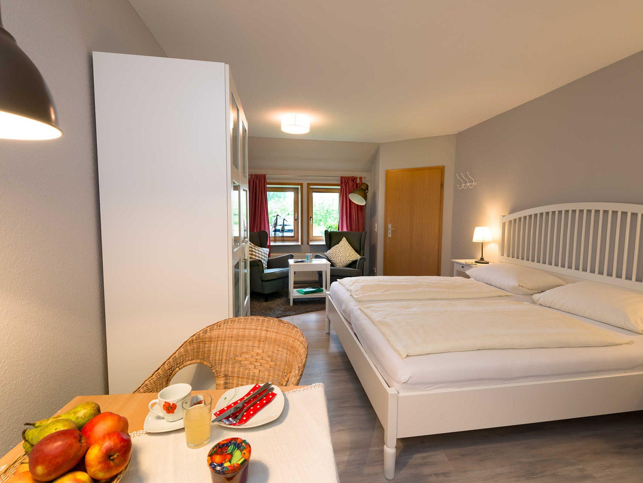 Die 25qm großen Appartements (geeignet für 2 Personen) wurden im April 2016 renoviert und liegen im Parterre des 300 Jahre alten Fachwerkbauernhauses. Sie verfügen über ein Wohn-Schlafzimmer mit Doppelbett, einer Sitzecke mit Sessel und TV, einer Kochnische und einem separaten Bad mit Dusche und WC. Hunde auf Anfrage.