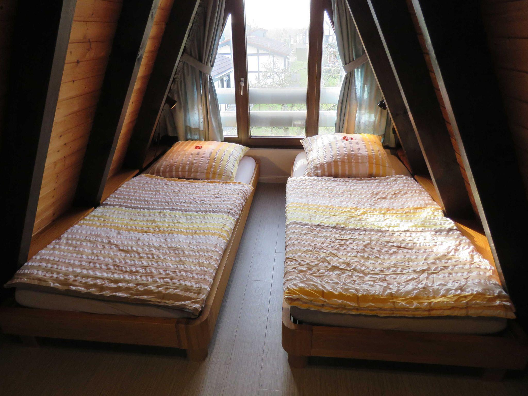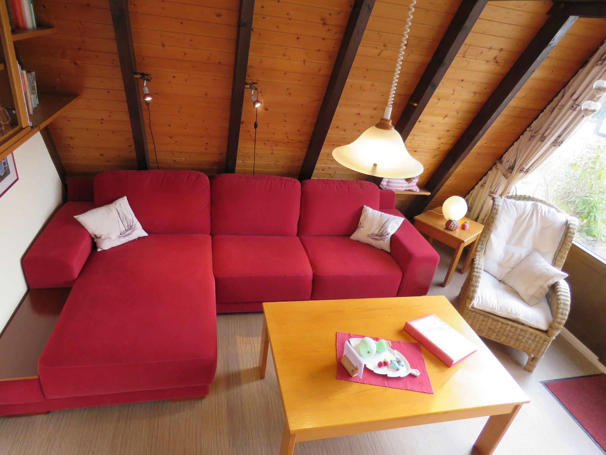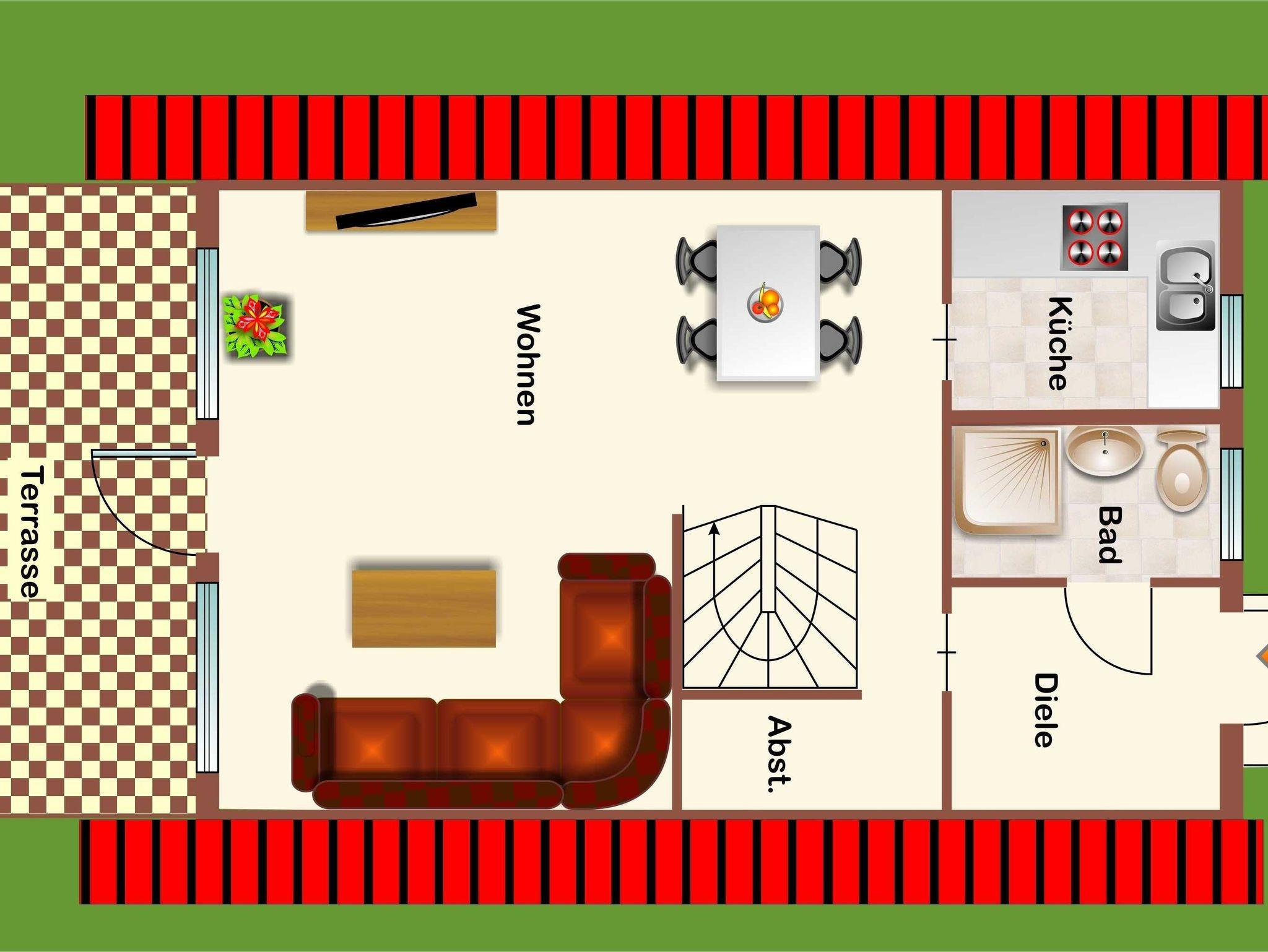 Unser Nurdachhaus 22, Typ Wigwam, verfügt über ca. 53 m² Wohn-/Nutzfläche und kann mit bis zu 4 Personen belegt werden. Im Erdgeschoss befinden sich das Badezimmer (Dusche/WC), eine kleine Abstellfläche (Abseite hinter der Treppe) und der Wohnraum mit Essplatz und Durchgang zur Küche (4-Plattenherd, Kühlschrank/Gefrierfach). Zugang zur möblierten Terrasse vom Wohnzimmer. Im Obergeschoss (über eine steile, offene, angewendelte Treppe erreichbar) befinden sich 2 Schlafräume mit jeweils zwei Einzelbetten. Nichtraucherhaus - kostenloses WLAN - Haustiere nicht erlaubt - Brötchenservice von Ostern bis Oktober!