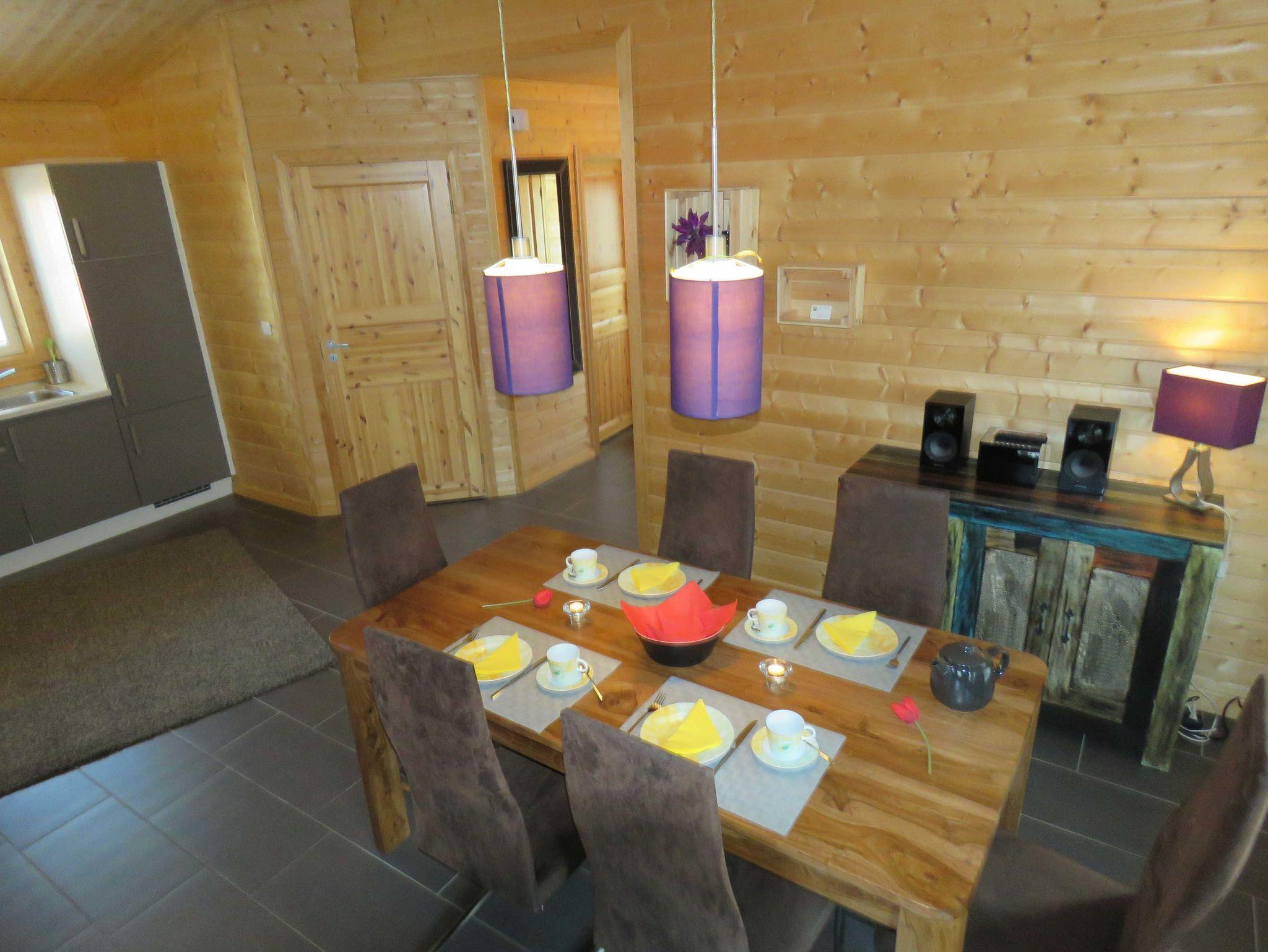 Das ebenerdige Premiumhaus 5, Nordland, wurde im Jahr 2014 im finnischen Stil, in kompletter Holzbauweise, erbaut Es verfügt über ca. 60 m² Wohn-/Nutzfläche und kann mit bis zu 4 Personen (+1 Kleinkind im Kinderreisebett) belegt werden. Der hochwertig eingerichtete Wohnraum verfügt über eine gemütliche Sitzecke und Essplatz mit integrierter Küche (Ceran-Kochfeld, Backofen, Kühlschrank, Spülmaschine). Das Badezimmer ist mit einer ebenerdigen Dusche und WC ausgestattet. Das Haus verfügt über zwei Schlafräum mit jeweils einem Doppelbett, einen SAT-Fernsehanschluss (abweichend von den übrigen Ferienhäusern im Feriendorf) sowie einen kostenfreien WLAN-Anschluss. Ein Abstellraum (mit kleinem Gefrierschrank) befindet sich innerhalb des Hauses. Der Hauseingang und die möblierte Terrasse sind überdacht. Nichtraucherhaus - Haustiere erlaubt - Brötchenservice von Ostern bis Oktober!