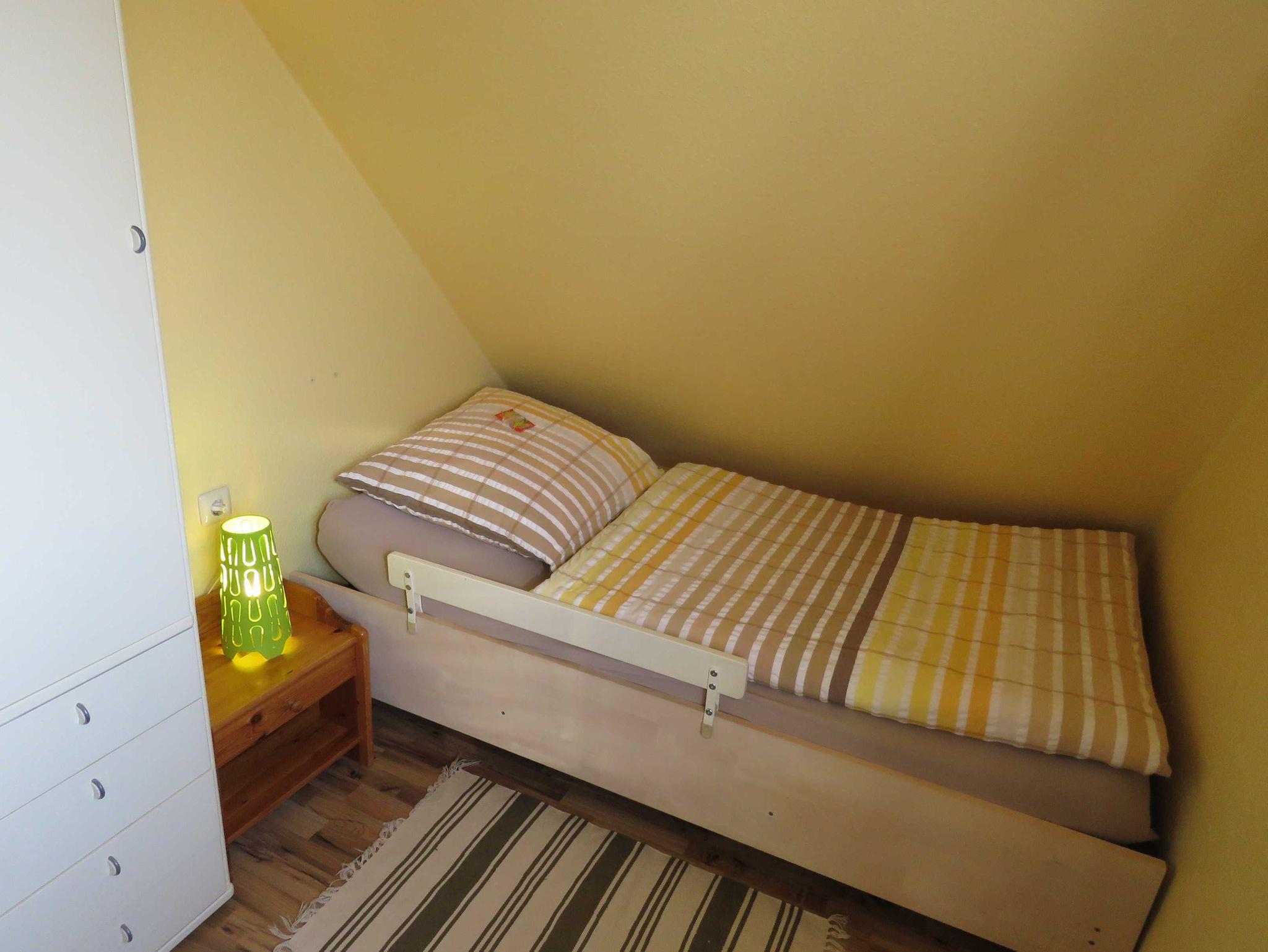 Das massiv errichtete Ferienhaus 122, vom Typ Scout 60, verfügt über ca. 60 m² Wohn-/Nutzfläche auf 2 Etagen und kann mit bis zu 5 Personen (+ 1 Kleinkind im Kinderbett) belegt werden. Im Erdgeschoss befindet sich das Badezimmer (Dusche/WC), das Wohnzimmer (mit Kojenbett) mit angrenzender offener Küche mit Essplatz (Ceran-Kochfeld/Backofen - Kühlschrank/Gefrierfach, Mikrowelle und Spülmaschine). Zugang zur möblierten Terrasse vom Wohnzimmer. Über die offene Treppe im Wohnbereich gelangt man zu den beiden Schlafräumen (ein Schlafraum mit einem Doppelbett und einem Kinderbett und ein Schafraum mit zwei Einzelbetten) im Obergeschoss. Das zum Haus gehörende Gartenhäuschen bietet Abstellmöglichkeit für Fahrräder etc. Nichtraucherhaus - kostenloses WLAN - Haustiere erlaubt - Brötchenservice von Ostern bis Oktober!