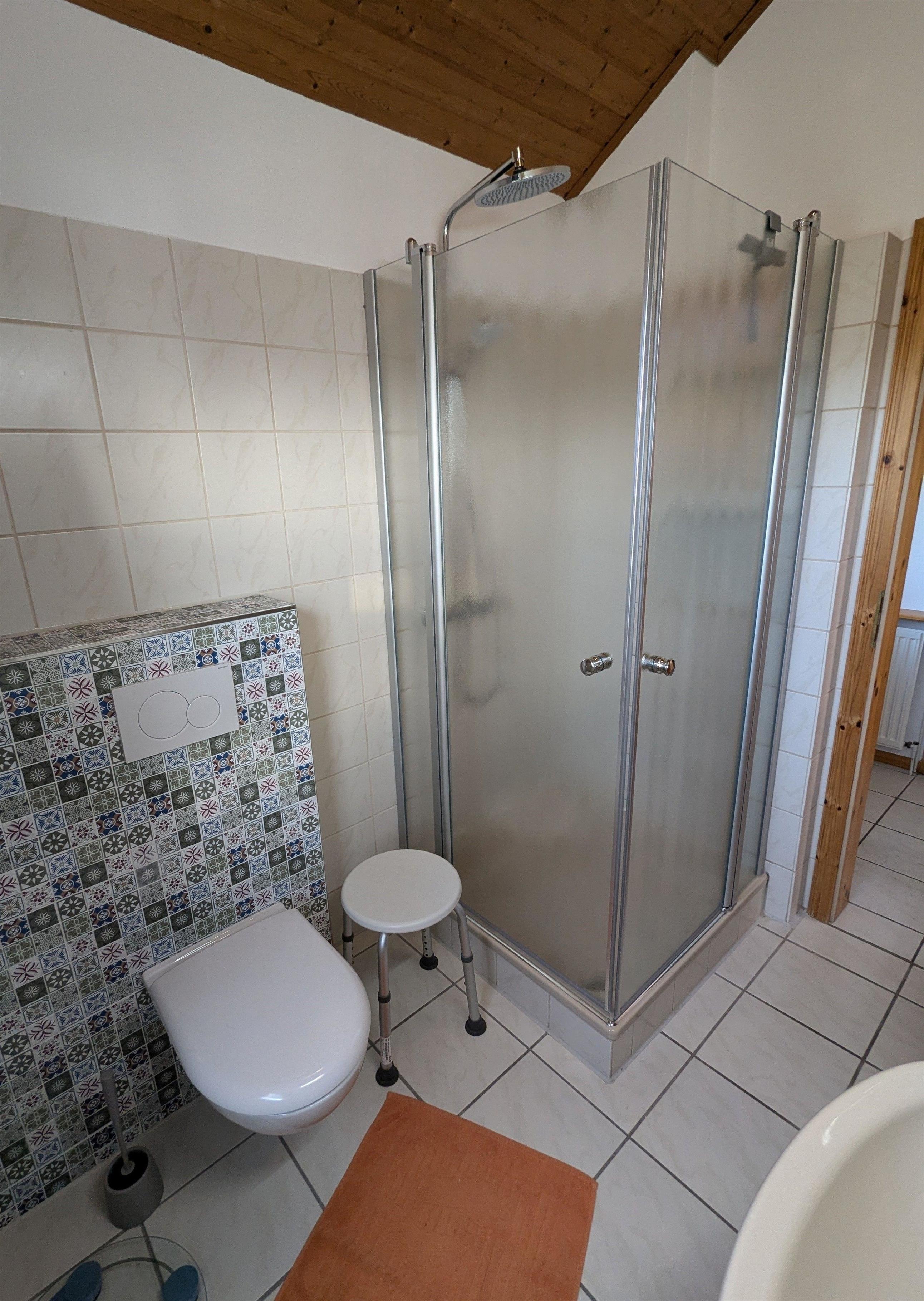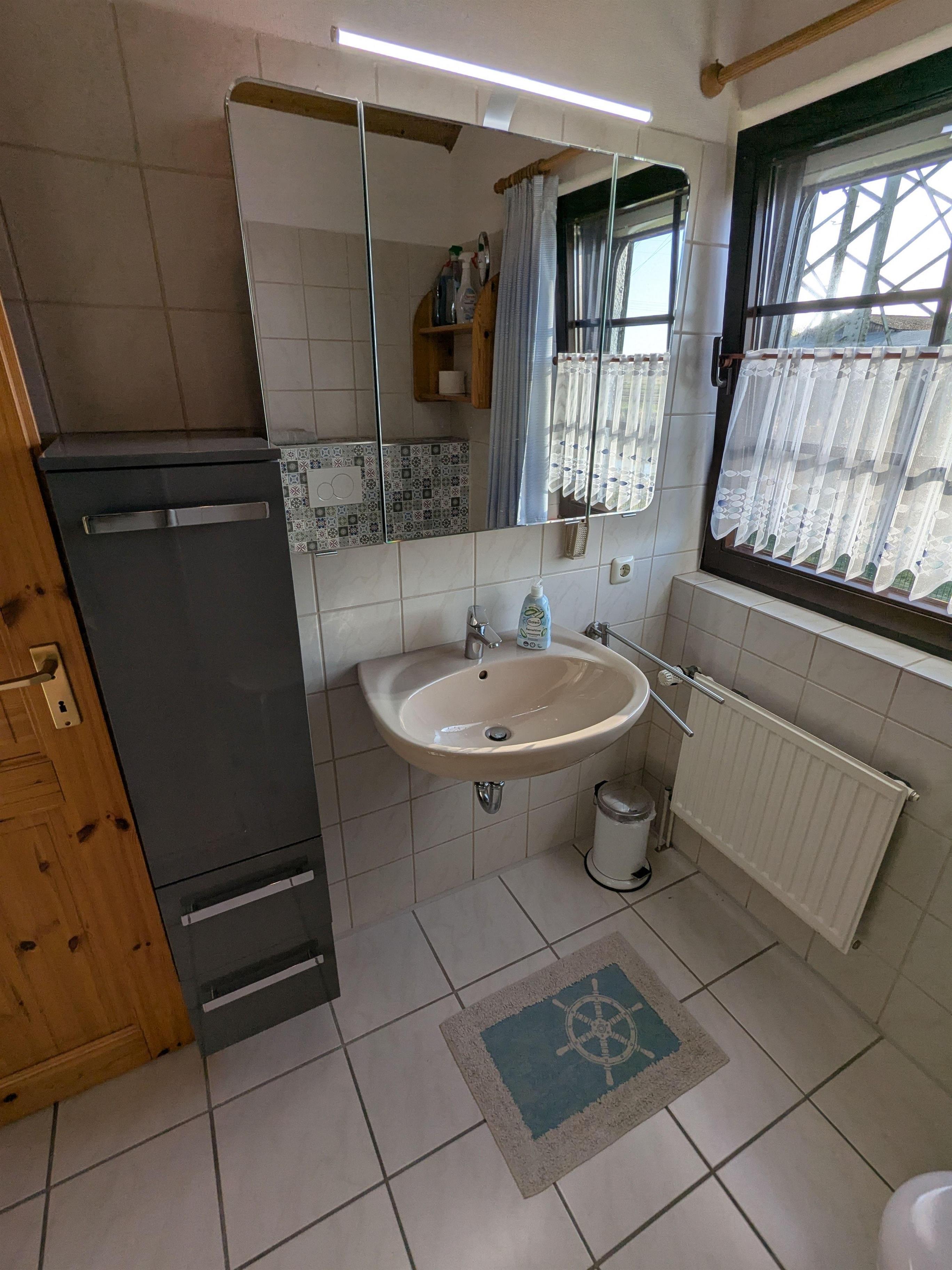 Vom Flur gelangen Sie auch in das modernisierte Badezimmer mit (Regen-)Dusche.