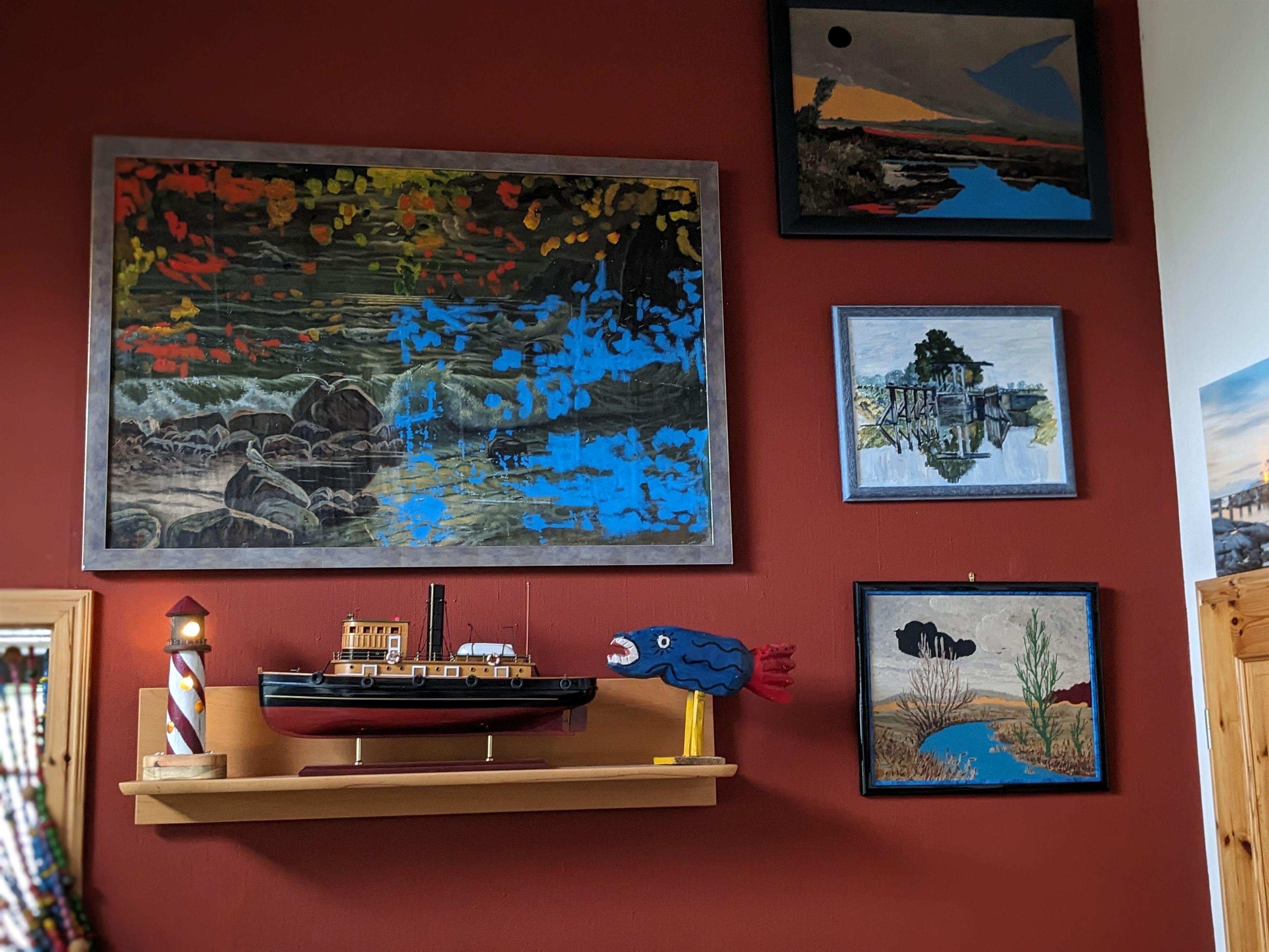 Die Räume sind mit maritimer Kunst und Dekoration gestaltet.