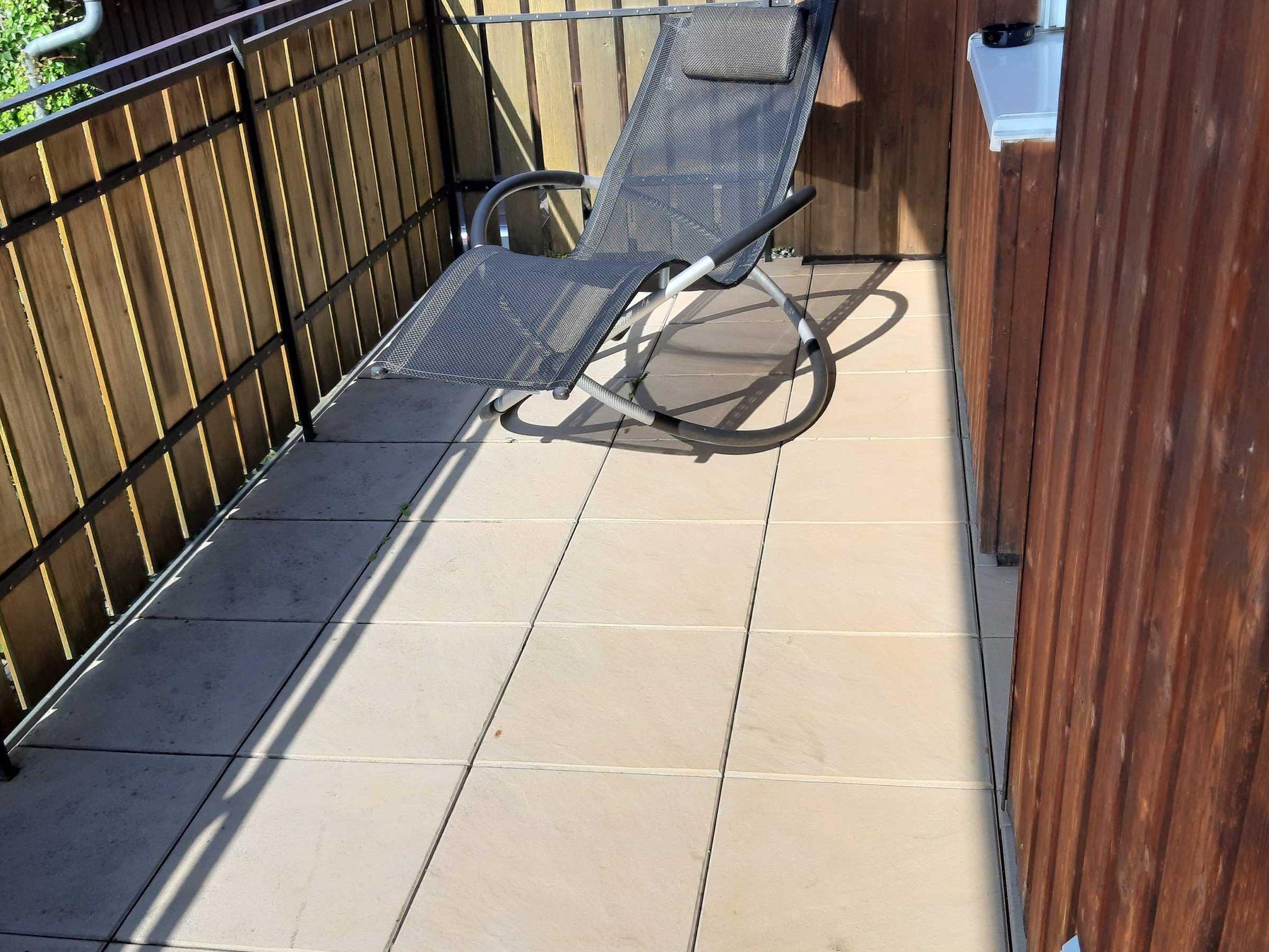 Zur Wohnung zugehörig ist eine Terasse mit Grillmöglichkeit und einem Spielbereich für Kinder. Im Garten befinden sich unter anderem eine Schaukel und ein Sandkasten.