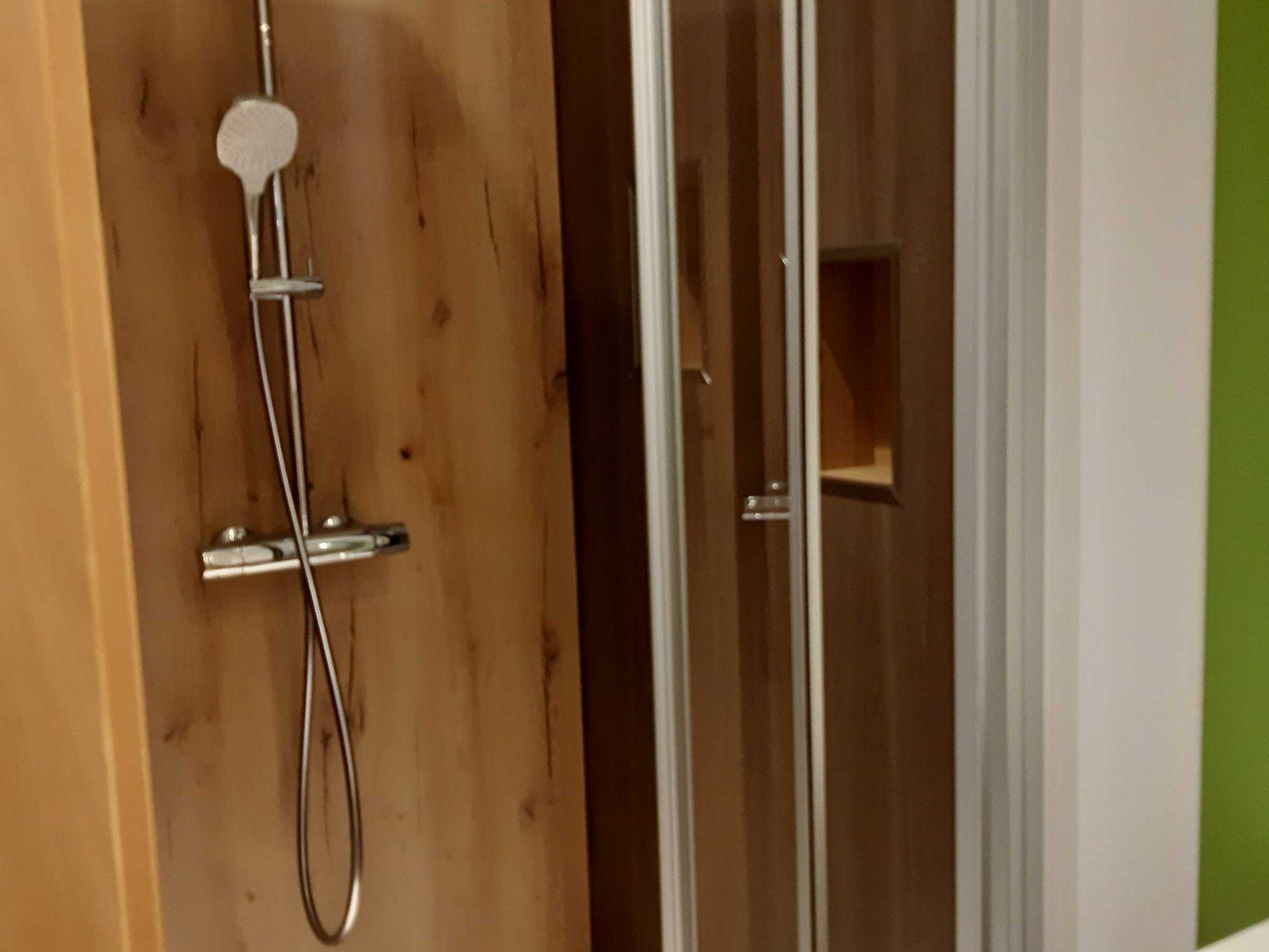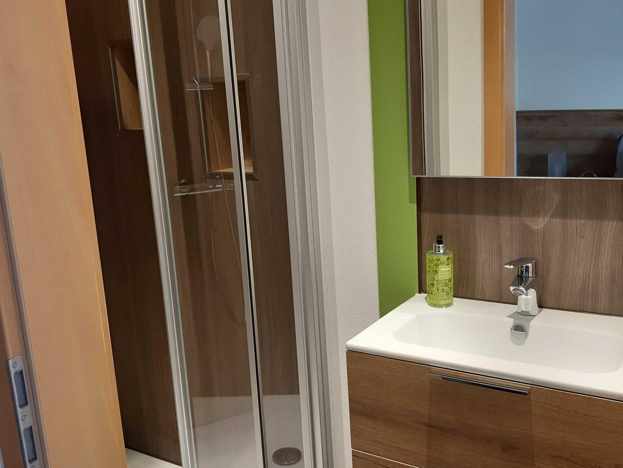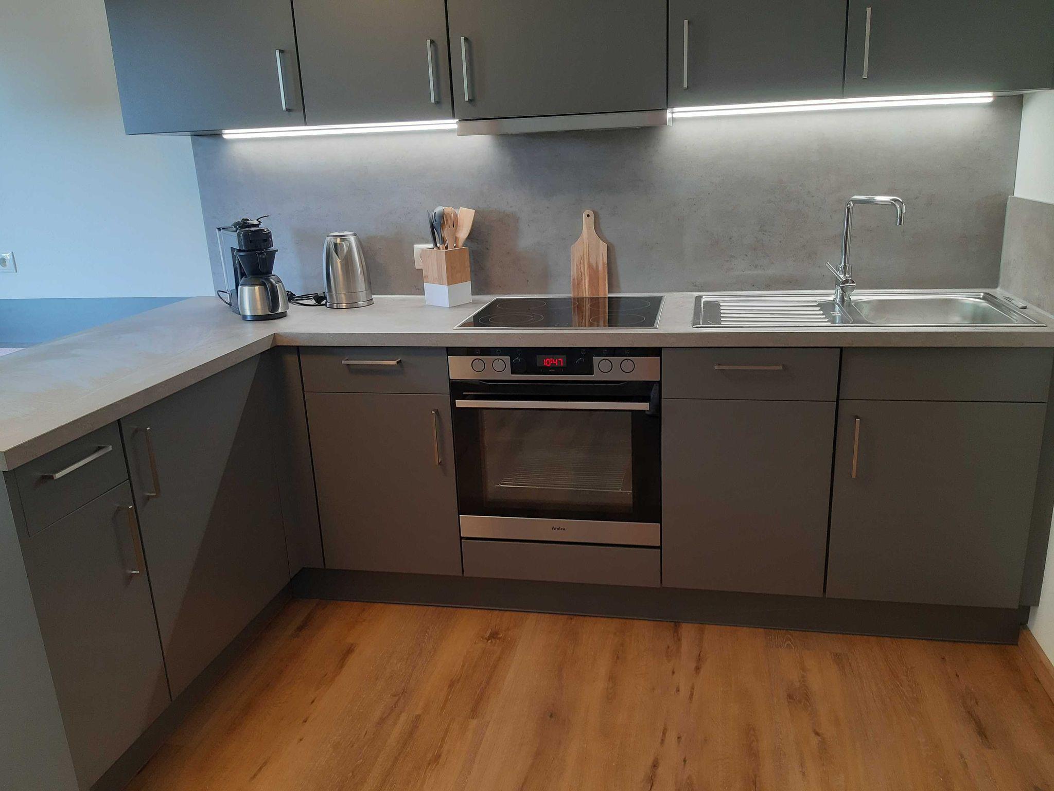 Wir bieten Ihnen ein gemütliches Schlafzimmer mit Doppelbett, integriertem Bad mit Dusche und einer voll ausgestatteten Küche mit Wohnbereich.