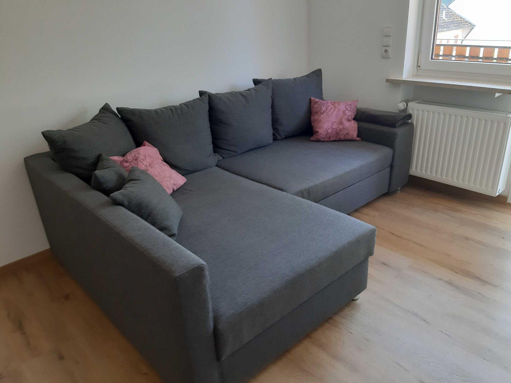 Im Wohnzimmer kann die Couch bei Bedarf zusätzlich als Schlafcouch genutzt werden. Ideal ist die Wohnung daher für 2 Personen ausgestattet, kann aber bei Bedarf auch von 3 Erwachsenen genutzt werden.