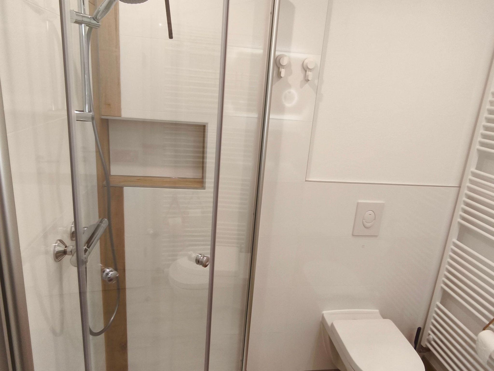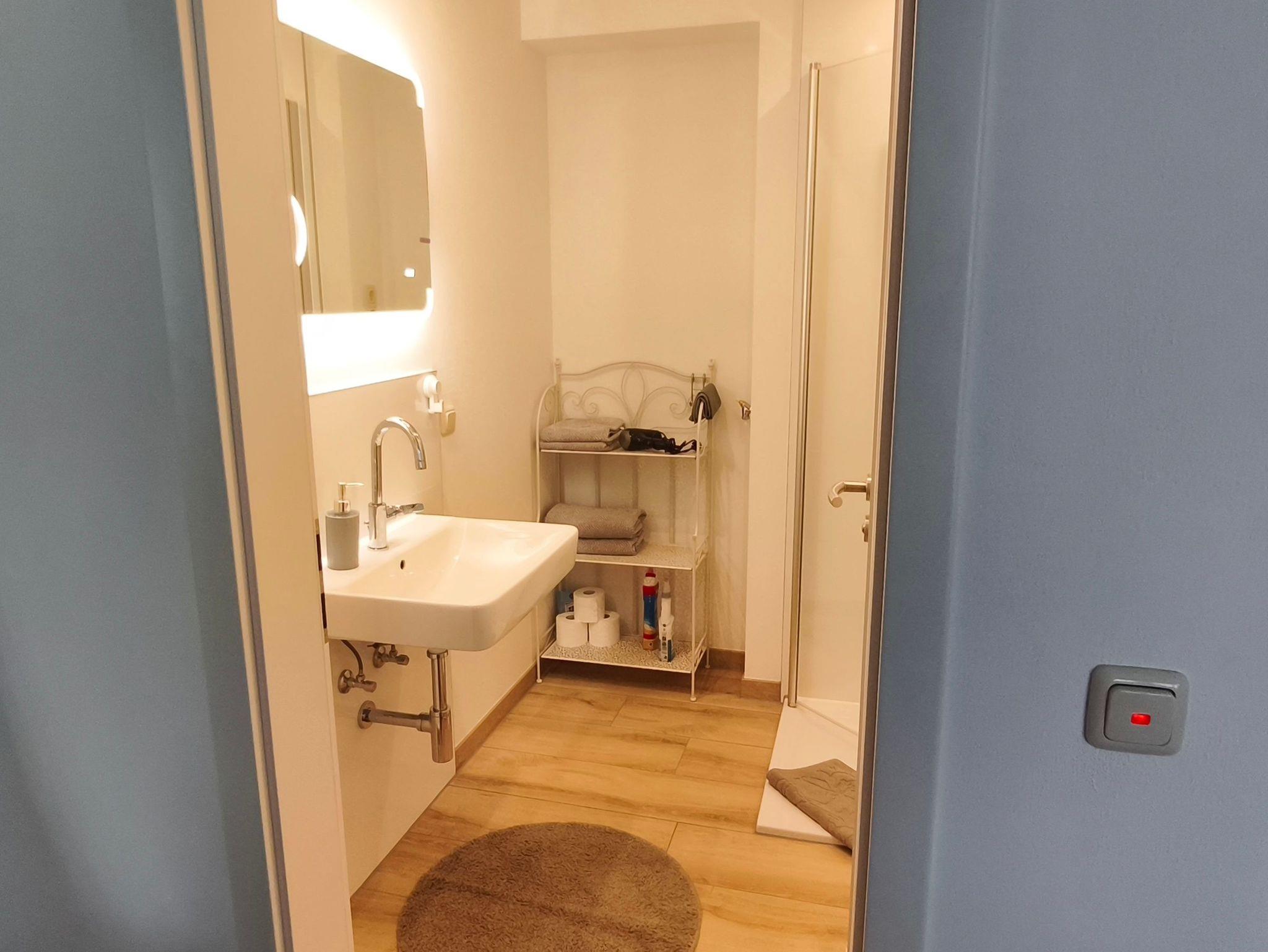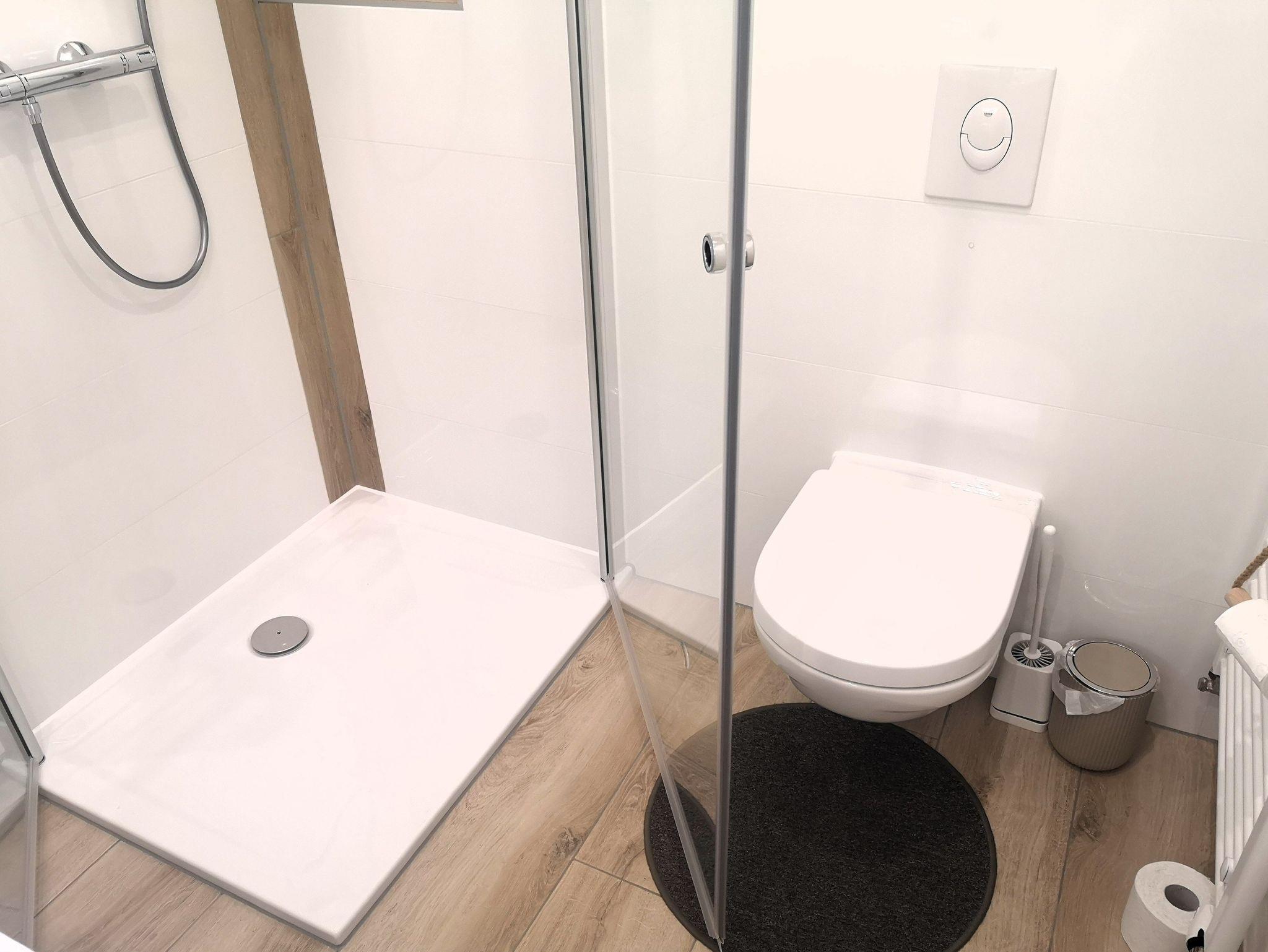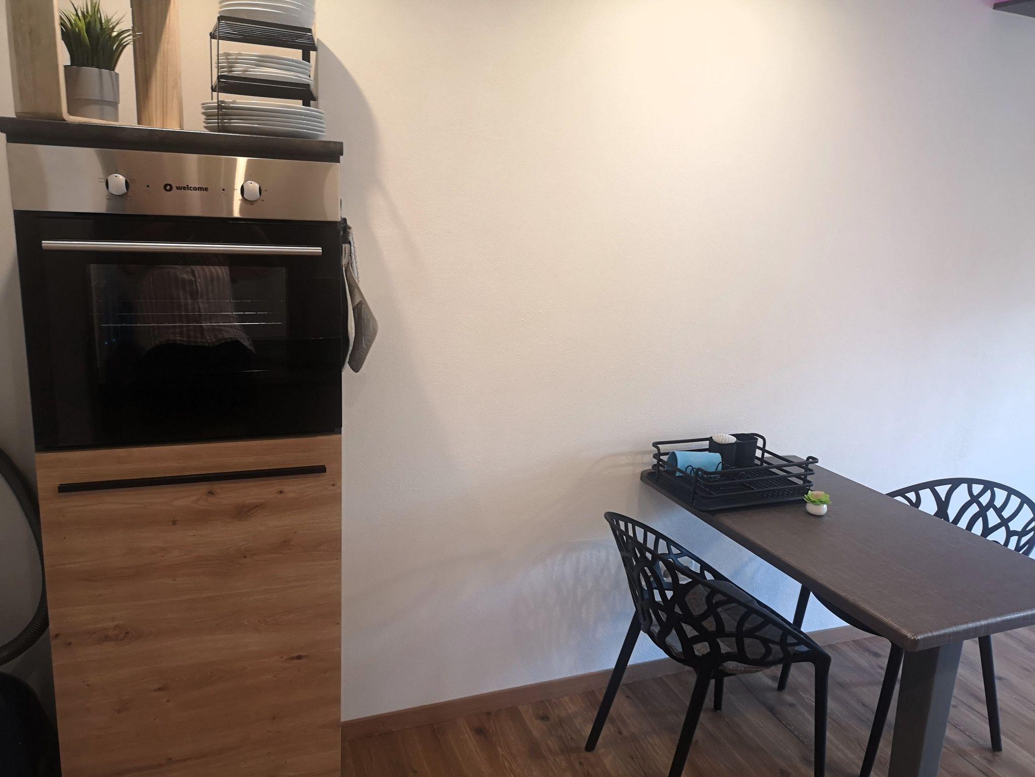 Die Küche ist mit allem was man braucht ausgestattet. Kühlschrank mit Gefrierfach, Ceranfeld und Backofen, Spülmaschine, Kaffeemaschine, Toaster und ein Wasserkocher. Das moderne Bad, verfügt über eine bodenebene Dusche, Waschbecken mit Schminkspiegel, WC und Föhn. Die Wohnung ist ideal für 2 Erwachsene oder 2 Erwachsene mit 1 Kleinkind (das noch im Reisebett schlafen kann).