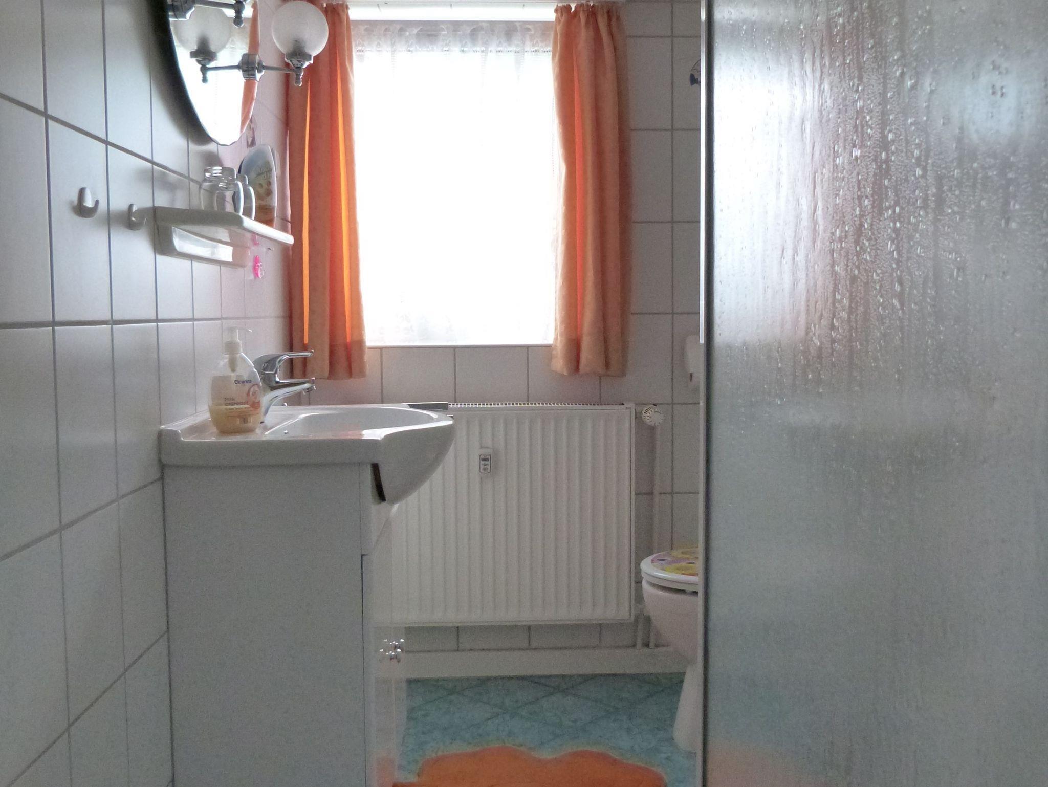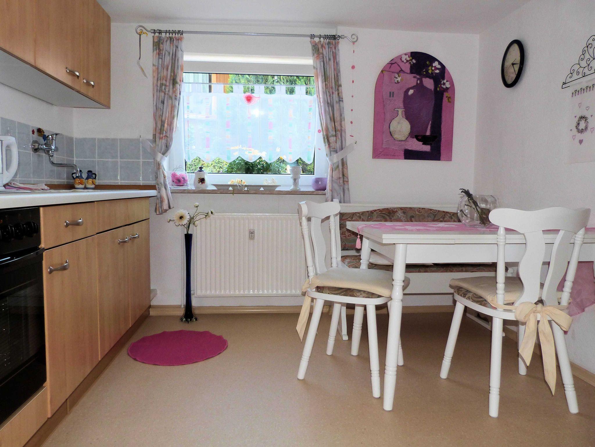 Schöne, helle, komplett eingerichtete Nichtraucher Ferienwohnung (60qm) mit separatem ebenerdigen Eingang. Für gehbehinderte Personen gut geeignet. Schlafzimmer mit Doppelbett, Wohnzimmer mit TV, Einbauküche mit Essecke, DU/WC, KFZ-Stellplatz, Liegewiese, Schaukel, überdachteTerrasse mit Raucherbereich, Grill. Inkl. Bettwäsche u. Handtücher. Kinderbett kann auf Wunsch bereit gestellt werden. Bahn/Busverbindung vorhanden. Wir würden uns freuen Sie als Gäste begrüßen zu dürfen.