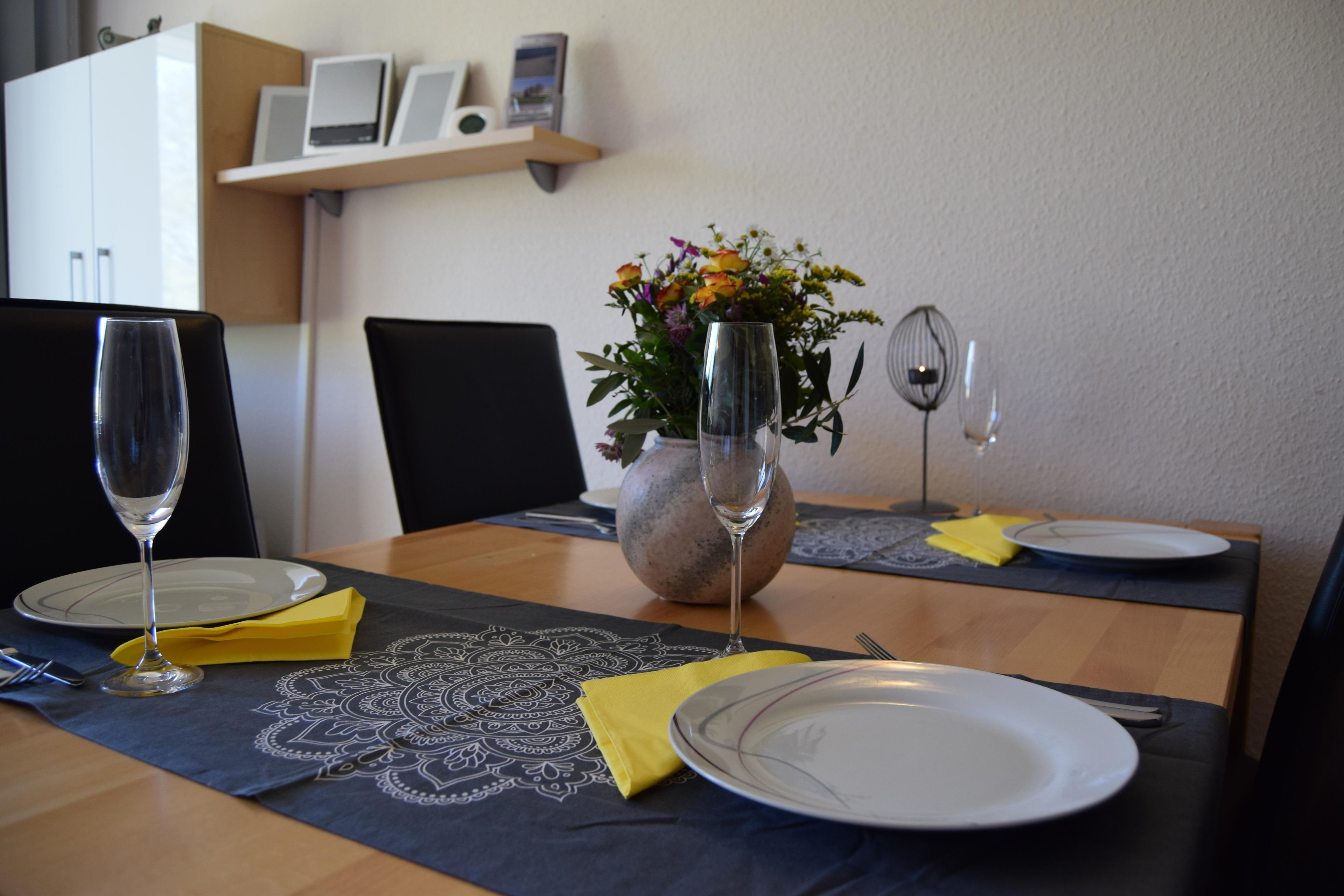 Der kombinierte Wohn-/Schlafraum hat die beschriebene Schlafcouch, einen grossen Esstisch mit 4 Stühlen sowie einen gemütlichen Sessel zum Entspannen und Zentralheizung. Bei dem großen LCD-TV mit 32 Zoll Bildschirmdiagonale haben Sie die Möglichkeit Streamingdienste wie Netflix, Amazon Prime, WOW etc. zu empfangen (entsprechendes Abo vorausgesetzt). Über den Fernseher haben Sie auch die Möglichkeit bis zu 100000 Radiosender aus der ganzen Welt zu empfangen. Ins Internet gelangen Sie über das kostenlos im Appartement zur Verfügung gestellte WLAN.