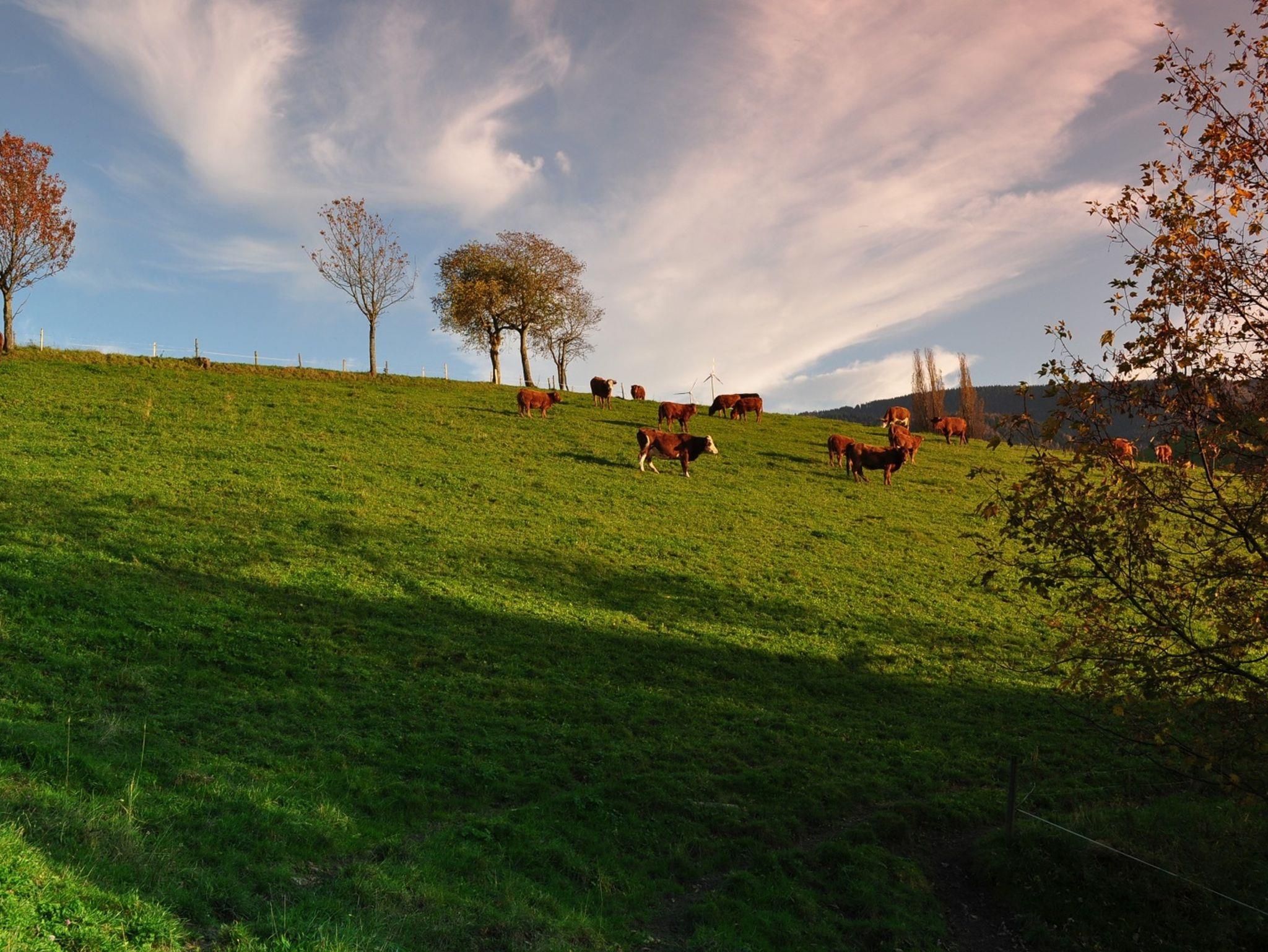 Der Hansmartihof, auf dem Land und Forstwirtschaft betrieben wird, befindet sich in einer wunderschönen Einzellage mit Blick auf die Rheinebene, die Vogesen und den Freiburger Hausberg Schauinsland. Die Hoffläche umfasst ca. 15ha. Davon sind 5 ha Waldfläche. Wir betreiben eine Sommerweide für einen benachbarten Milchviehbetrieb, der seine Kühe und Kälber von April bis November auf unseren Weiden hat. Für die Kinder ist es immer ein Riesen- Spaß das Leben mit den Tieren auf der Weide und im Streichelzoo live mitzuerleben. Der 50 m entfernte Ortskern mit verschiedenen Gasthöfen, Bauernmarkt und Bushaltestelle ist bequem zu Fuß zu erreichen. Es erwarten sie 2 im Jahre 2003 erbaute kinderfreundliche Ferienwohnungen, die auf 60- 70 m² Platz für 2-6 Personen bieten. Beide Wohnungen haben einen separaten Eingang und sind jeweils mit komplett eingerichteter Einbauküche (Mikrowelle, Spülmaschine usw.), Sat - TV, Radio, Telefon, DVD und Waschmaschine ausgestattet. In den Wohnungen sind Handtücher, Geschirrtücher und Bettwäsche vorhanden. Auf Wunsch kann ein Beistellbett bereitgestellt werden. Je nach Wohnung stehen Ihnen 2 Balkone oder eine große Erdterrasse jeweils mit Gartenmöbeln zur Verfügung. Weiterhin finden sie einen Grillplatz, sowie für die Kleinen einen Spielplatz mit Schaukel, Sandkasten und einem Fuhrpark.