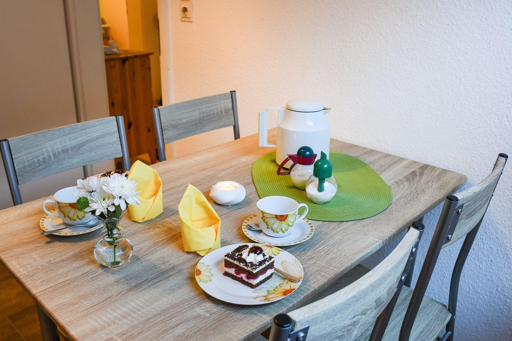 Sehr schön eingerichtet, Einbauküche mit allen elektr. Geräten, schönes ruhiges Schlafzimmer, modern und gemütlich eingerichtetes Wohnzimmer, neus Komfort Bad mit Whirlpool u.Dusche, zusätzliche Schlafgelegenheit können wir anbieten, ein kleines Kinder-Spielzimmer ist ebenso vorhanden,wie Kinderbett ein Hochstuhl und Spielsachen , Bettwäsche, Handtücher stellen wir kostenfrei zur Verfügung. Waschmaschine u. Trockner können geg. Gebühr benutzt werden. Eine Wohnung um sich rundum wohlzufühlen.