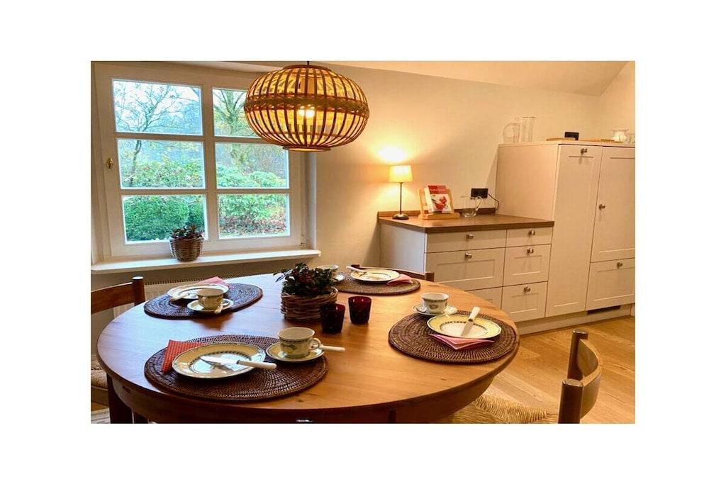 Det kærligt renoverede sommerhus ved søen har trævinduer, naturtrægulve og travertingulv i gangen, stuen og køkkenet. En pejs i stuen med gratis brænde gør det hyggeligt selv i de koldere måneder. Herfra er der adgang til den store terrasse, hvor I kan sidde og slappe af i solen. Det nye, fuldt udstyrede køkken inviterer jer til at lave mad sammen og tilbyder et spisebord med udsigt over den store have. Det lille soveværelse i stueetagen har en komfortabel udtræksseng med boxmadras (160 x 2 m). Gæstetoilettet er også placeret i gangen. Det store soveværelse på første sal er møbleret med en dobbeltseng (180 x 2 m), et klædeskab og et tv. Badeværelset har badekar og bruser.