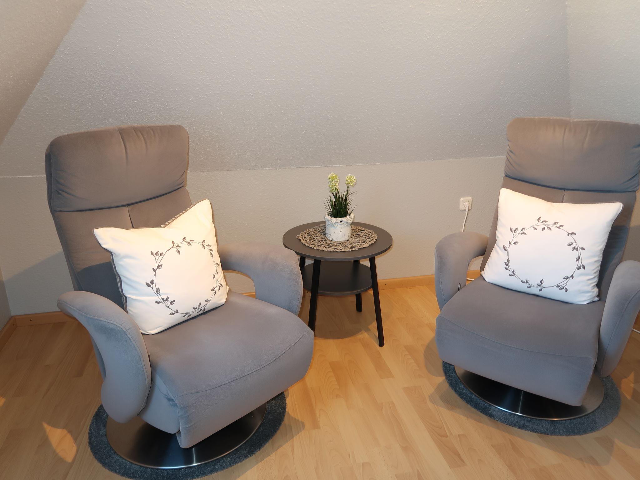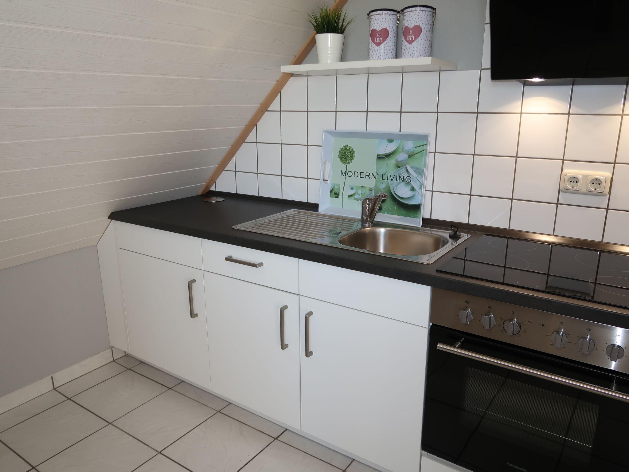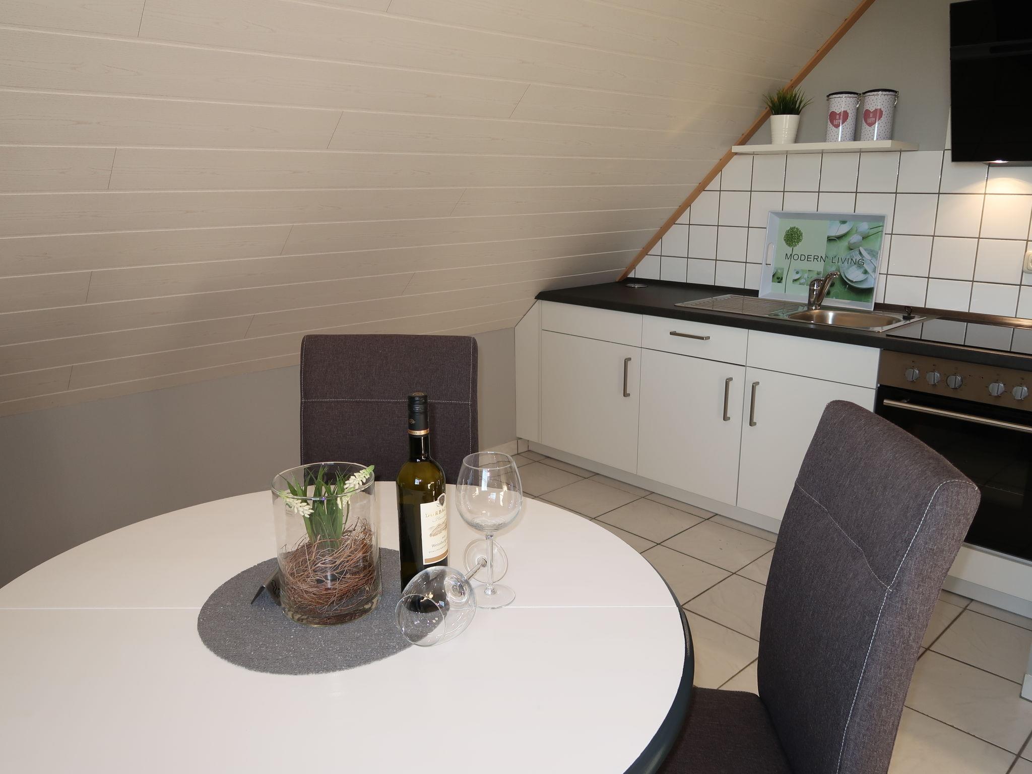 3-room apartment 50 m2 on 2 levels on 1st floor. Renovated in 2019: upper floor: 1 room with sloping ceilings with 1 double bed. Open kitchen (oven, 4 ceramic glass hob hotplates, toaster, kettle, electric coffee machine) with dining table and satellite TV (flat screen), DVD. Shower/WC. Top floor: small living room with sloping ceilings with satellite TV (flat screen). Facilities: Internet (WiFi, free). Please note: non-smokers only. Smoke alarm.