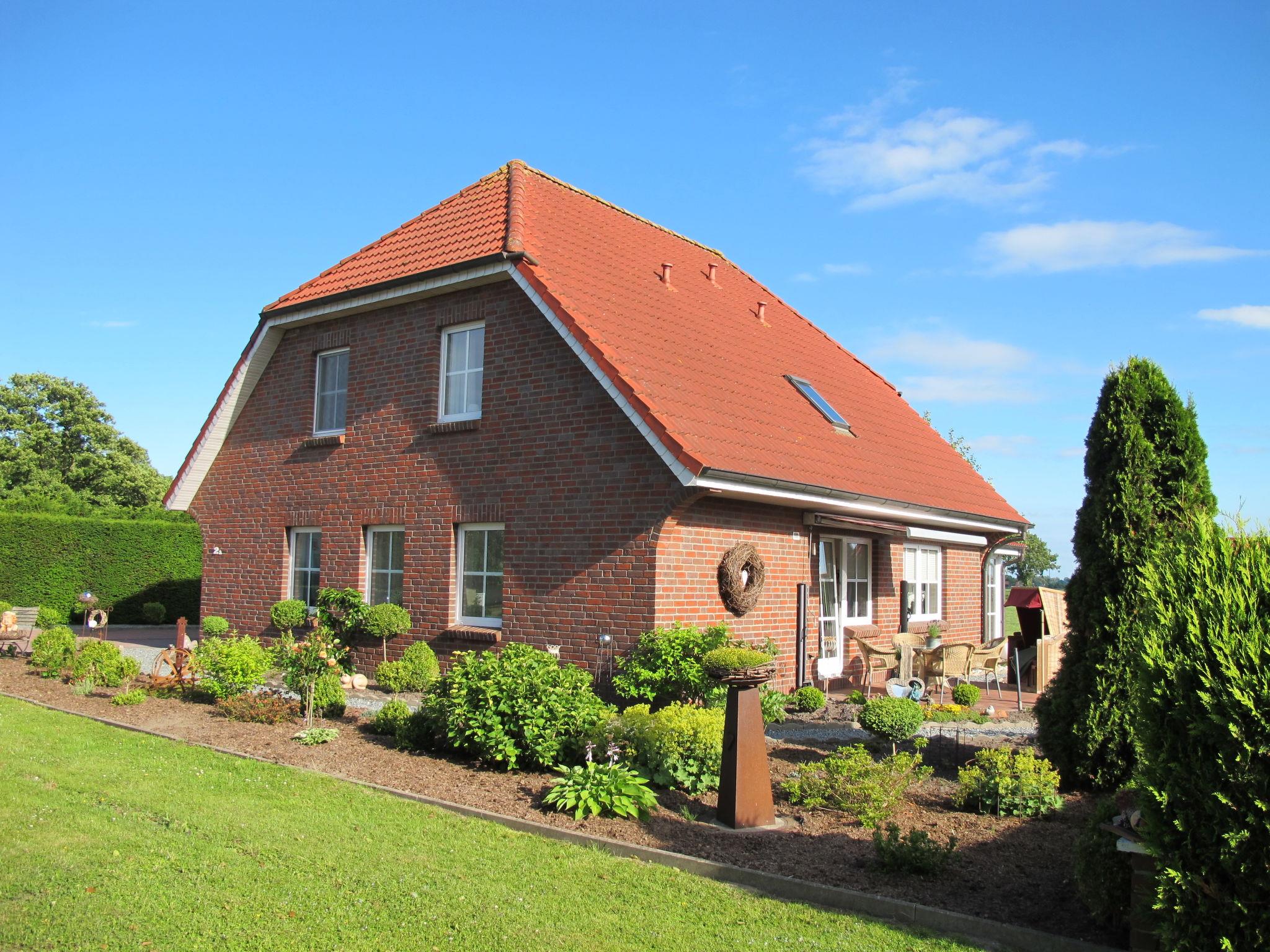 Wiarden 6 km from Horumersiel: 2-family house "Rosenboom". On the outskirts, 24 km from the centre of Wilhelmshaven, 6 km from the sea, 8 km from the lake. Private: property 700 m2 (fenced), well-kept garden with lawn and wildlife garden. Terrace, garden furniture, barbecue. In the house: storage room for bicycles, central heating system. Parking at the house. Supermarket 3 km, bus stop 100 m, railway station "Jever" 16 km, sandy beach "Hooksiel" 6 km, grass beach "Horumersiel" 6 km, outdoor swimming pool 6 km, indoor swimming pool 6 km. Marina 6 km. Storage room for bicycles is lockable.