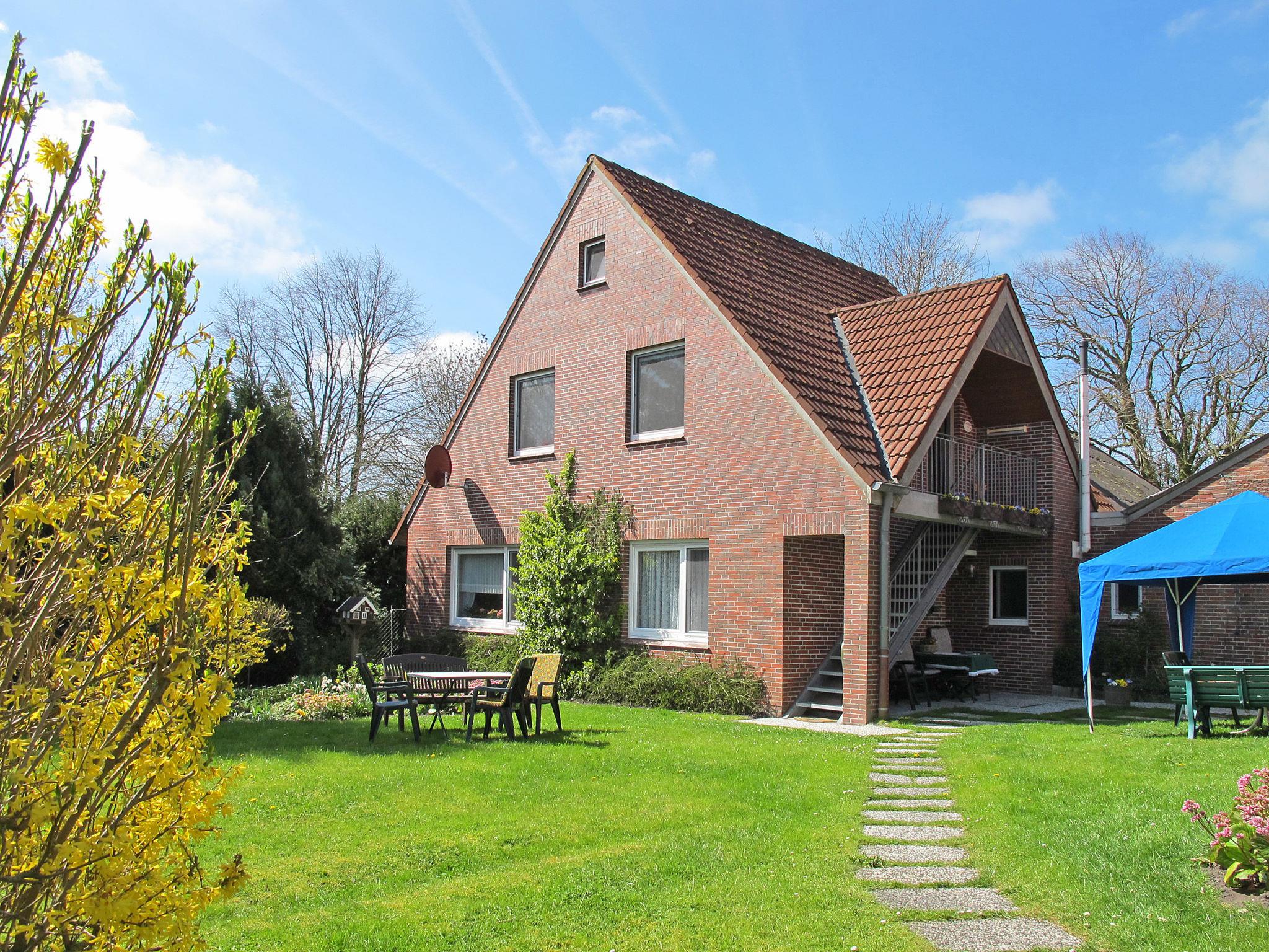 2-family house "Harms". 4.5 km from the centre of Horumersiel, on the outskirts, 6 km from the centre of Hooksiel, in a secluded position, 3 km from the sea, in the countryside. For shared use: property, well-kept garden with lawn and plants. Patio, pergola, garden furniture, barbecue. Private: table tennis (slide, swing, sandbox). In the house: central heating system, washing machine, tumble dryer (for shared use, extra), bicycle rental. Parking (for 2 cars) at the house. Supermarket 4.5 km, bus stop 400 m, railway station "Wilhelmshaven" 23 km, sandy beach 5 km, park "Horumersiel" 5 km, outdoor swimming pool 4.5 km, indoor swimming pool 4.5 km. Marina 5 km, golf course (18 hole) 25 km. Please note: suitable for families.