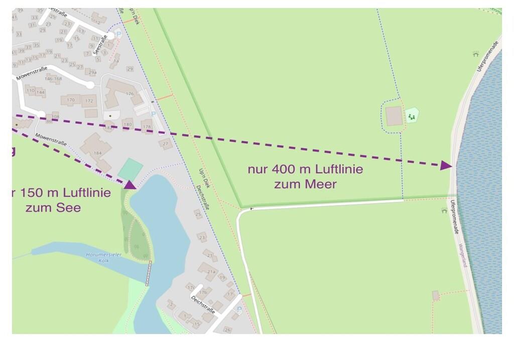 Gemütliche, schön eingerichtete Wohnung mit einem Schlafzimmer, Wohnzimmer mit Essecke und Schlafcouch sowie Duschbad. Alles wurde 2021 komplett erneuert. Schöne Terrasse mit Blick auf eine riesige Wiese. Sonnenschirm und Grill stehen Ihnen bereit. Umfangreiche Ausstattung mit WLAN, Fernseher, Backofen, Ceranfeld, Spülmaschine, Kaffeemaschine, Kühlschrank inkl. Gefrierfach, Toaster, etc. Die Wohnung liegt im Erdgeschoss im Nordsee-Heilbad Horumersiel. Das Meer ist nur 400 m (Luftlinie) entfernt. Fußläufig erreichen Sie die Dorfmitte Horumersiel nach etwa 1,2 km, hier gibt es mehrere Restaurants und Eis(cafés). Das Strandbad Schillig ist fußläufig ca. 2 km entfernt. Zum großen Edeka-Markt sind es etwa 1,5 km. Ein PKW-Stellplatz befindet sich direkt vor der Haustür. Abstellraum für mitgebrachte Räder ist auch vorhanden.