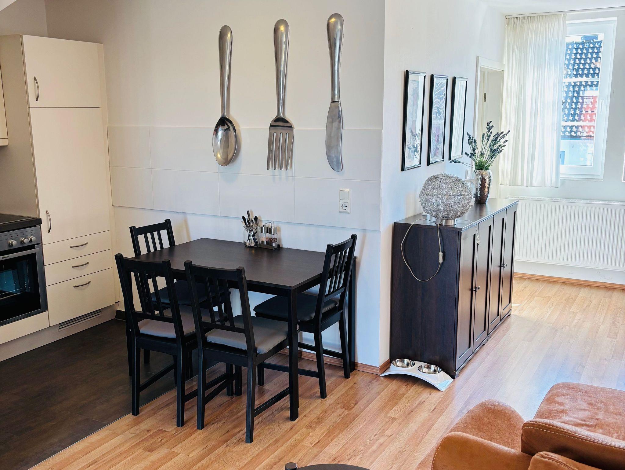 Weitere Annehmlichkeiten Ein separates Gäste-WC ist bequem vom Wohnzimmer aus zugänglich. Die gesamte Wohnung ist mit kostenfreiem WLAN ausgestattet.