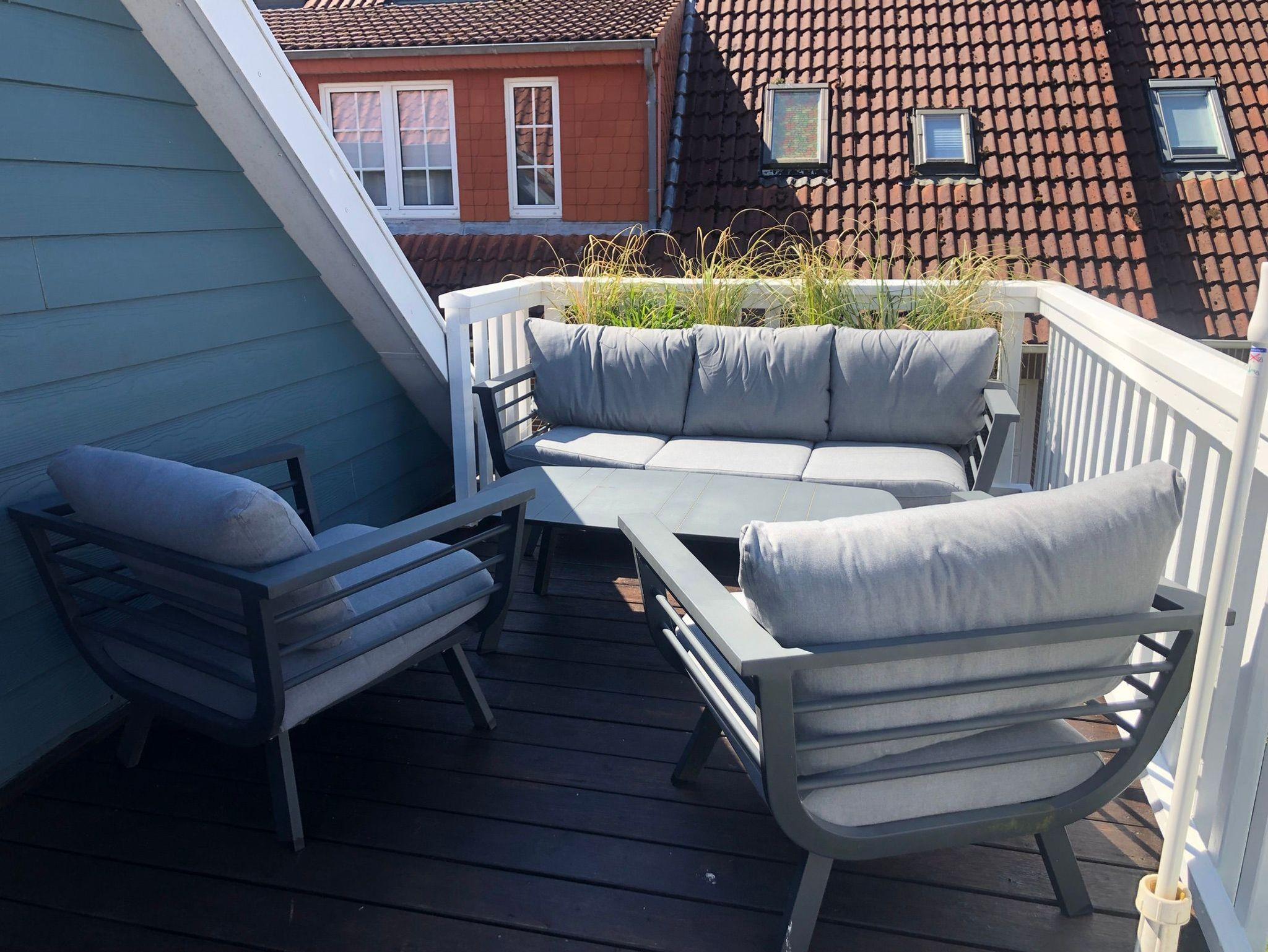 Süd-Terrasse: Ihre Oase im Freien Auf der großzügigen Süd-Terrasse können Sie entspannte Abende in hochwertigen Lounge-Möbeln genießen. Zudem bietet eine zusätzliche Sitzgelegenheit die Möglichkeit, Mahlzeiten im Freien zu genießen.