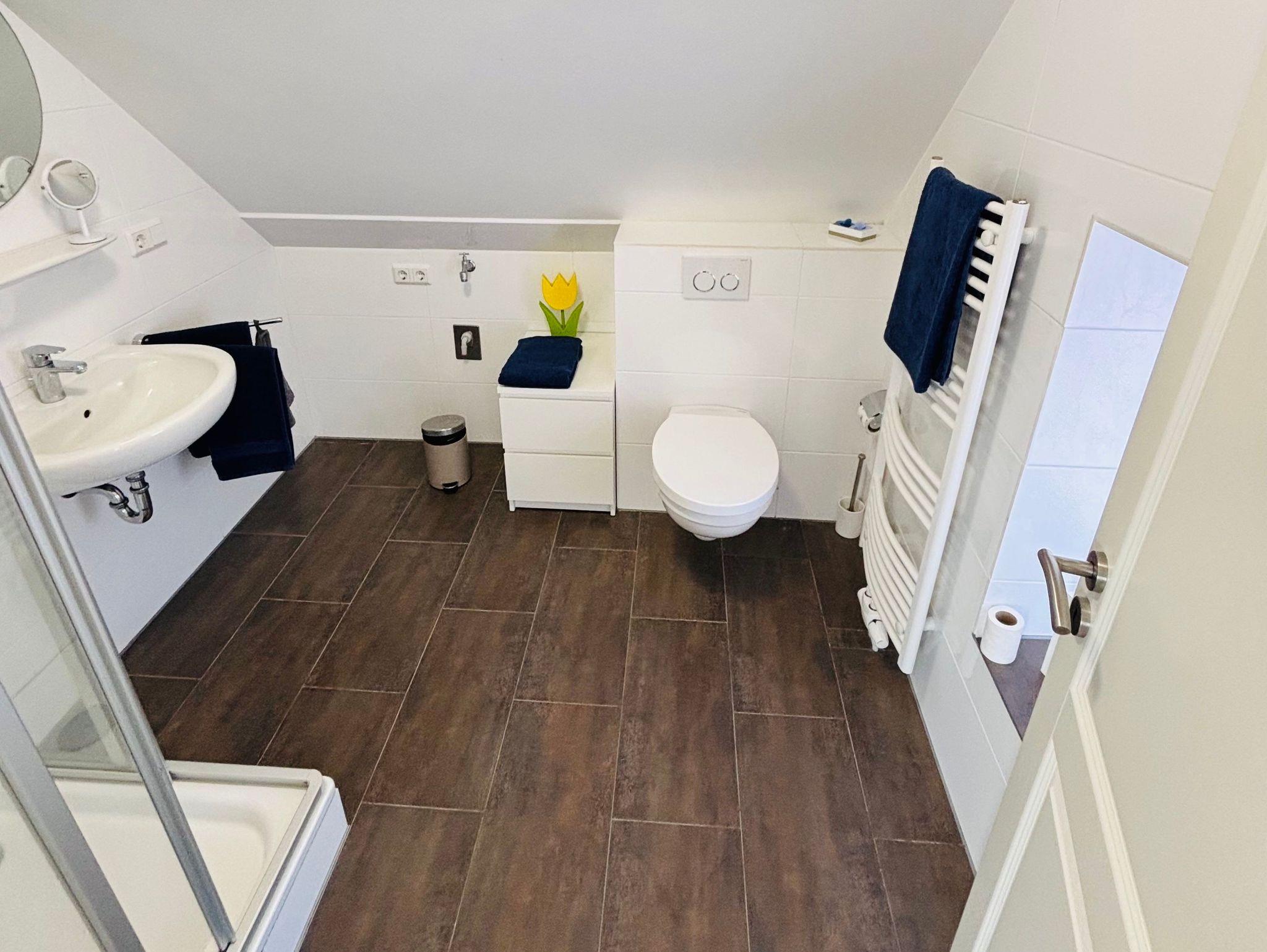 Willkommen in der Sielwärterkoje, einer liebevoll eingerichteten Ferienwohnung im ersten Stock eines charmanten friesischen Backsteinhauses aus dem Jahr 1875. Diese lichtdurchflutete Unterkunft besticht durch ihren großzügigen Wohn-Esszimmerbereich, eine offene Küche, ein komfortables Schlafzimmer mit direktem Zugang zu einem Badezimmer (Dusche und WC), ein separates Gäste-WC sowie eine weitläufige Südterrasse.