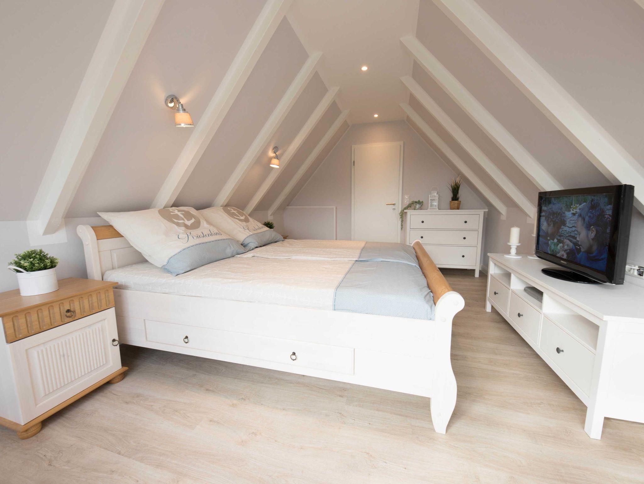 Das Haus verfügt über 3 Schlafzimmer. Ein Schlafzimmer mit Etagenbett befindet sich im Erdgeschoss. Zwei weitere Schlafzimmer mit jeweils einem Doppelbett sowie ein Gäste WC finden Sie iin der ersten Etage.