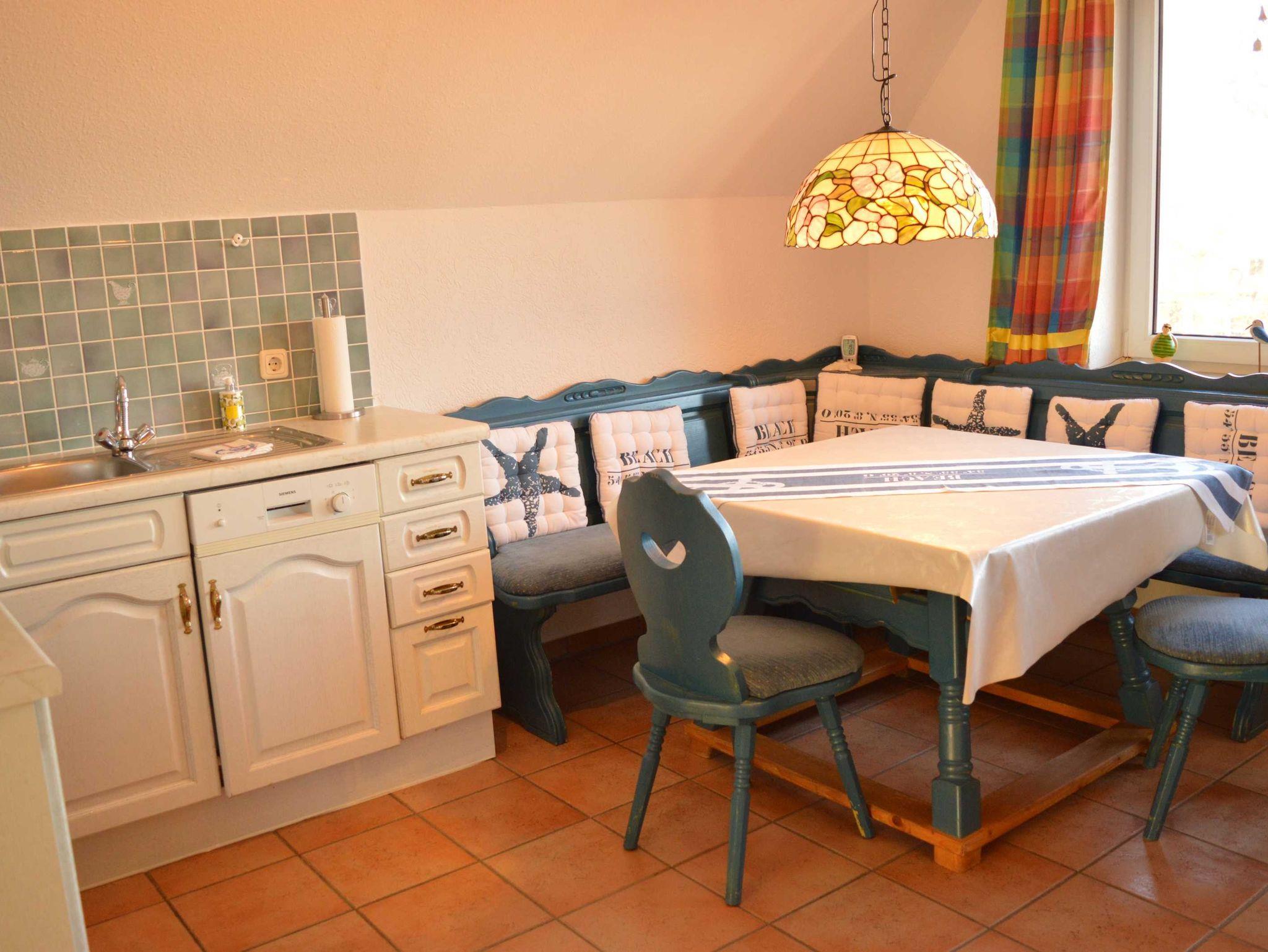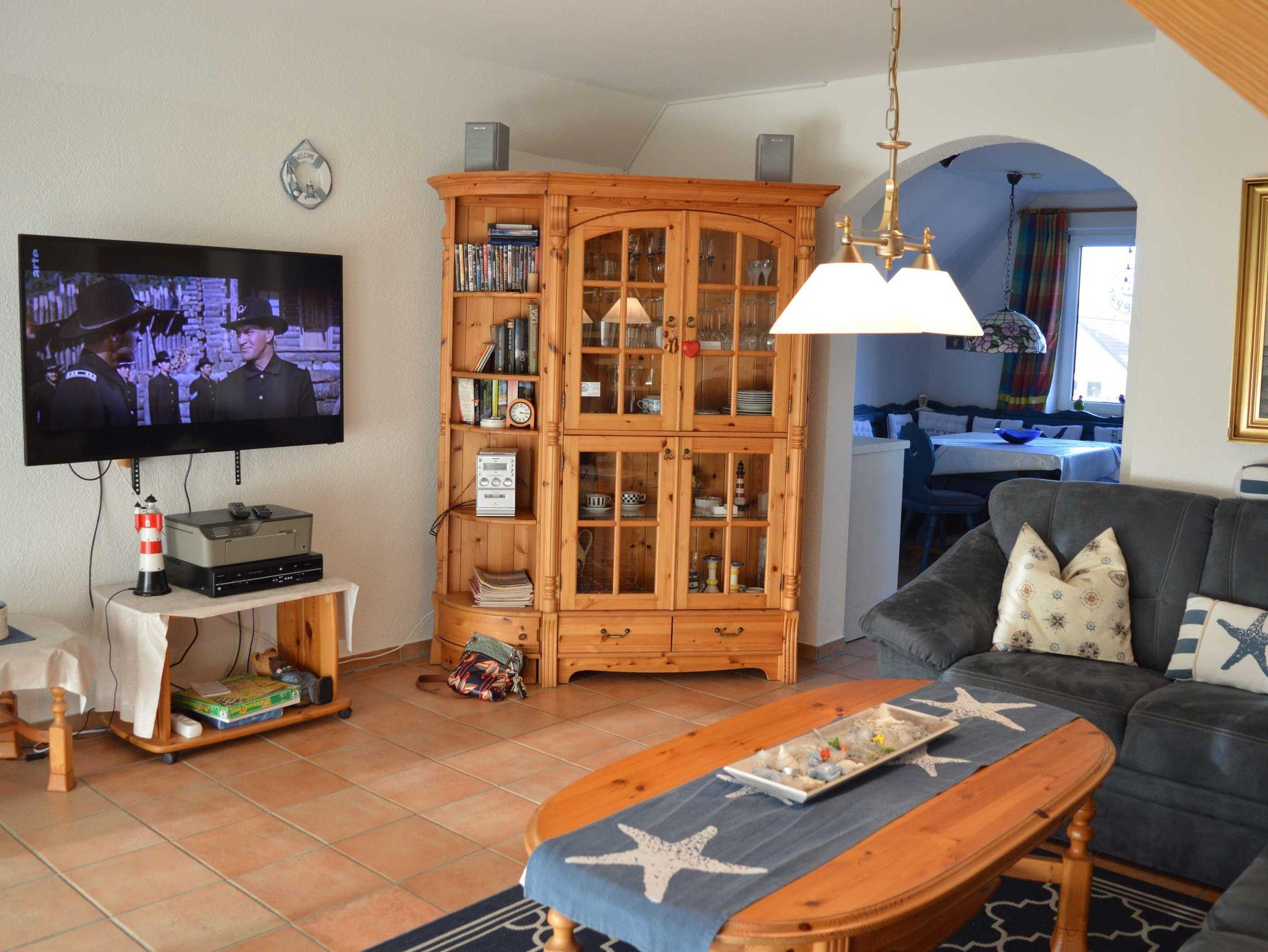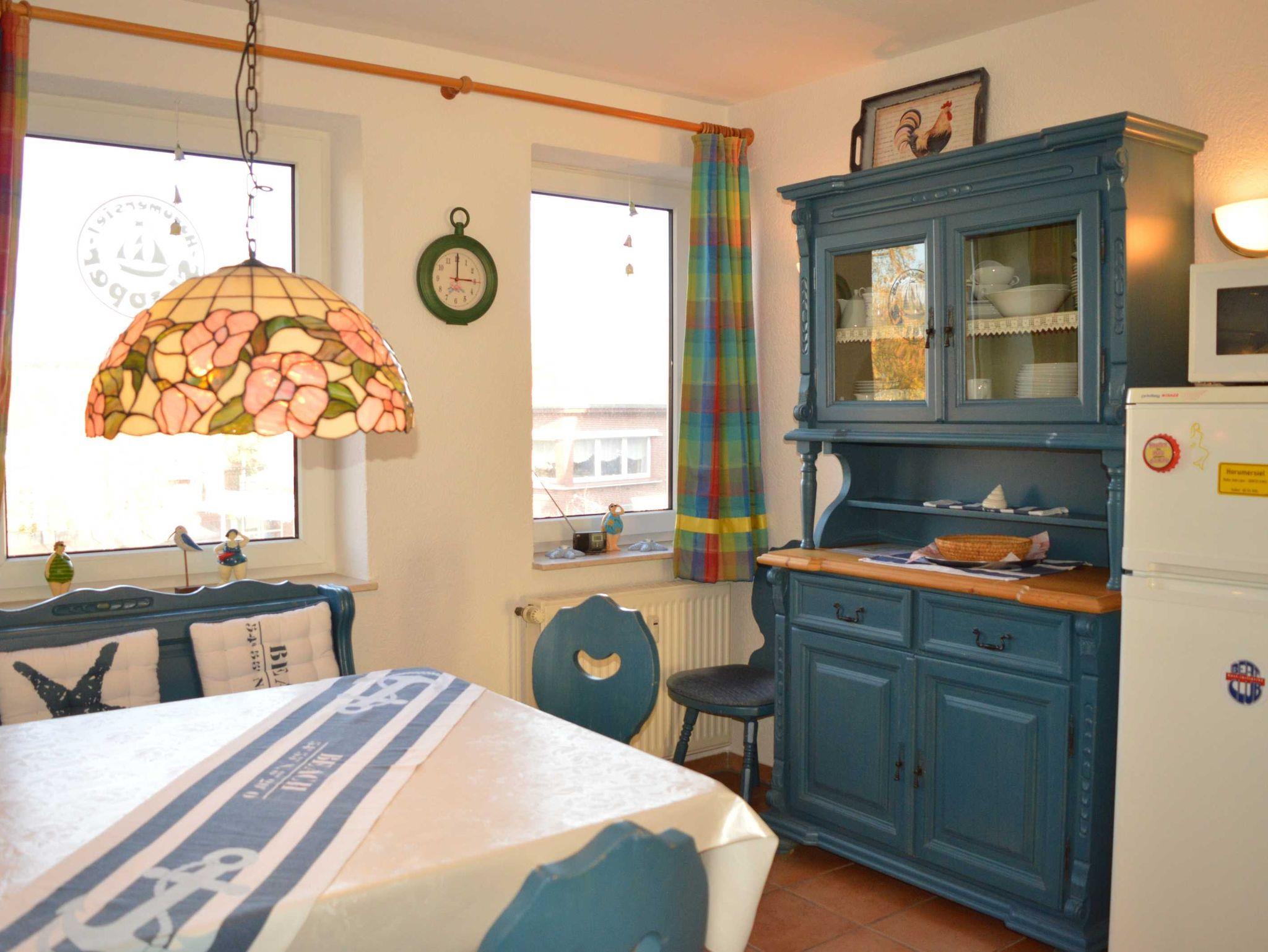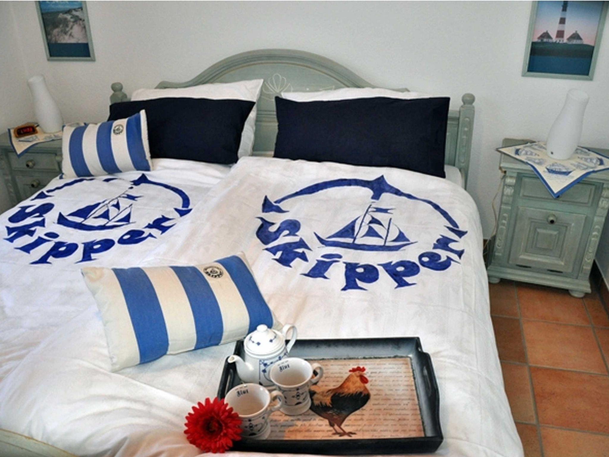 Die gemütlich eingerichtete 80 m² große Wohnung Skipper liegt zentral am schön gestalteten Marktplatz im Nordseeheilbad Horumersiel. Obwohl Sie tagsüber von der 2. Etage aus das Treiben auf dem zentralen Dorfplatz beobachten können, liegt die Terrasse in Süd-West-Lage und somit sehr ruhig, vom Trubel abgewandt. Die Ferienwohnung verfügt über zwei Schlafzimmer von denen das eine mit Doppelbett und das andere mit zwei Einzelbetten sowie einem Fernsehgerät mit Kabelanschluss ausgestattet ist. Desweiteren steht Ihnen ein Einzelbett auf der Galerie zur Verfügung sowie im Wohnzimmer eine Schlafcouch. Für unsere kleinsten Gäste steht Ihnen ein Kinderreisebett und ein Kinderhochstuhl zur Verfügung. Die Wohnküche lässt keine Wünsche offen. Sie verfügt über einen Backofen mit einem 4 Platten Kochfeld, eine Geschirrspülmaschine, Mikrowelle, Kühlschrankl-Gefrierschrank, Kaffeemaschine, Wasserkocher und Toaster. Das geräumige Wohnzimmer bietet ein gemütliches Ledersofa, einen Fernseher mit Kabelanschluss sowie einen DVD- Player und einen direkten Durchgang auf die Terrasse. Diese liegt in Süd-West Richtung und lädt zum Verweilen ein. Die Ferienwohnung Skipper verfügt über zwei Bäder, eines mit Dusche und WC, das andere mit Badewanne und WC. Weitere Ausstattungsmerkmale der Ferienwohnung sind: W-LAN 2 Radios 2 CD-Player Garderobe im Flur - Wohnbereich Parkmöglichkeit direkt vor dem Haus Münz-Waschmaschine und Münz-Trockner im Haus Auch Ihr Vierbeiner ist herzlichst willkommen! Mehrere Bäder, Restaurants, viele Geschäfte sowie ein Supermarkt und auch ein Fahrradverleih liegen rund um den Marktplatz und rahmen diesen ein. Das Kurmittelhaus, das neue Sole-Freizeitbad mit Sauna sowie der Strand und der Hafen sind nur 3-5 Gehminuten entfernt. Die Sauna mit Dampfbad, das Solarium und der Wellnessbereich des gegenüberliegenden Hotels können gegen Gebühr benutzt werden.