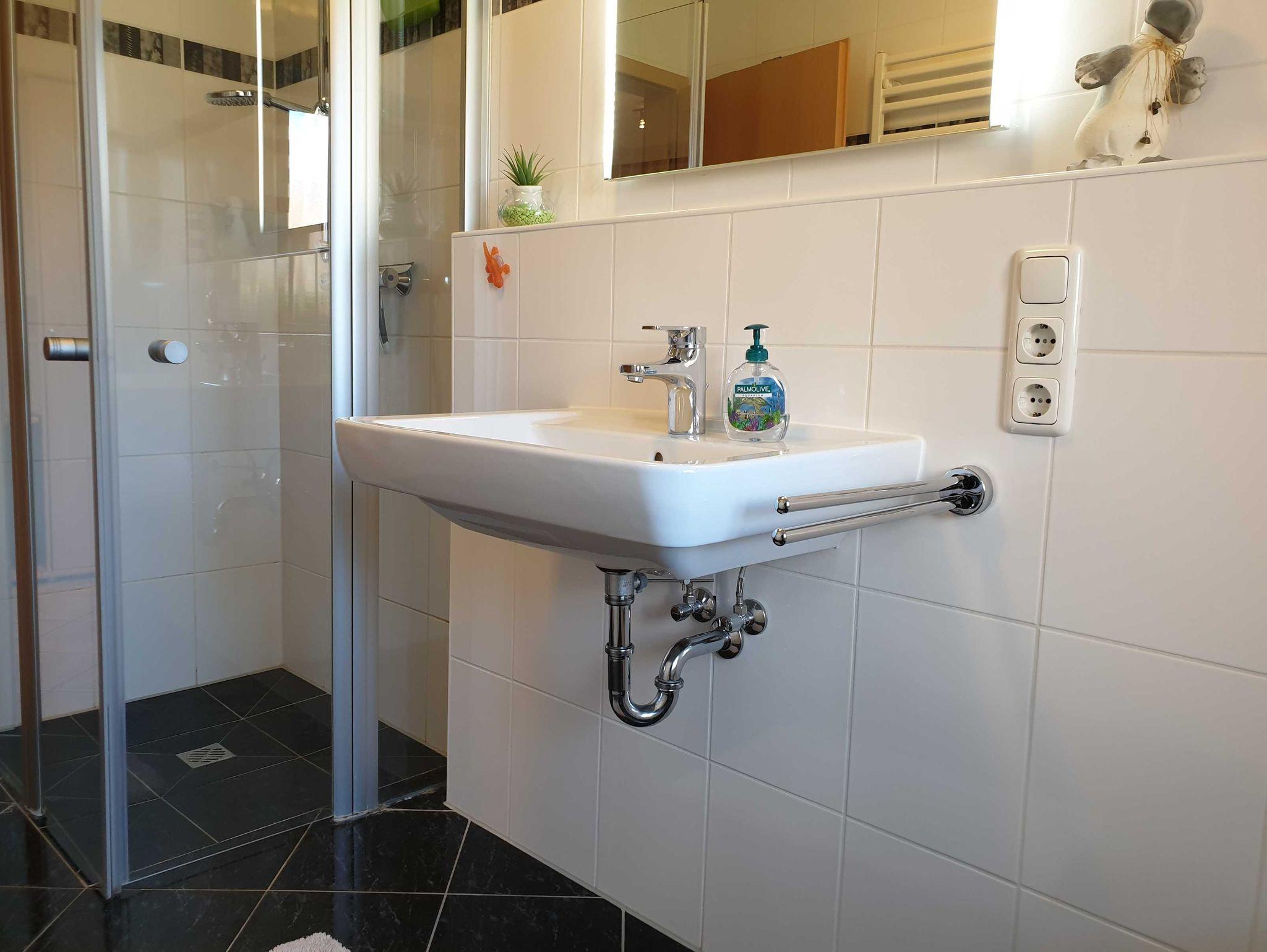• Dusche/WC, Flur, Abstellraum, Kinderreisebett und Terrasse
