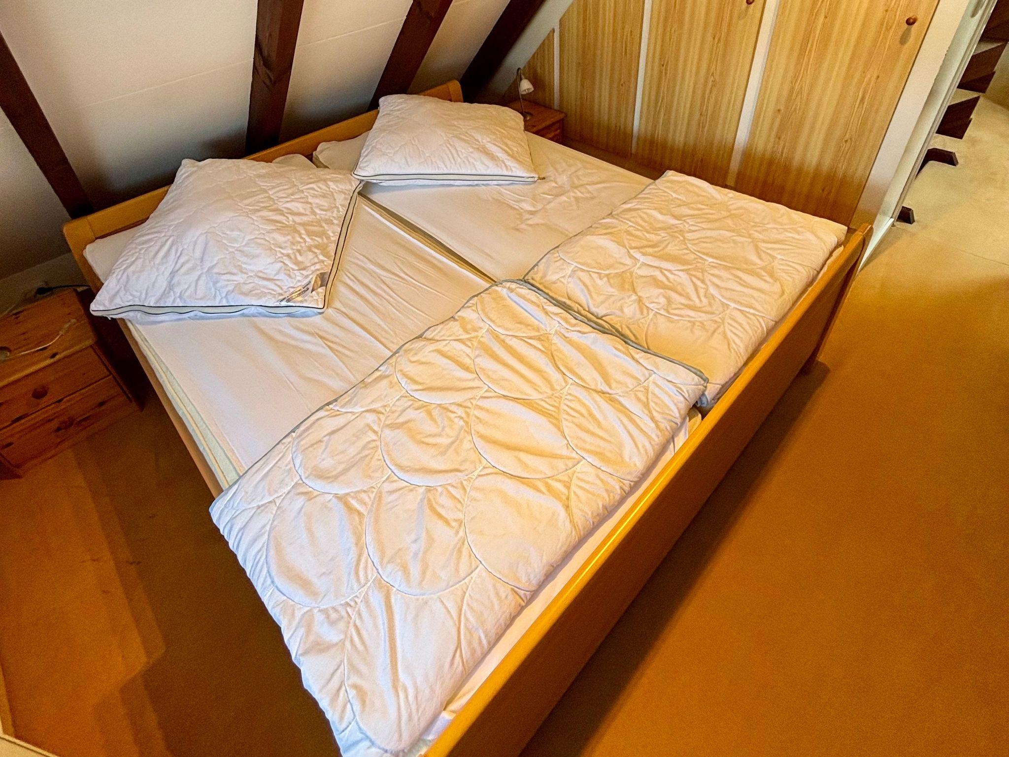 Das Haus bietet zwei gemütliche Schlafzimmer im Obergeschoss, beide mit komfortablen Doppelbetten ausgestattet. Im Erdgeschoss lädt das helle Wohnzimmer mit gemütlicher Sitzecke und angrenzendem Essbereich zum Verweilen ein. Die separate Küche ist hochwertig und vollständig ausgestattet ? mit Kaffevollautomat, Mikrowelle, Heißluftfritteuse und allem, was Sie für genussvolle Urlaubstage brauchen.