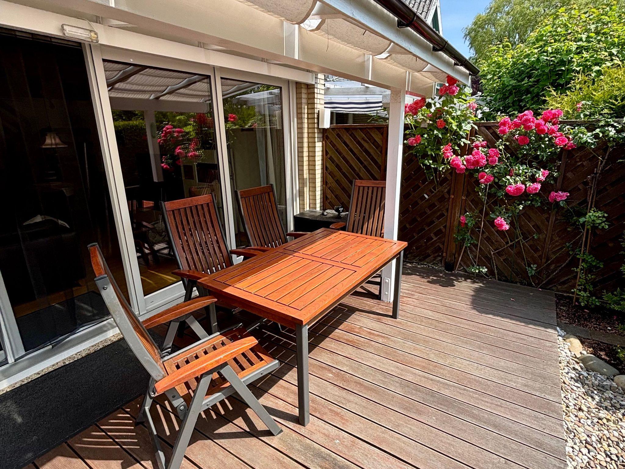 Die eigene Terrasse mit Überdachung sowie der gepflegte Garten bieten viel Raum für entspannte Stunden im Freien. Ob beim Frühstück in der Morgensonne oder einem entspannten Ausklang des Tages hier können Sie die Seele baumeln lassen.